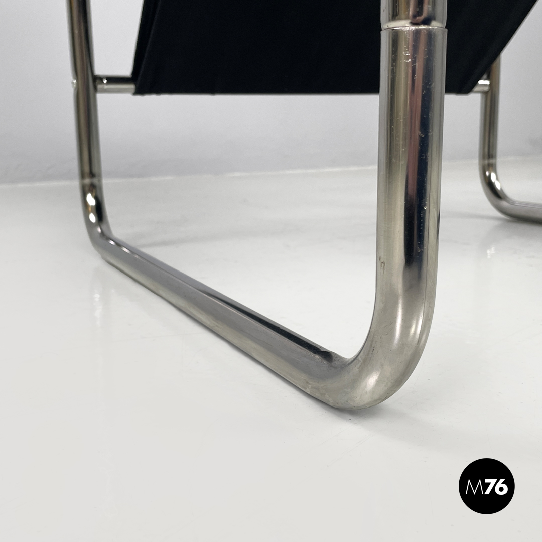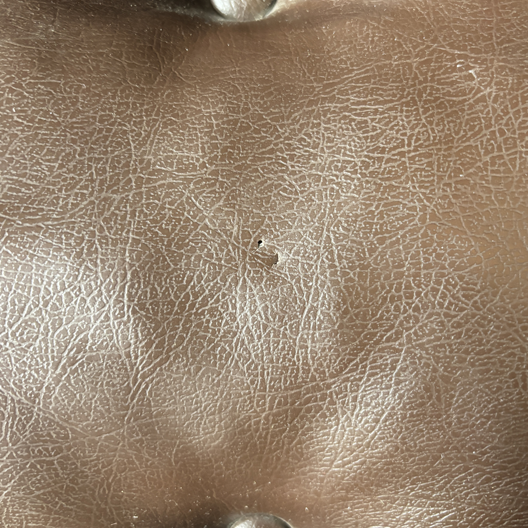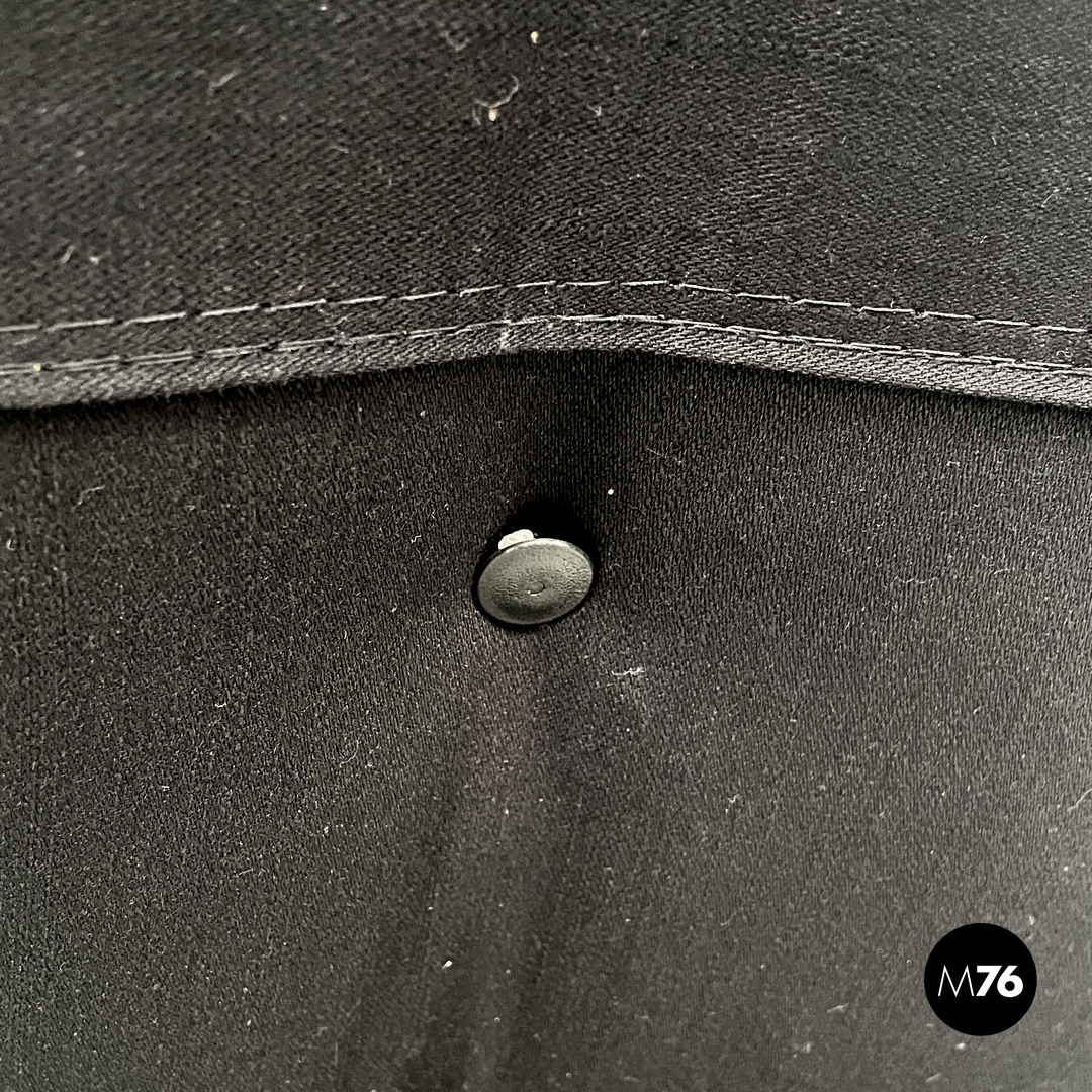 Buone condizioni con segni dell’uso e del tempo ed ossidazioni. Su un cuscino è presente uno strappo della pelle sintetica e uno scolorimento sul tessuto nero.