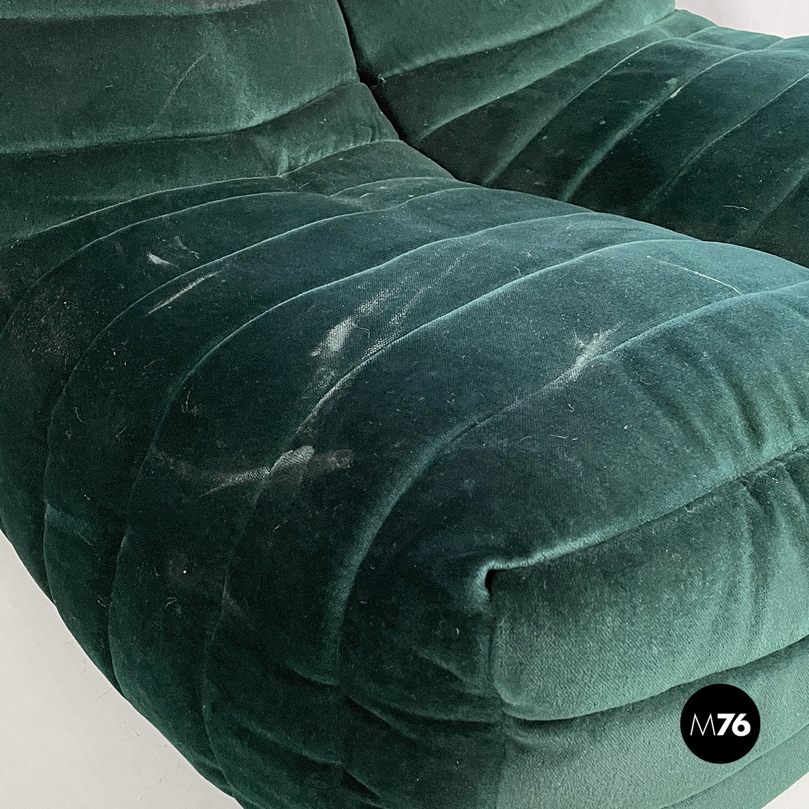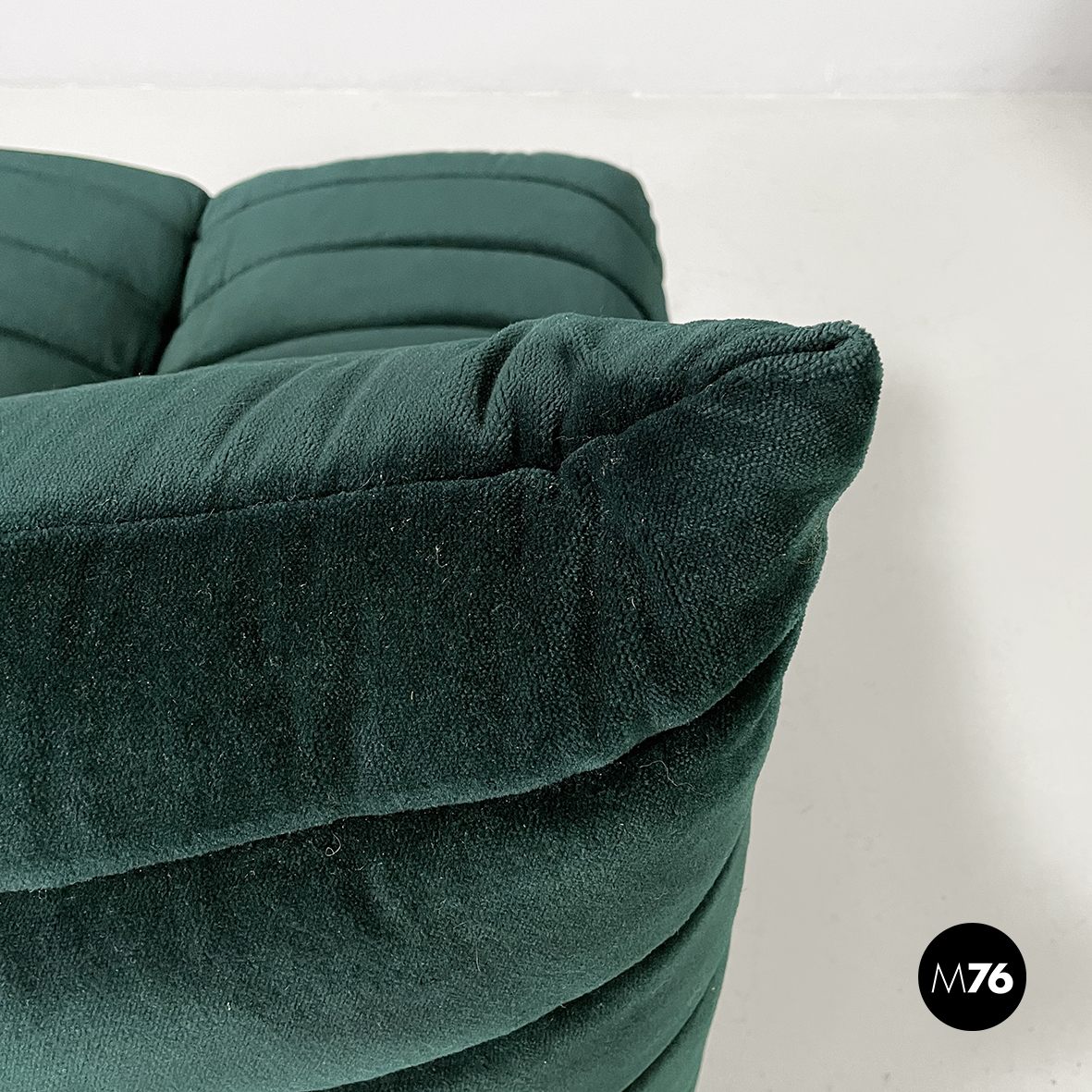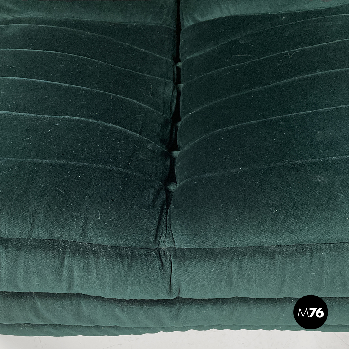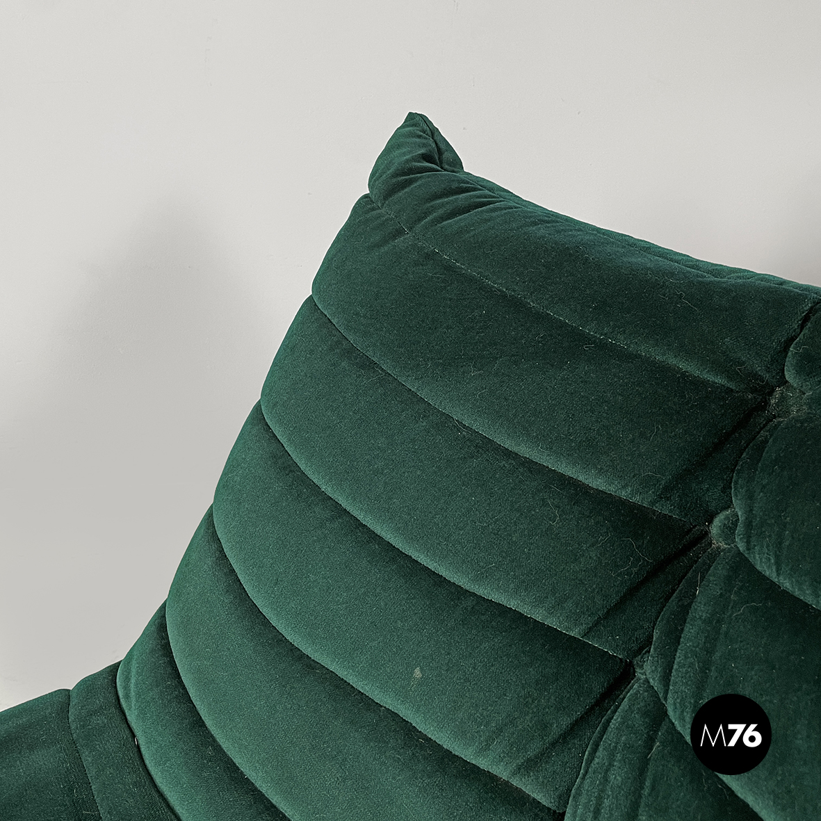 Coppia di poltrone modello Zozo interamente imbottite e rivestite in velluto verde bosco. La seduta e lo schienale presentano una forma morbida e arrotondata con le caratteristiche arricciatura di questo design.