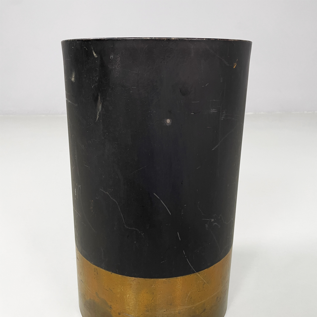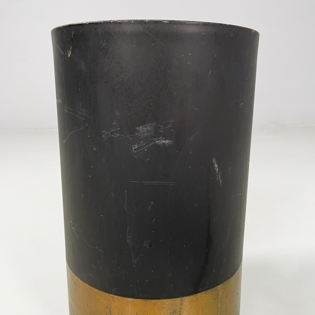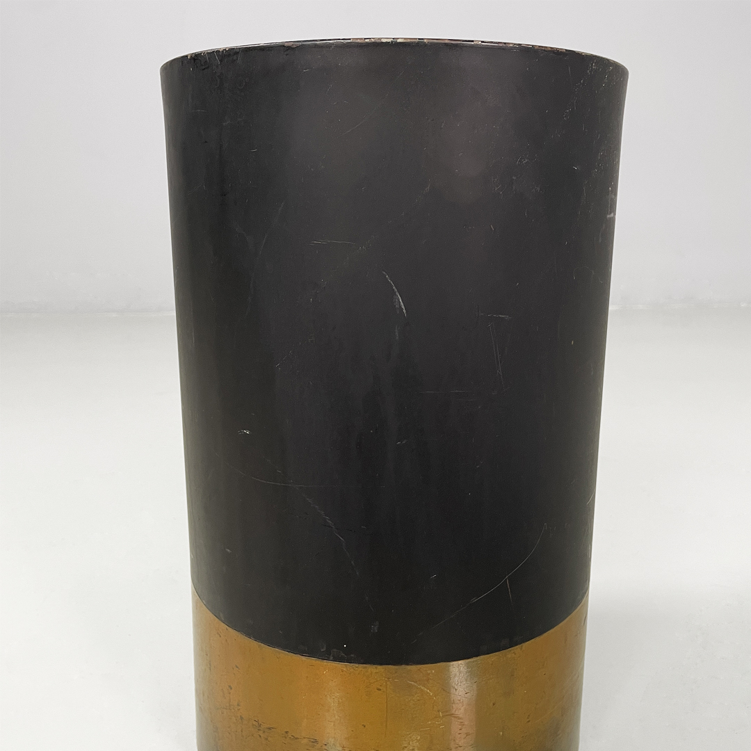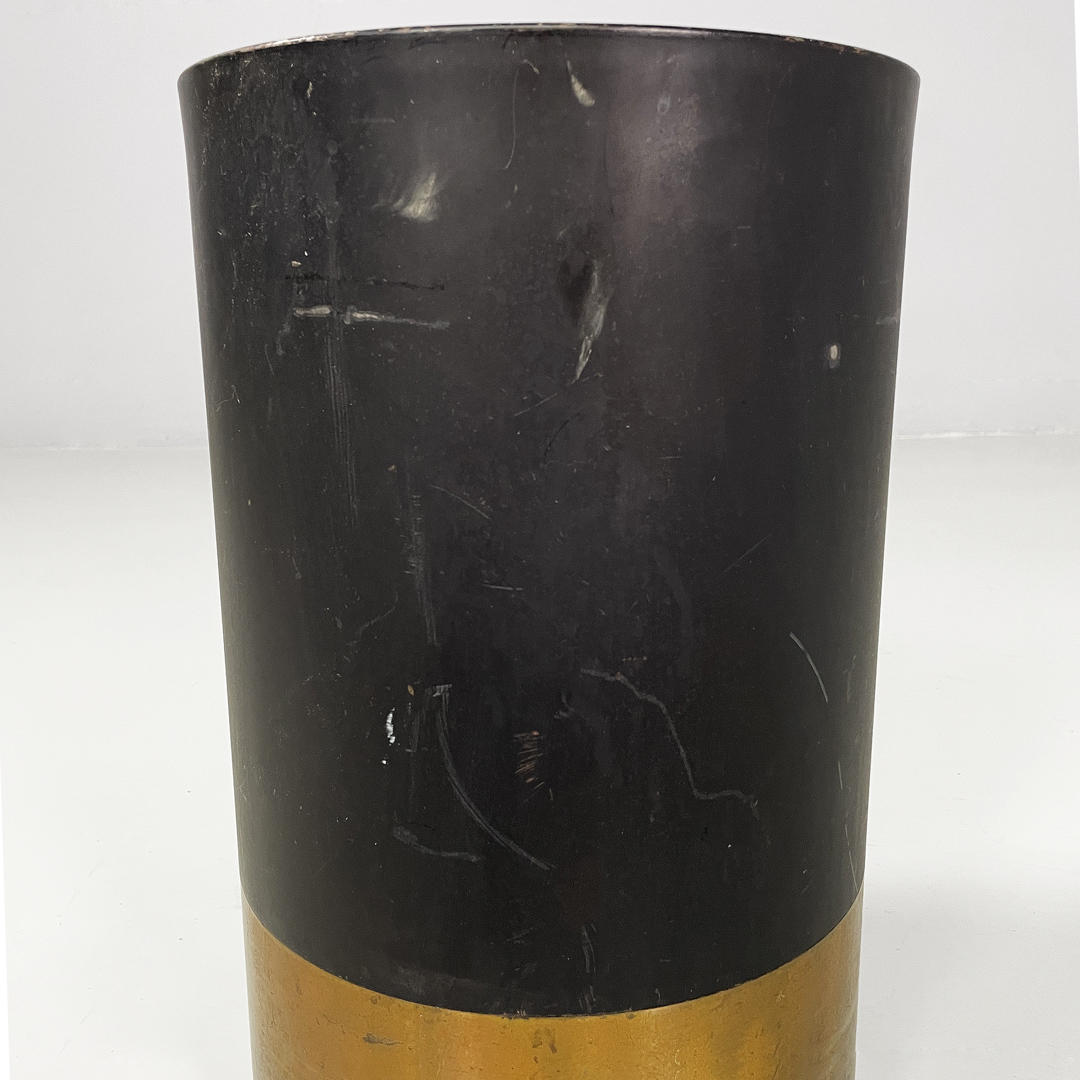 Portaombrelli modello Cartuccia a base tonda in metallo laccato e ottone lucido.