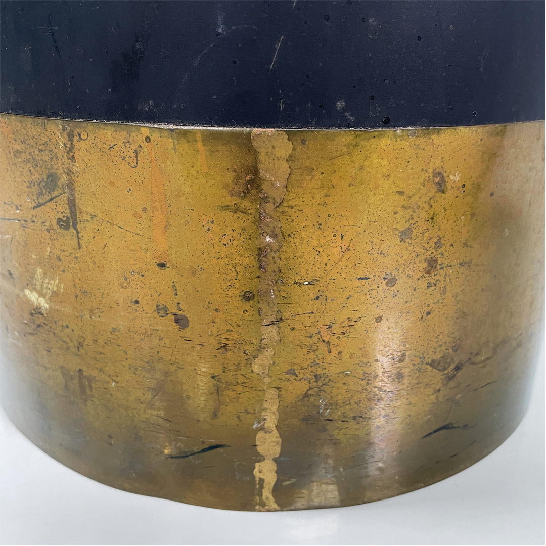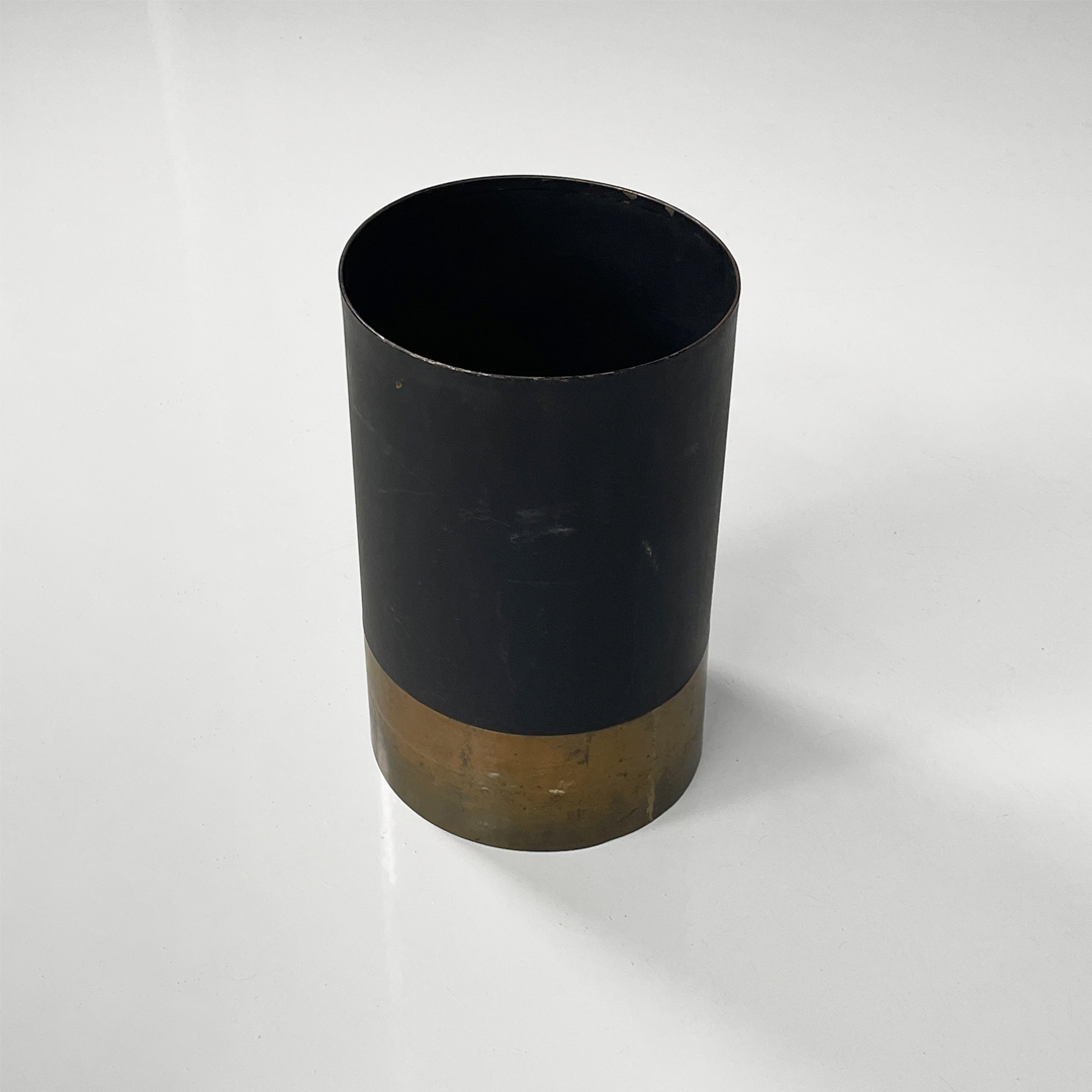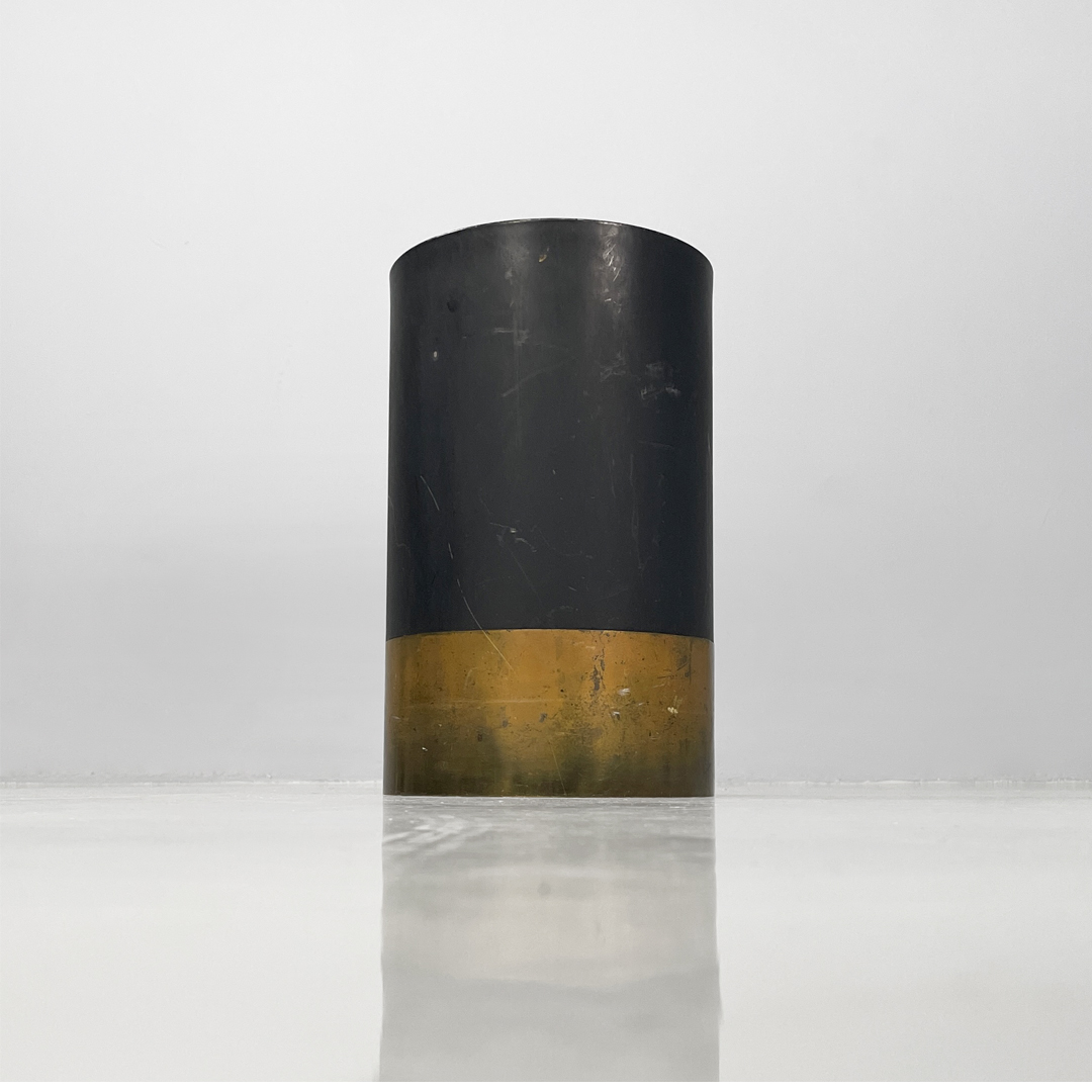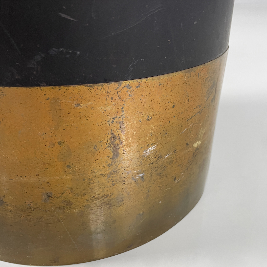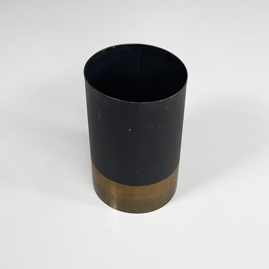 Portaombrelli modello Cartuccia a base tonda in metallo laccato e ottone lucido.