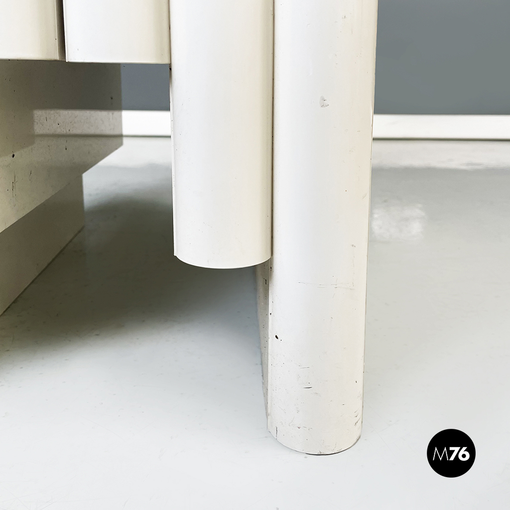 Portariviste modello 4675 in plastica bianco-beige con 6 vani. Presenta una maniglia tonda nel mezzo.