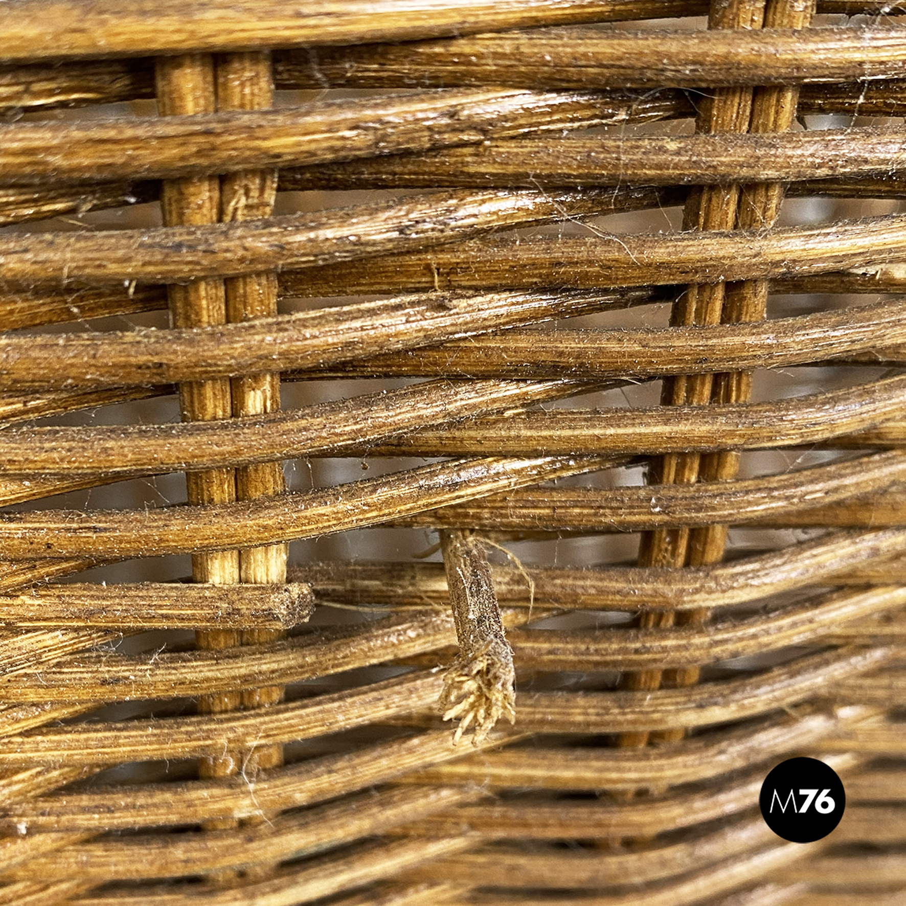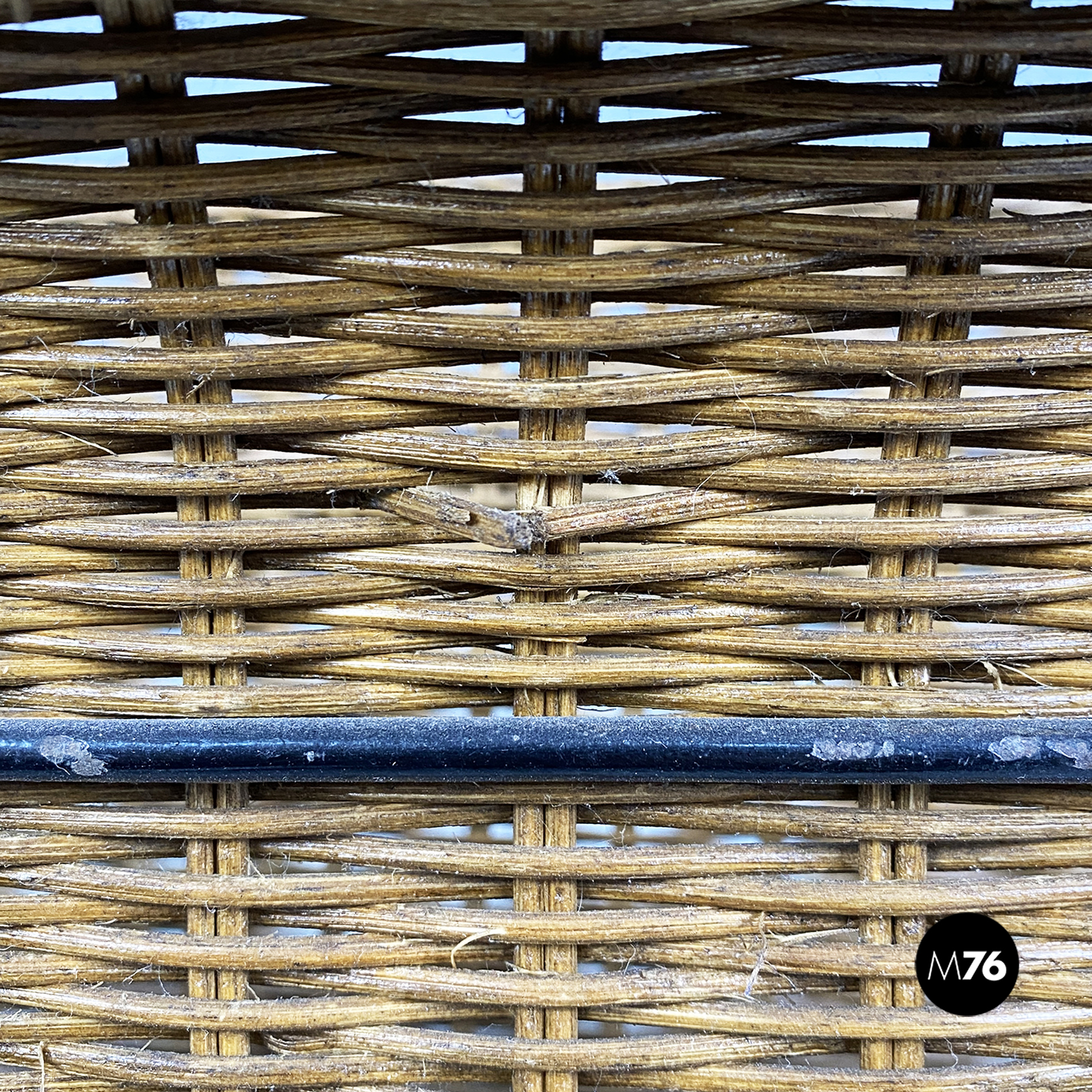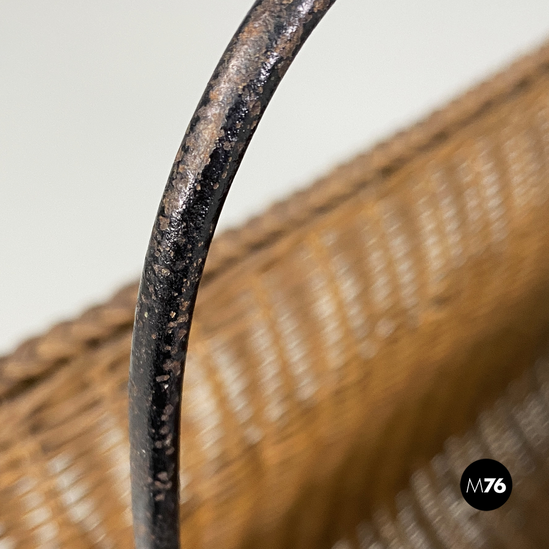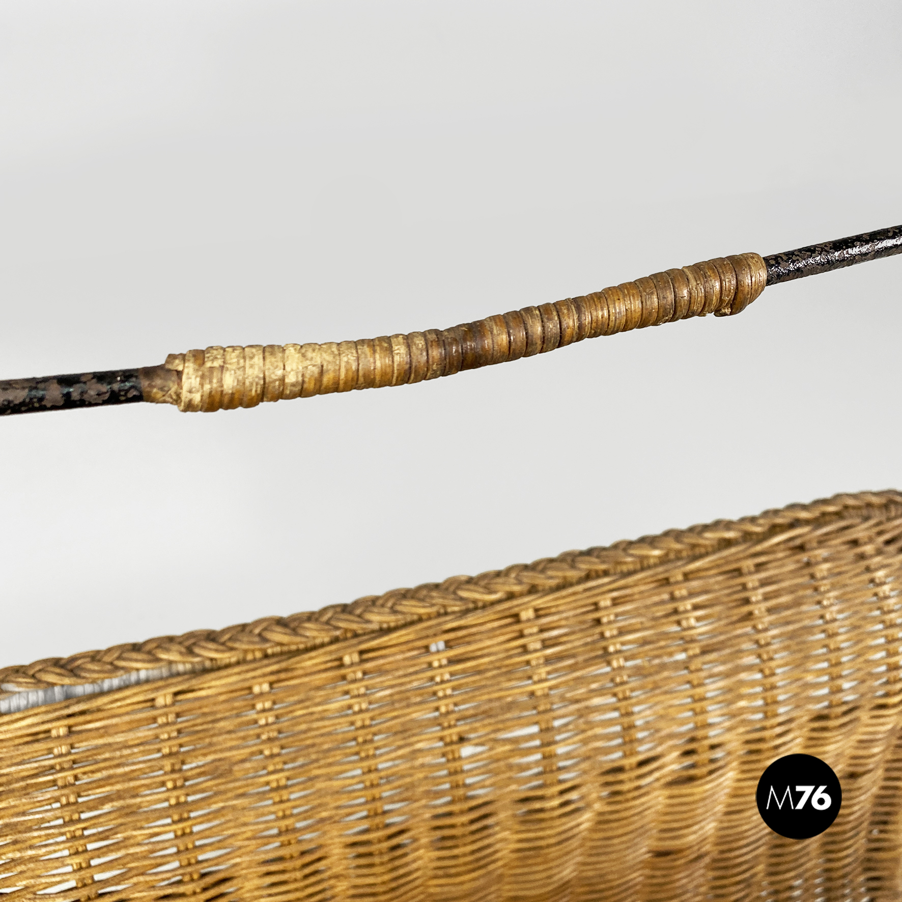 Portariviste con struttura zampe e manico in ferro nero e parte contenitiva in rafia.