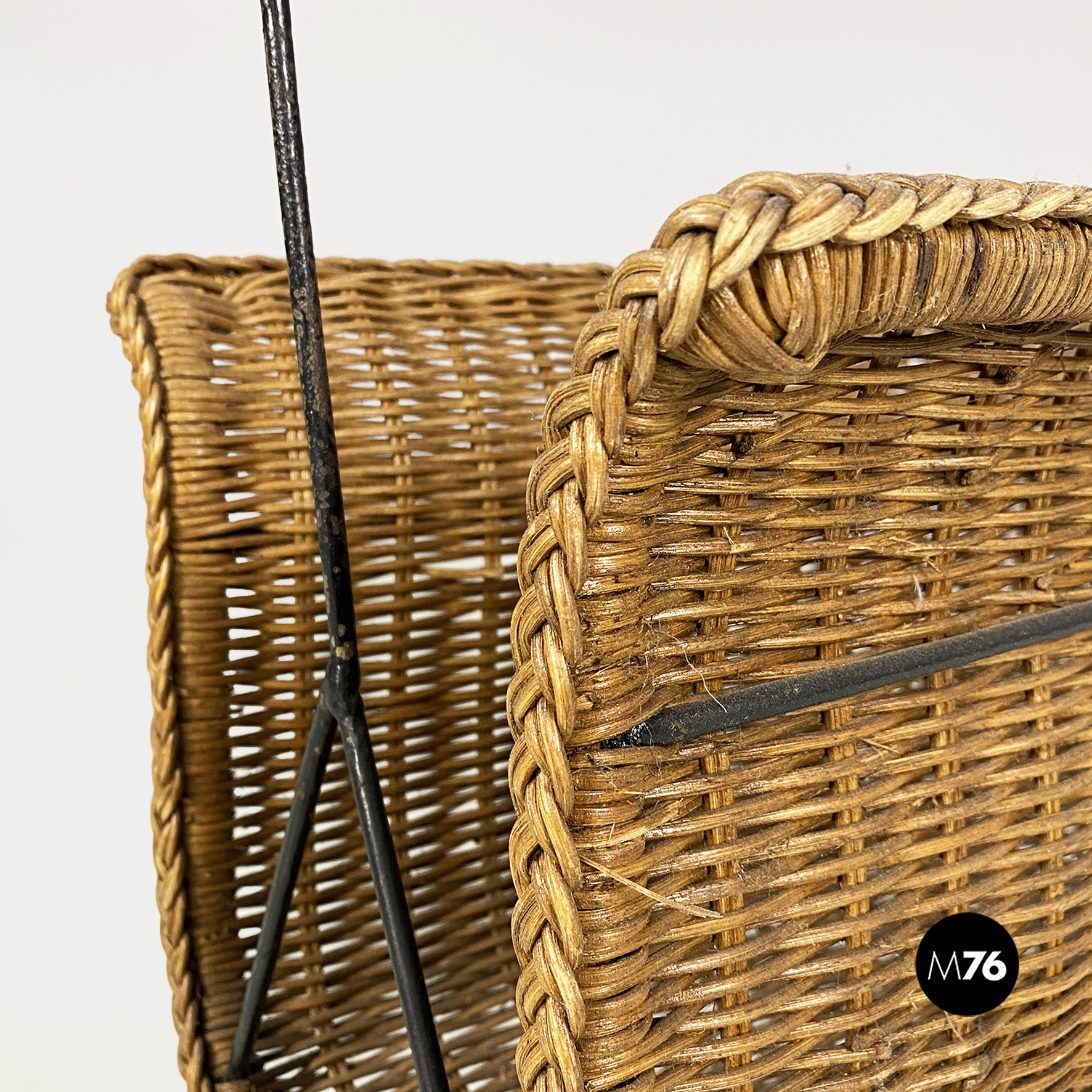 Portariviste in rattan e metallo, 1970 ca.