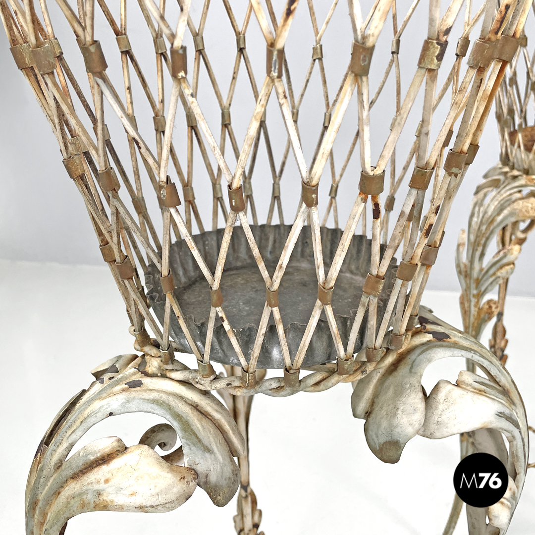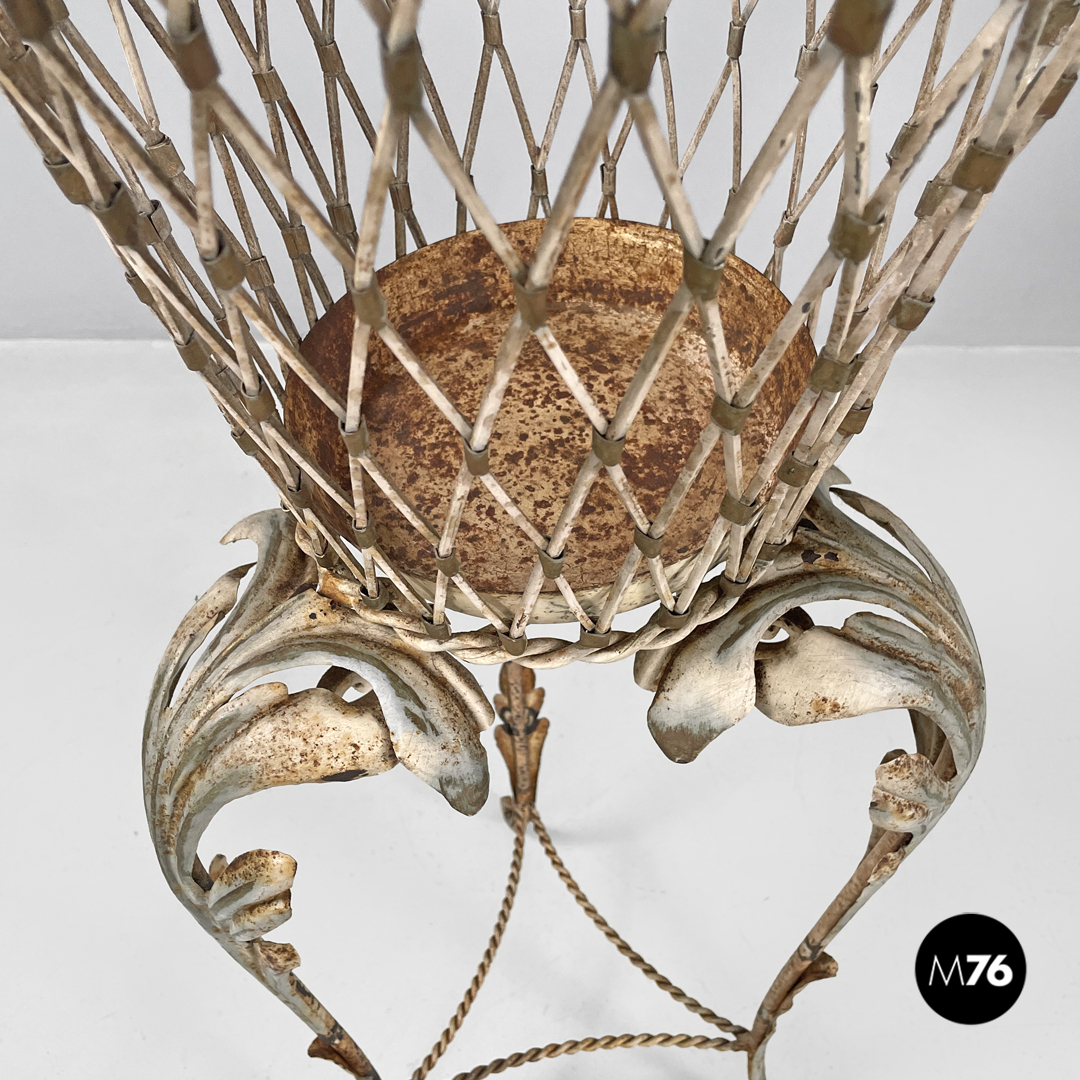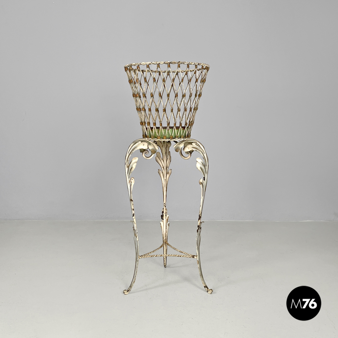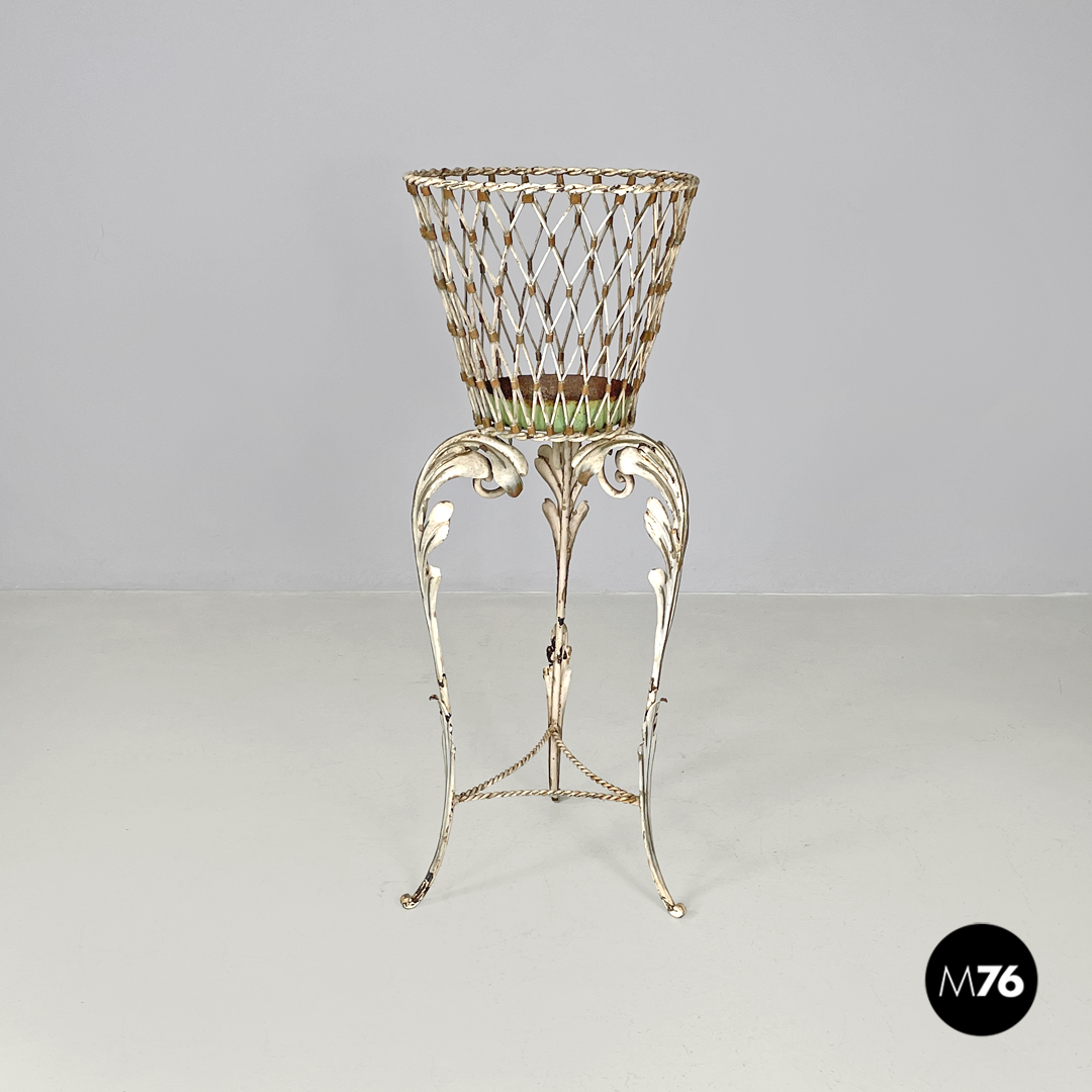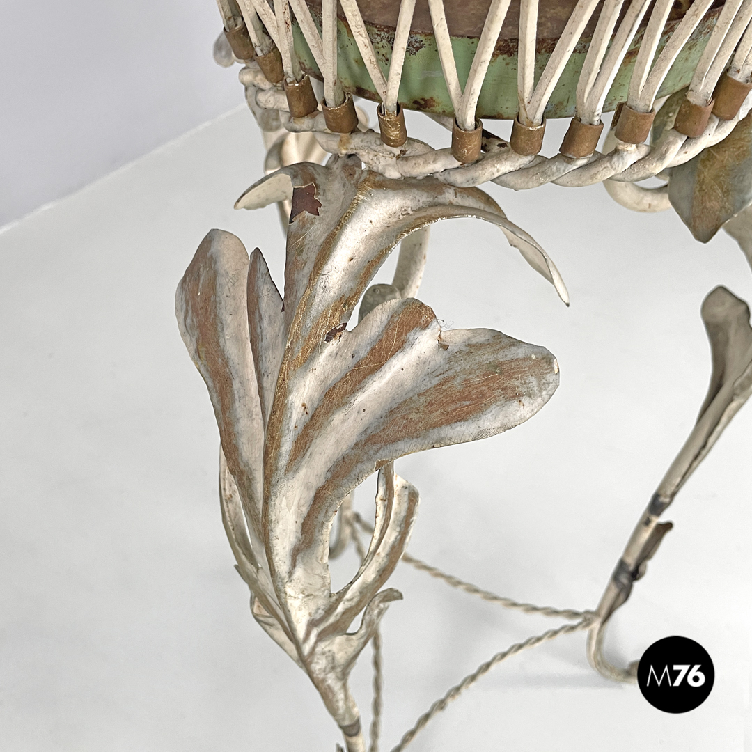 Portavasi in ferro battuto bianco con decori floreali, 1900 ca.