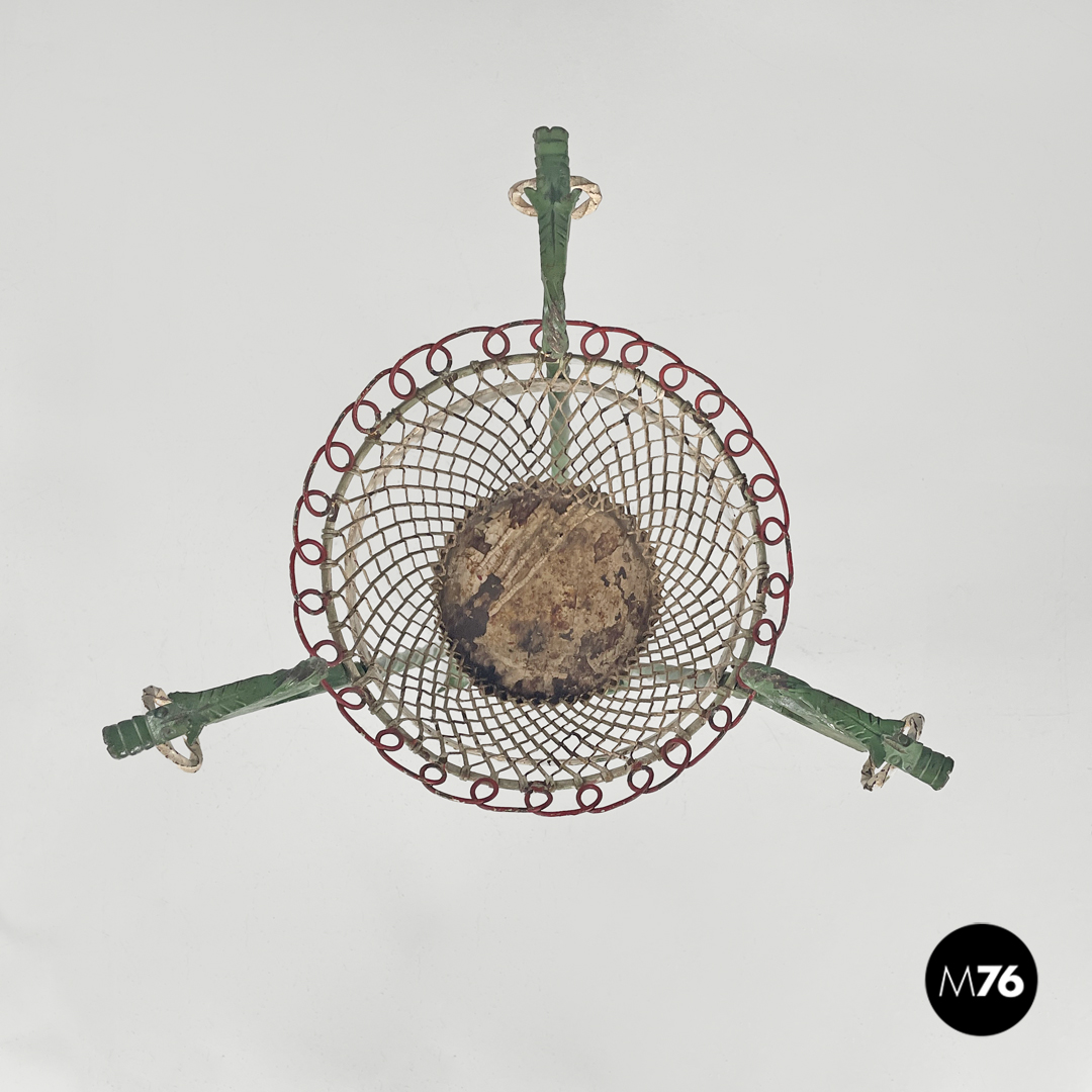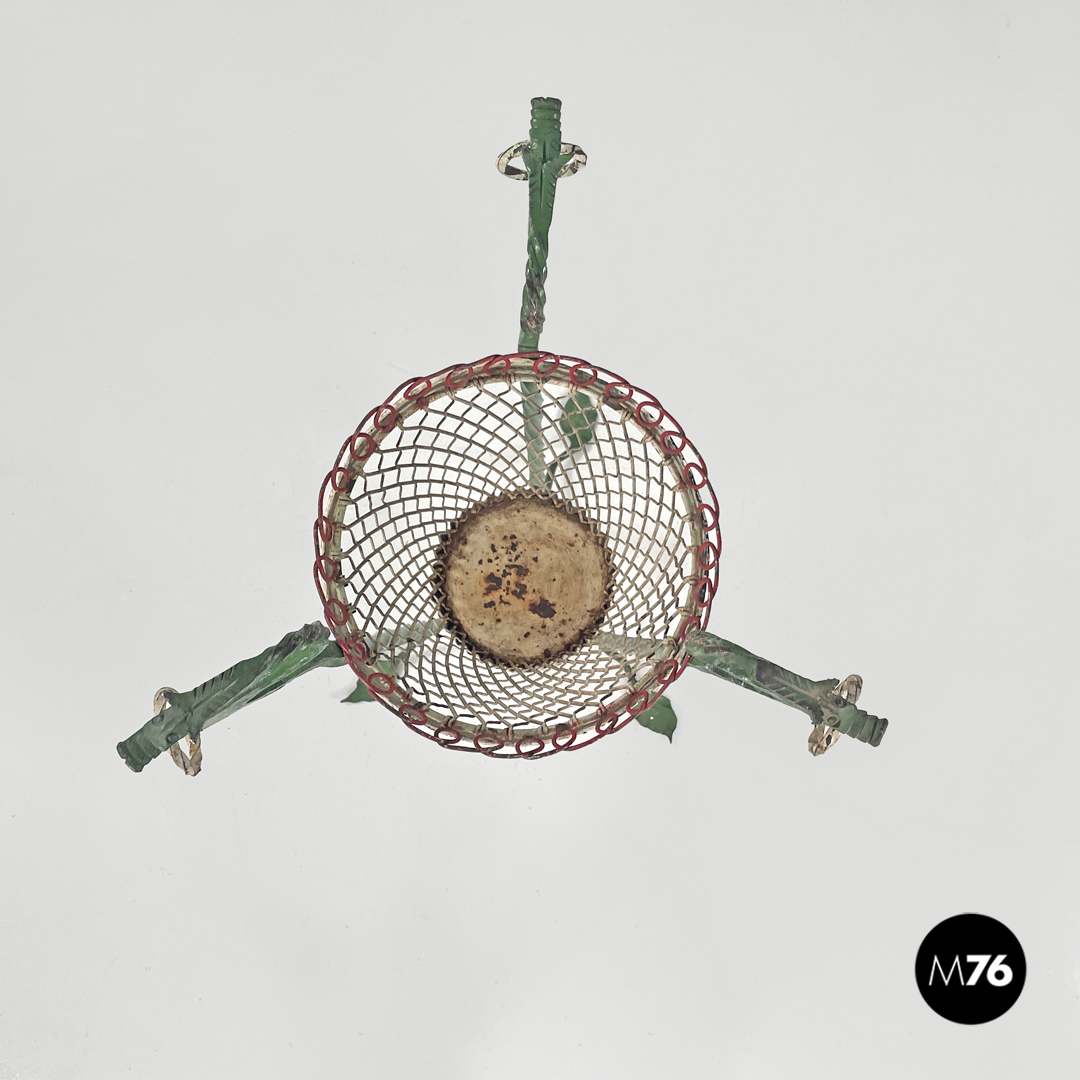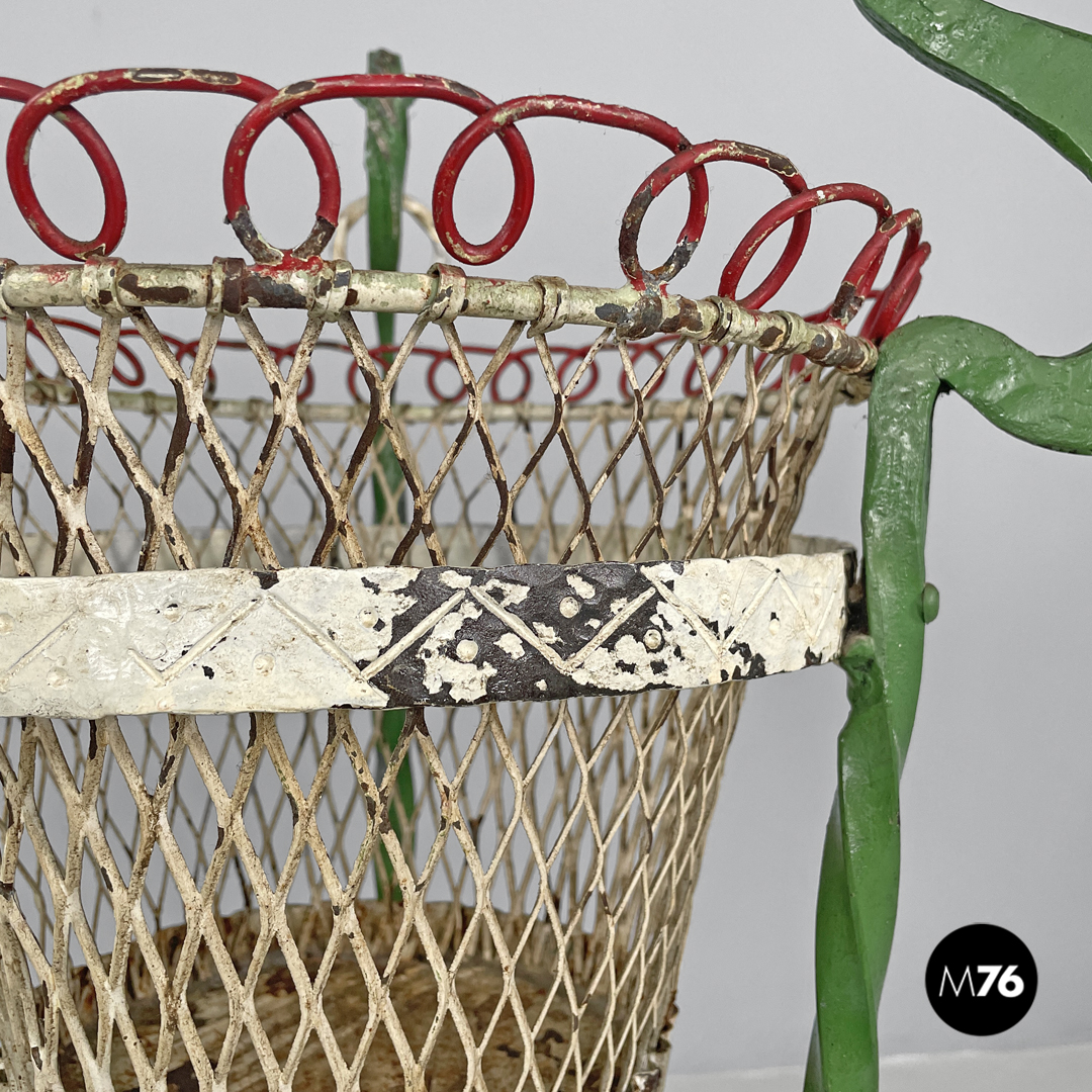 Portavasi in ferro battuto verde e bianco, 1900 ca.