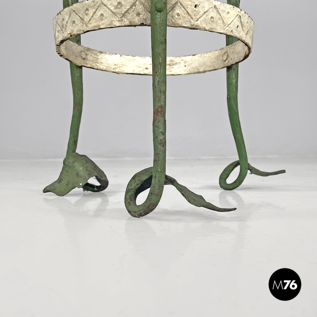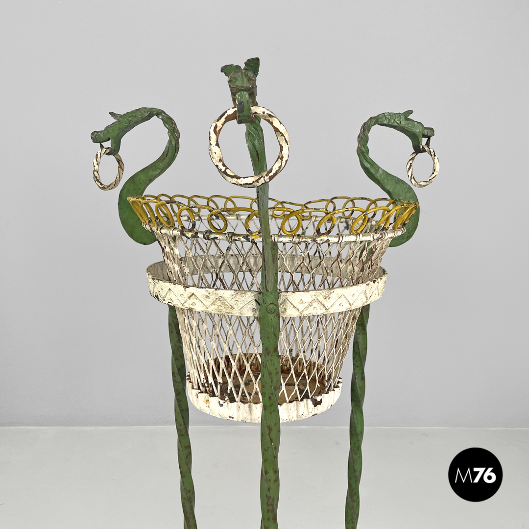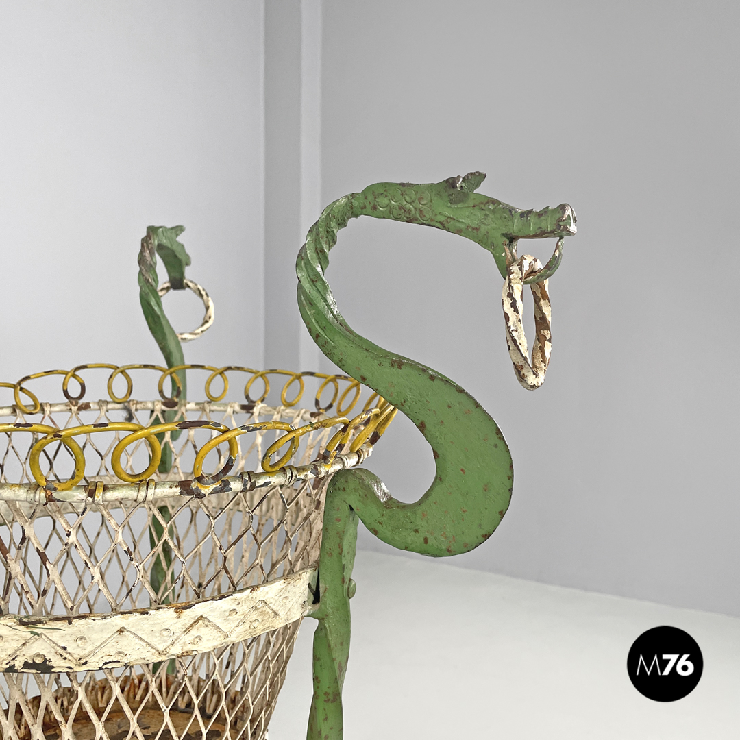 Portavasi in ferro battuto verde e bianco con draghi decorativi, 1900 ca.