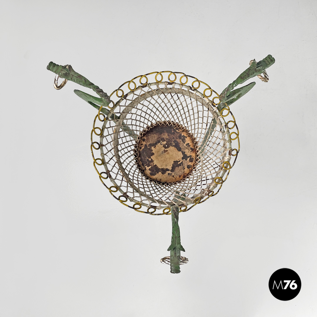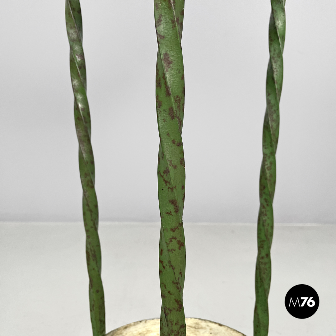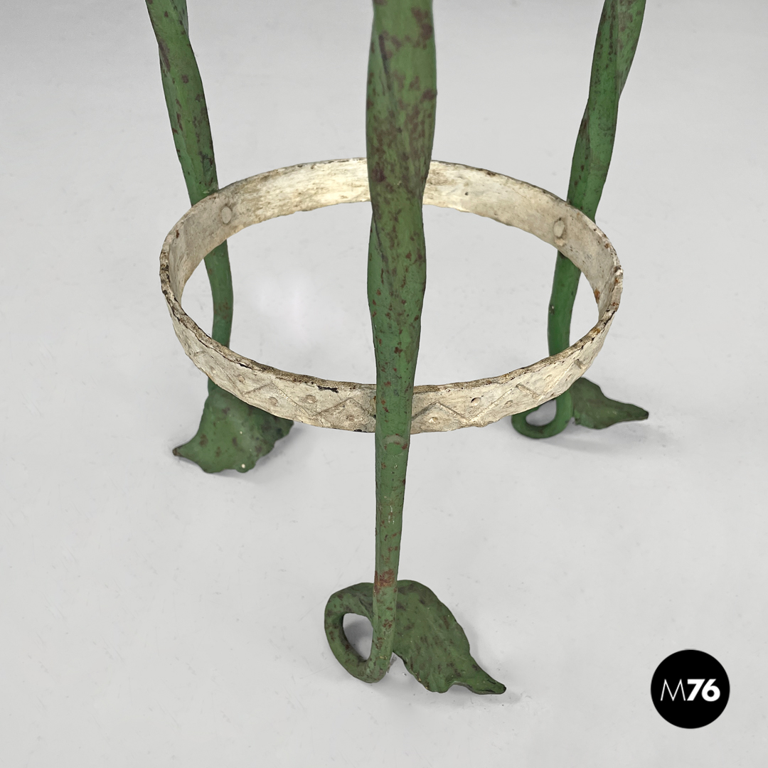 Portavasi in ferro battuto verde e bianco con draghi decorativi, 1900 ca.