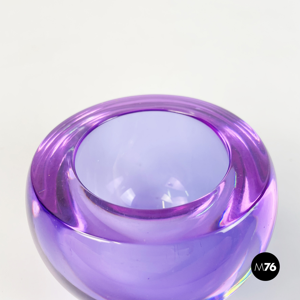 Posacenere da tavolo modello Biglia in alessandrite color viola-azzurro. La ciotola a forma semi-tonda presenta un vetro spesso.