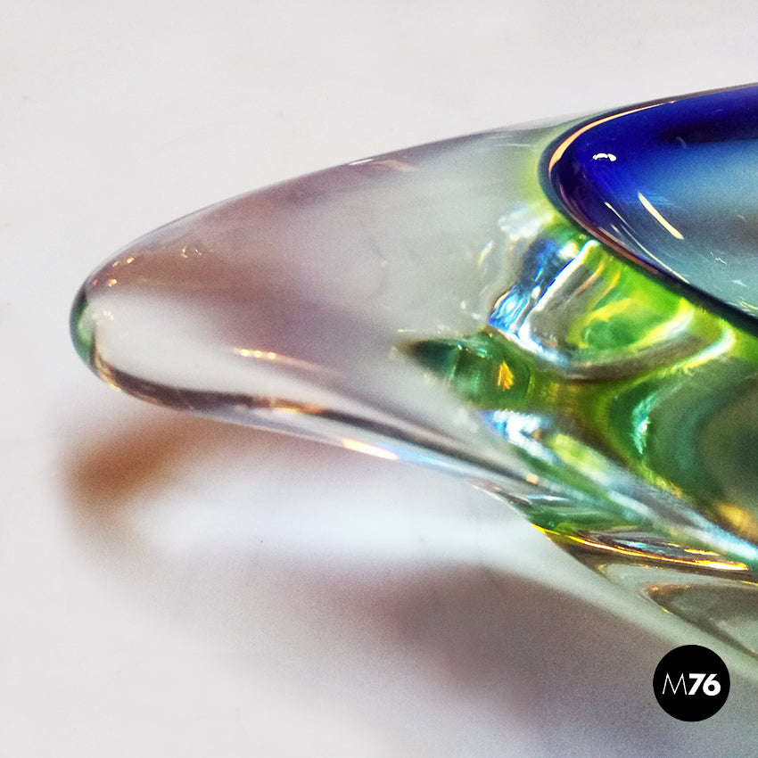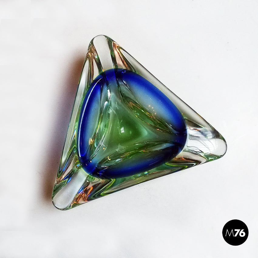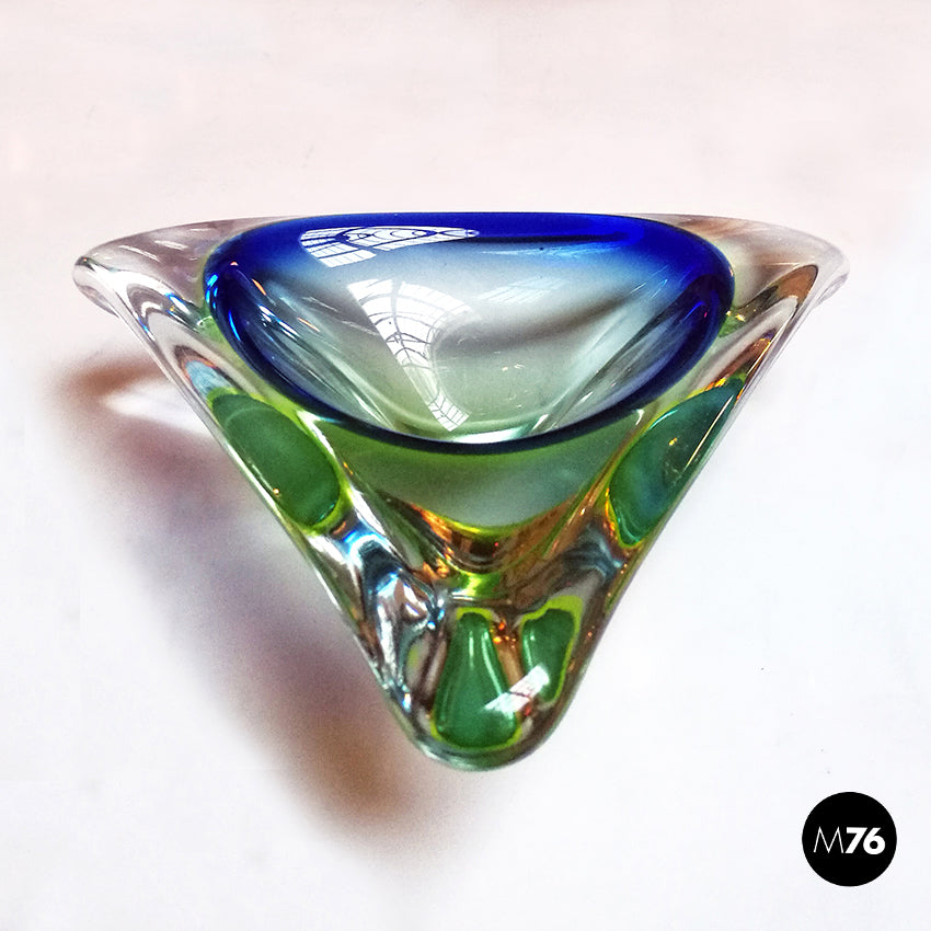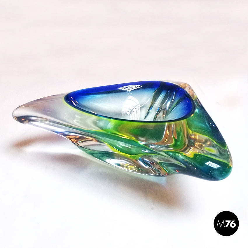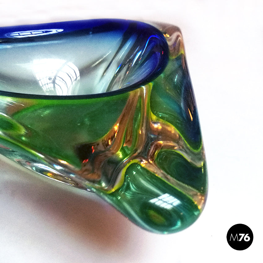 Posacenere da tavolo della serie I Sommersi, in vetro di Murano sui toni del verde e blu, di forma irregolare.