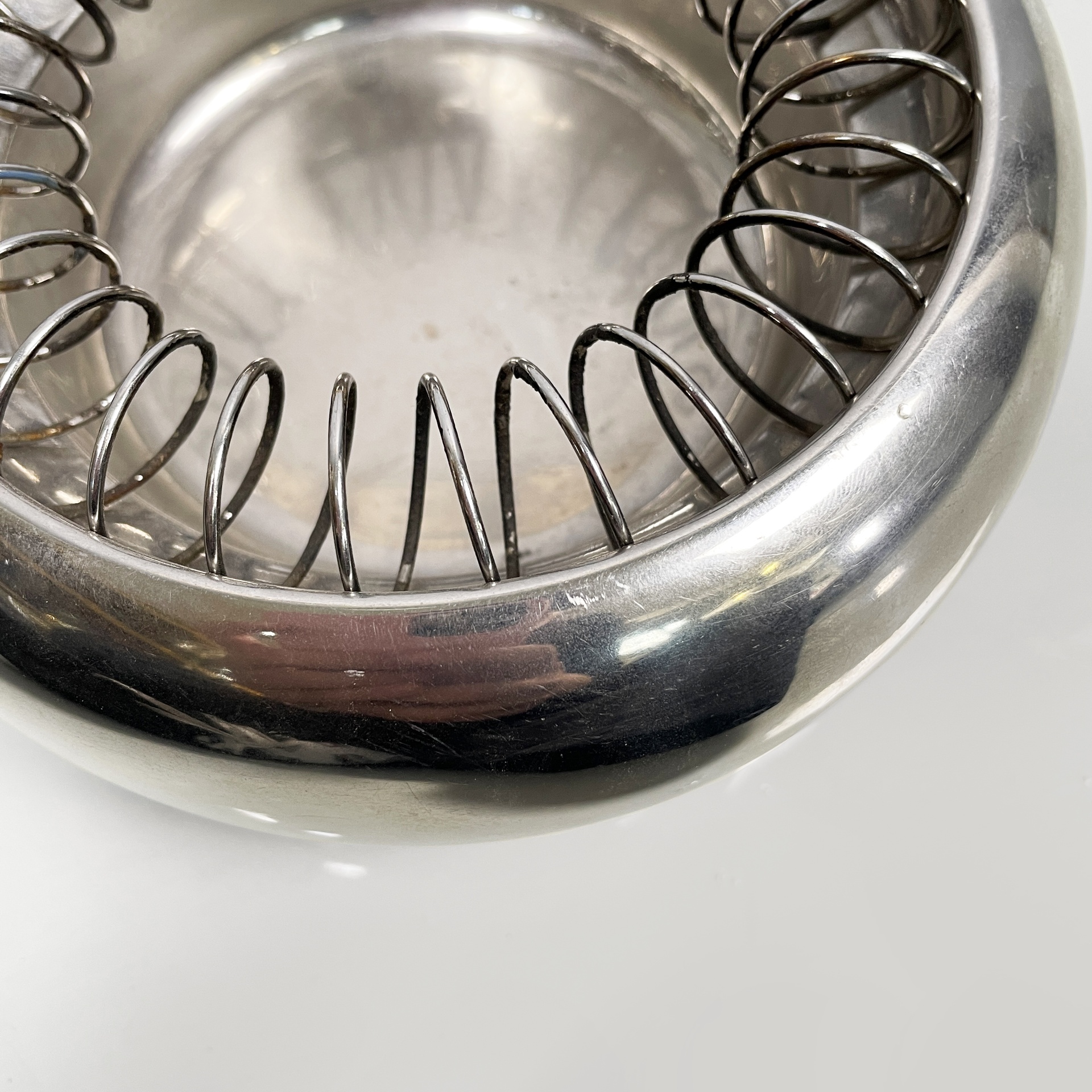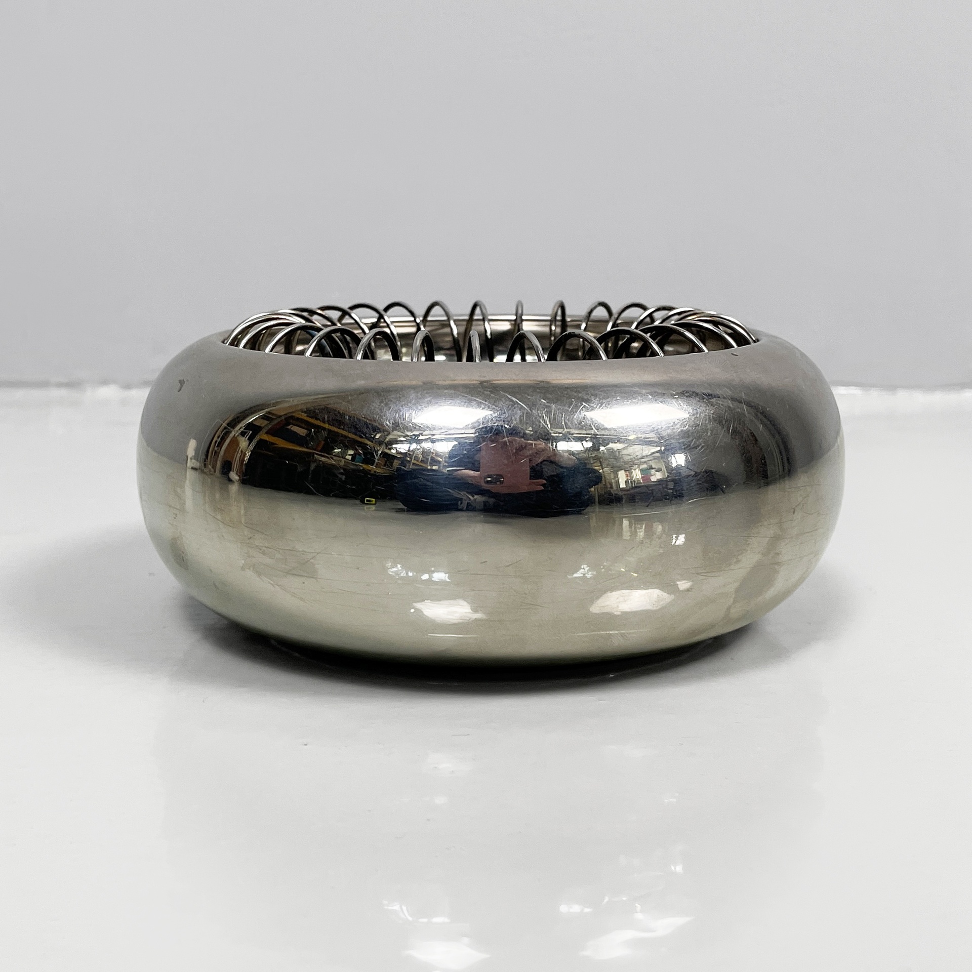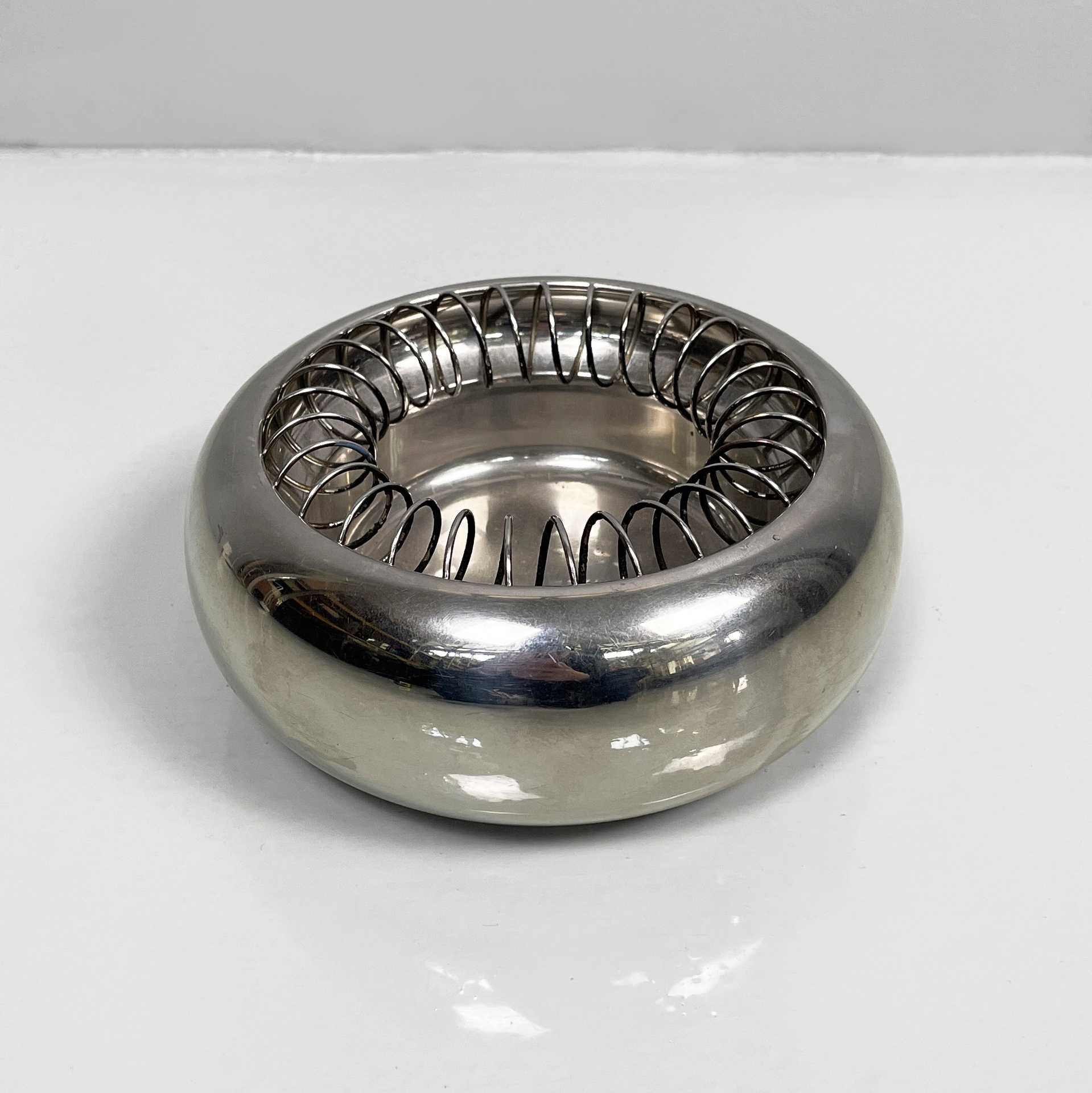 Posacenere modello Spirale a base tonda in acciaio inossidabile. Nel piatto tondo è poggiata una molla a spirale, utilizzabile come portasigarette.