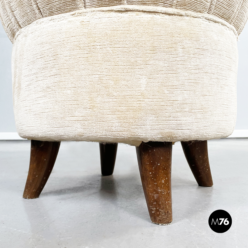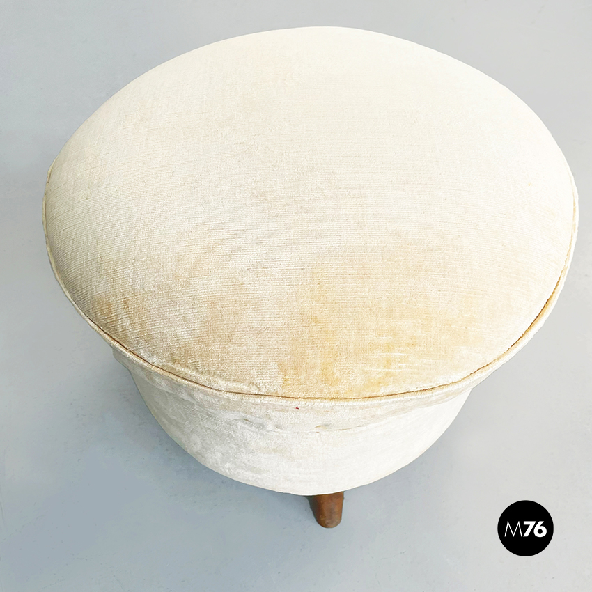 Pouf in tessuto e legno, 1960 ca.