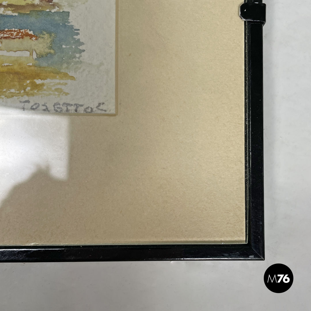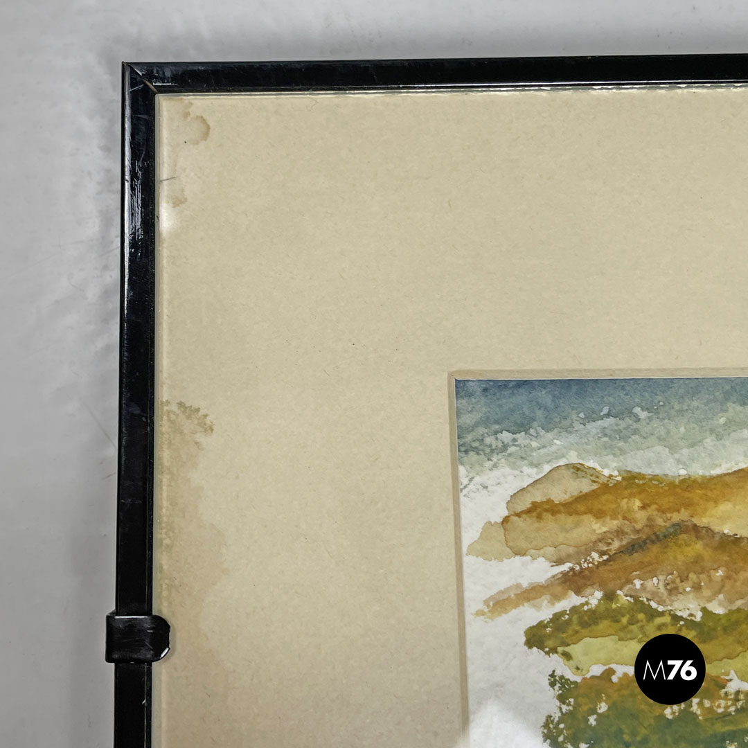 Quadro ad acquarello con cornice in legno nero, 1990 ca.