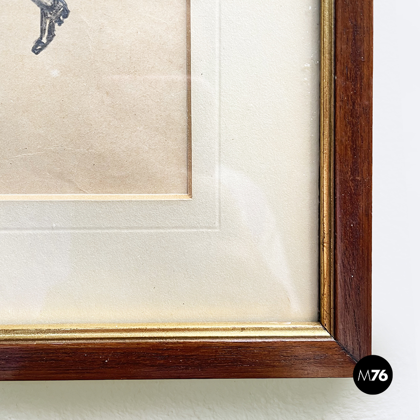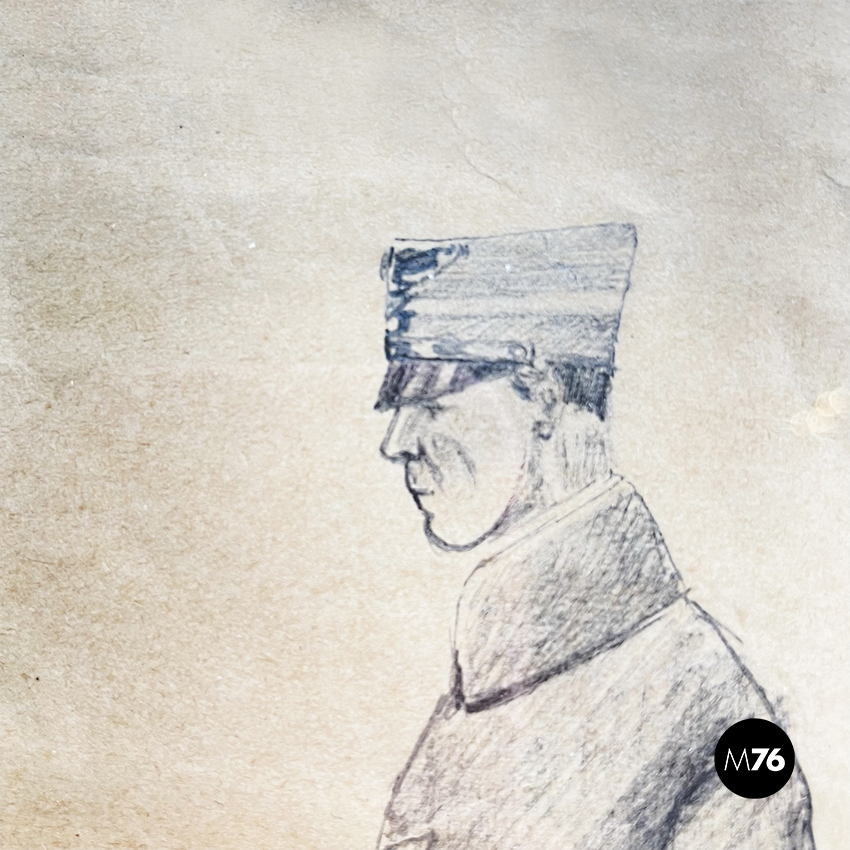 Quadro con disegno a matita su carta, 1900 ca.