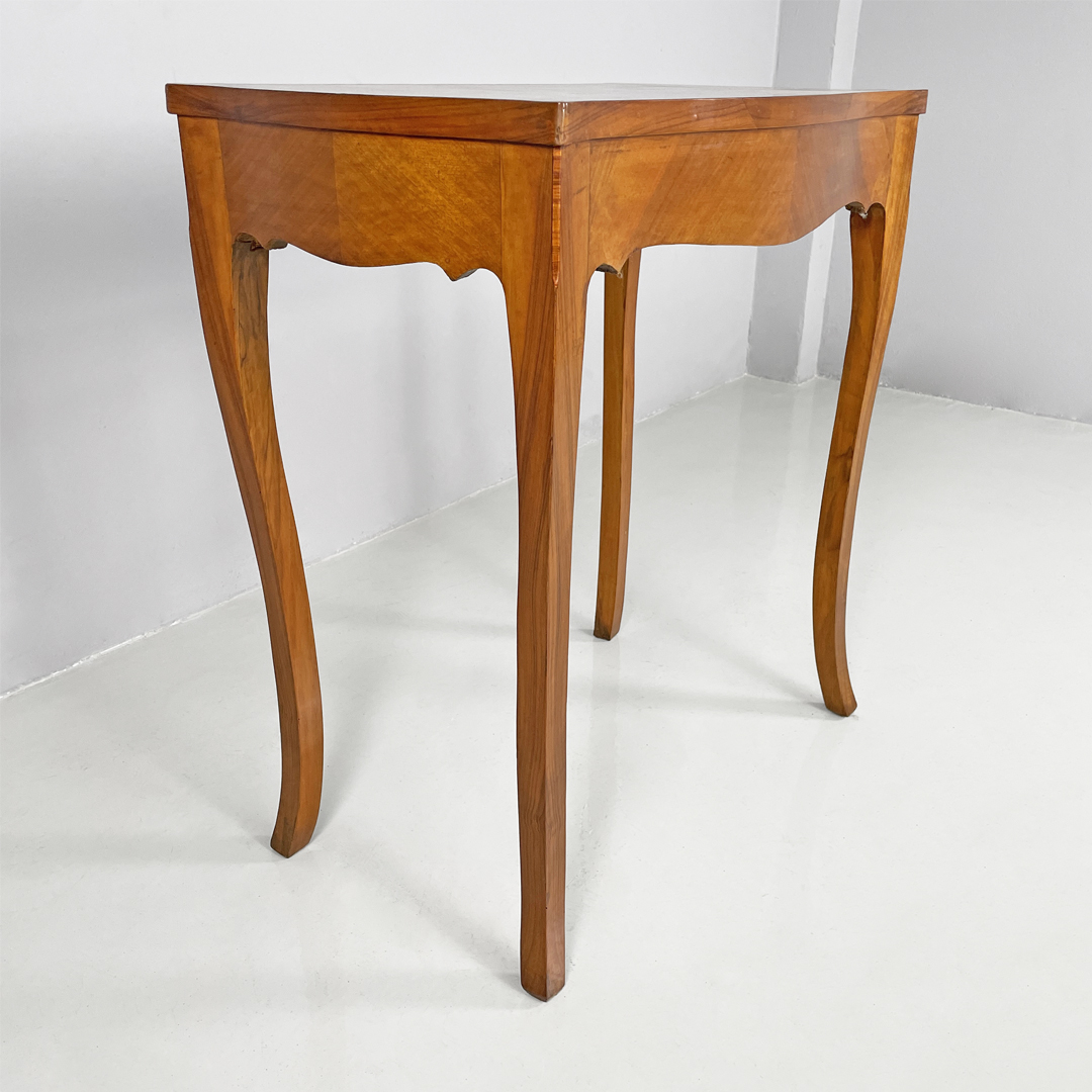 Il bordo sottostante è intarsiato. Le zampe a sezione quadrata sono leggermente incurvate.