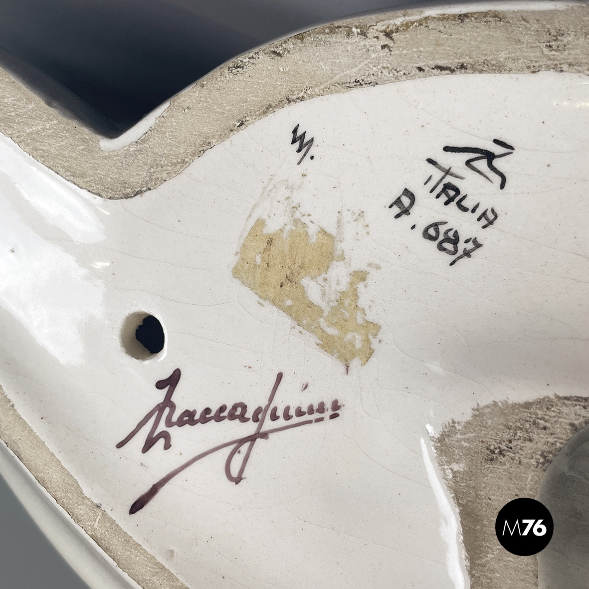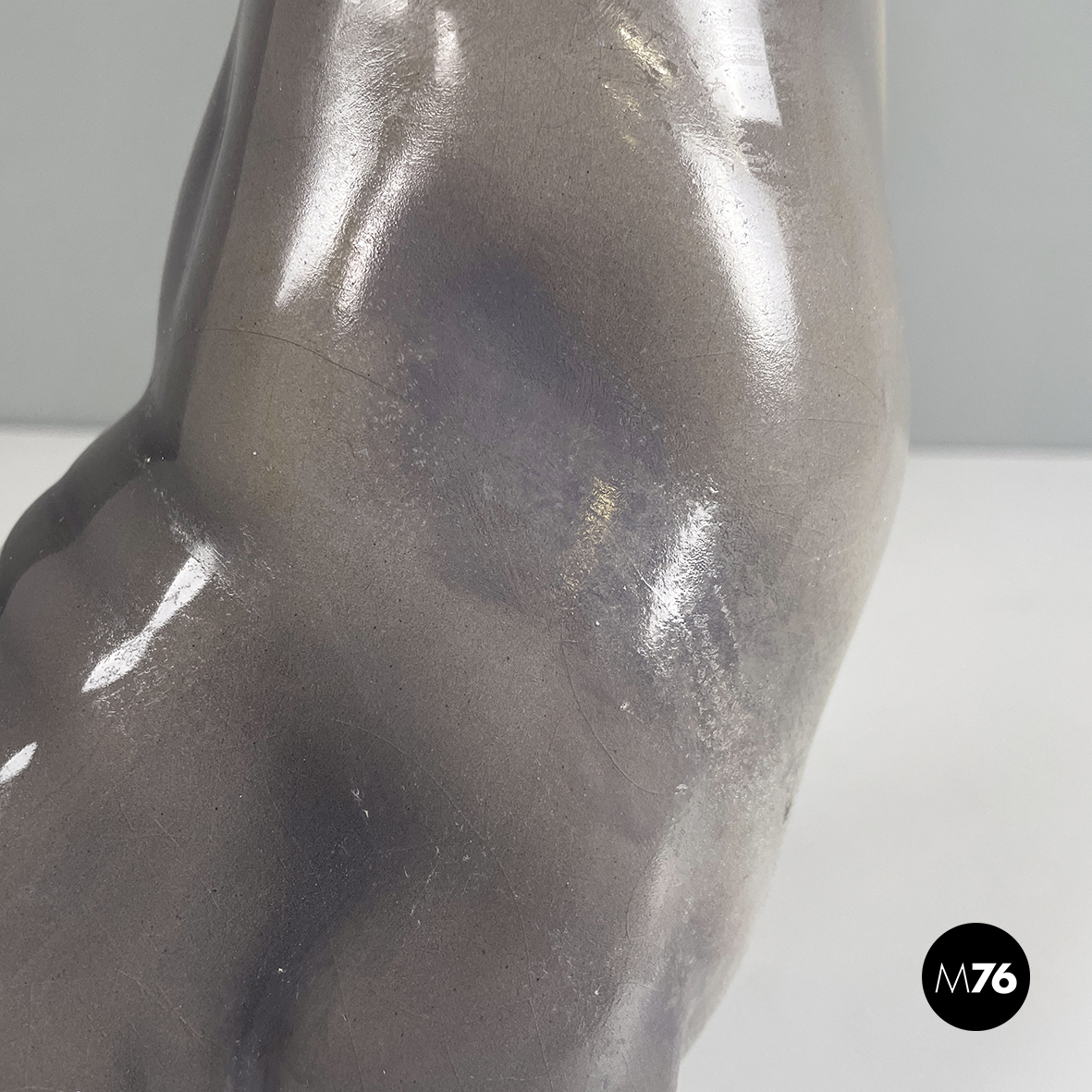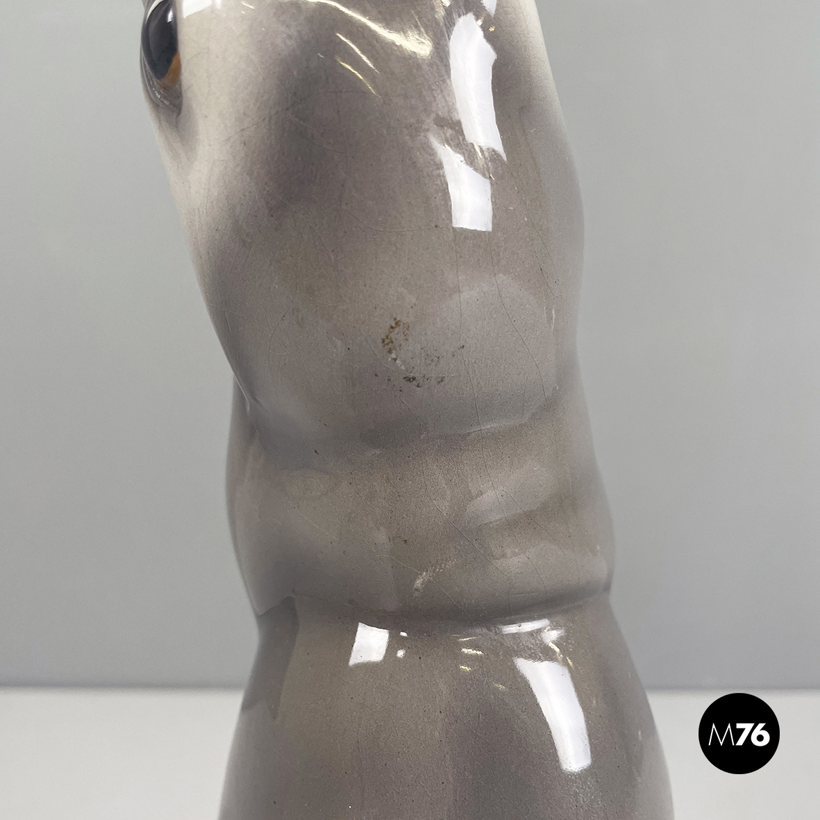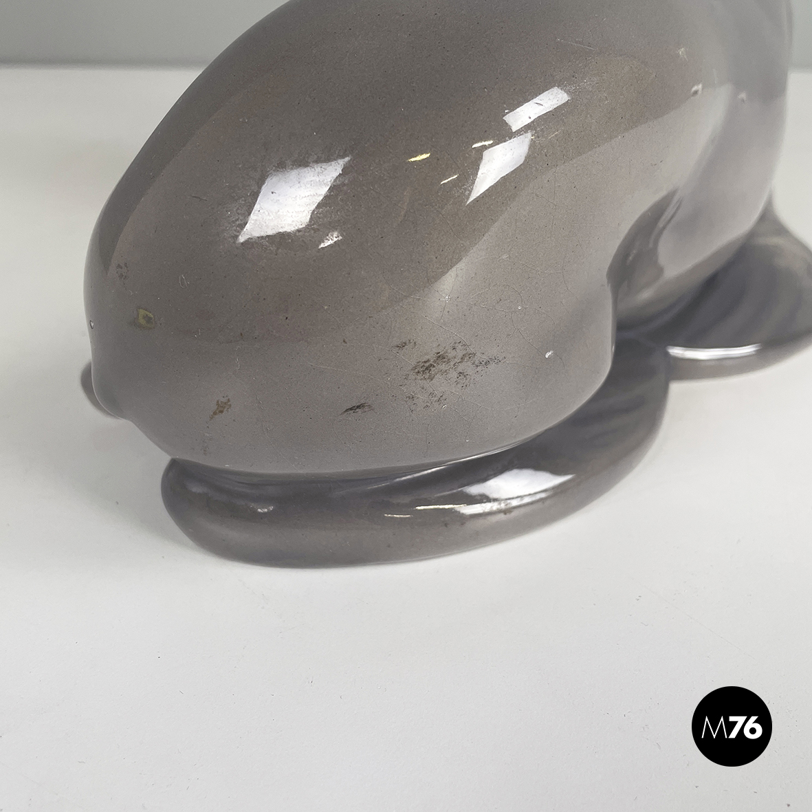 Scultura in ceramica raffigurante un leone marino con il muso teso verso l’alto. Finemente lavorata e dipinta.