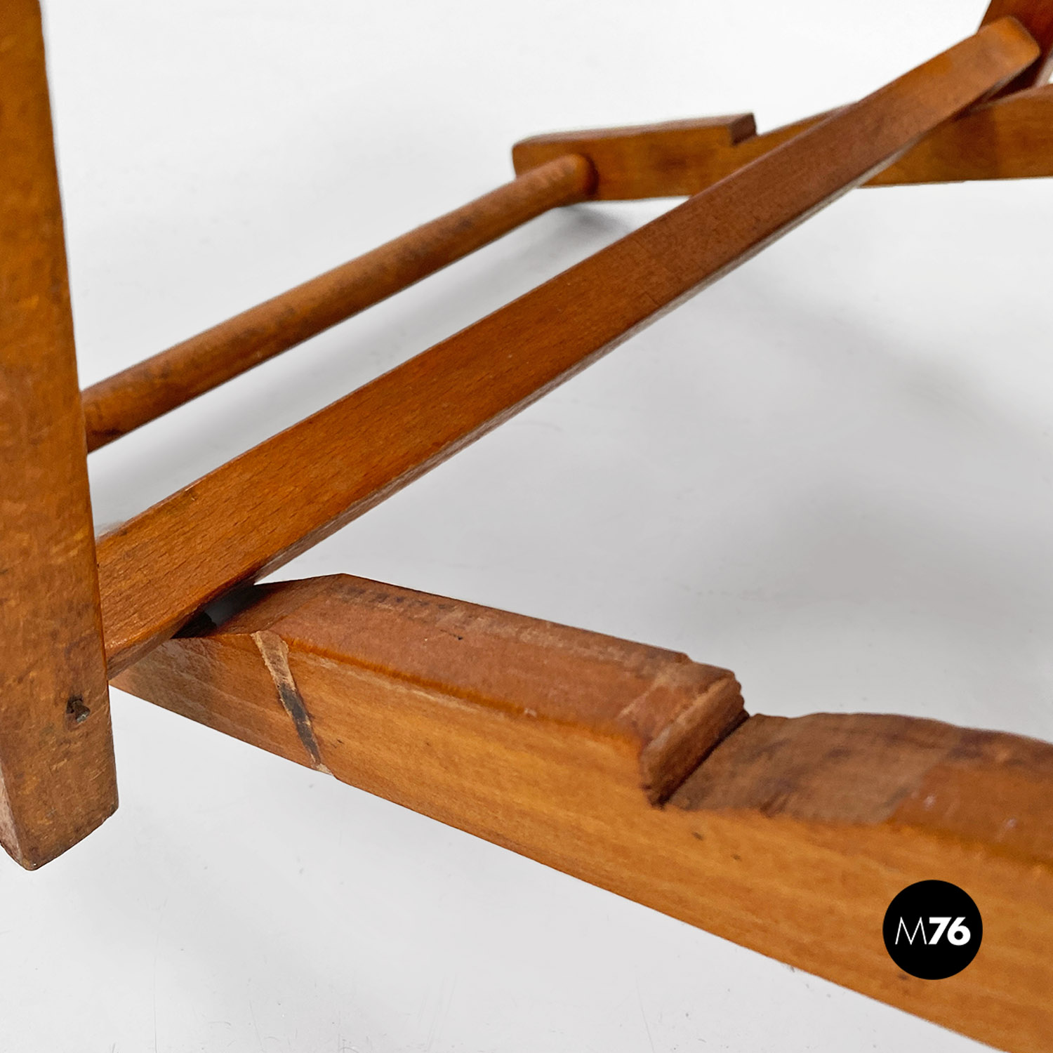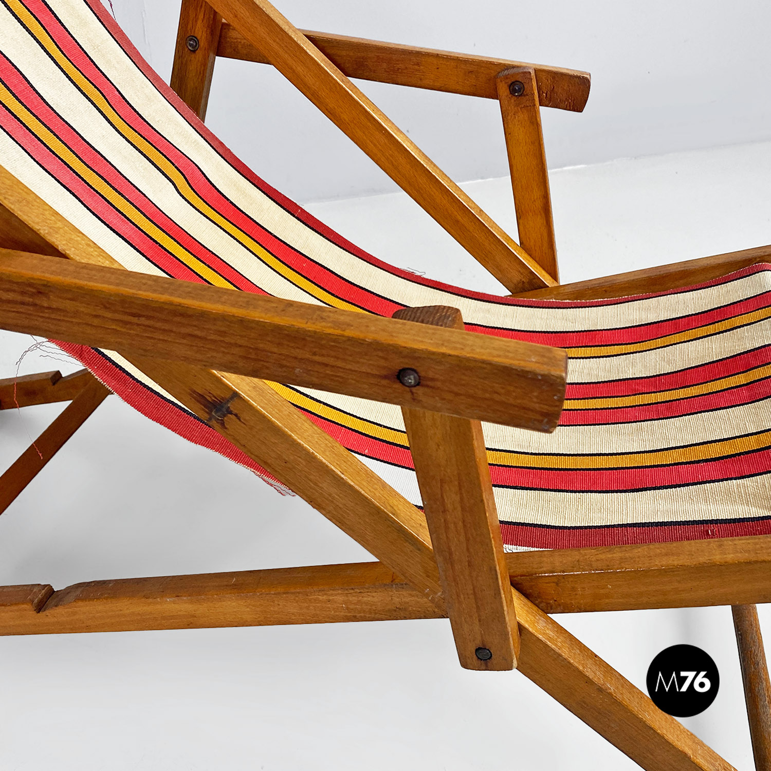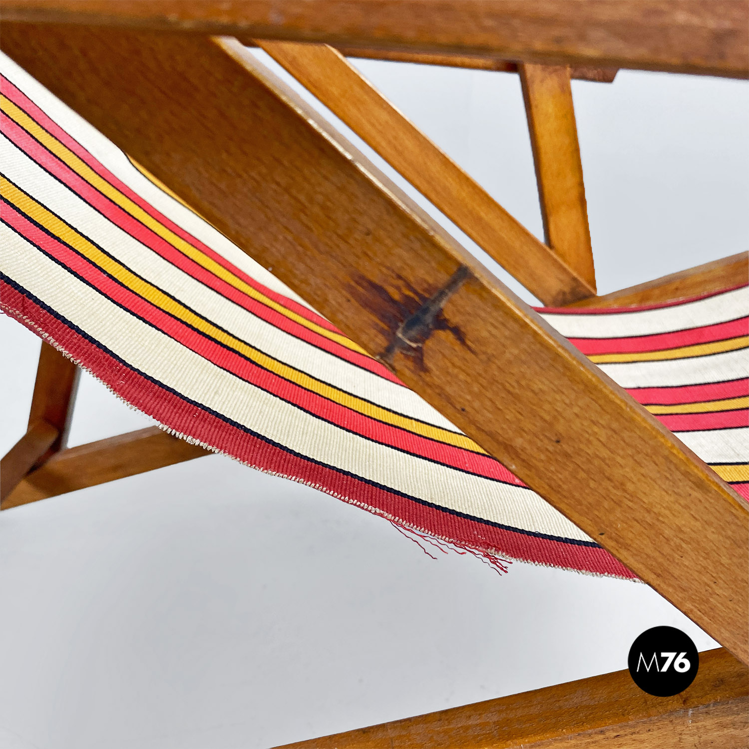 Sdraio da bambino in tessuto a righe e legno, 1950 ca.