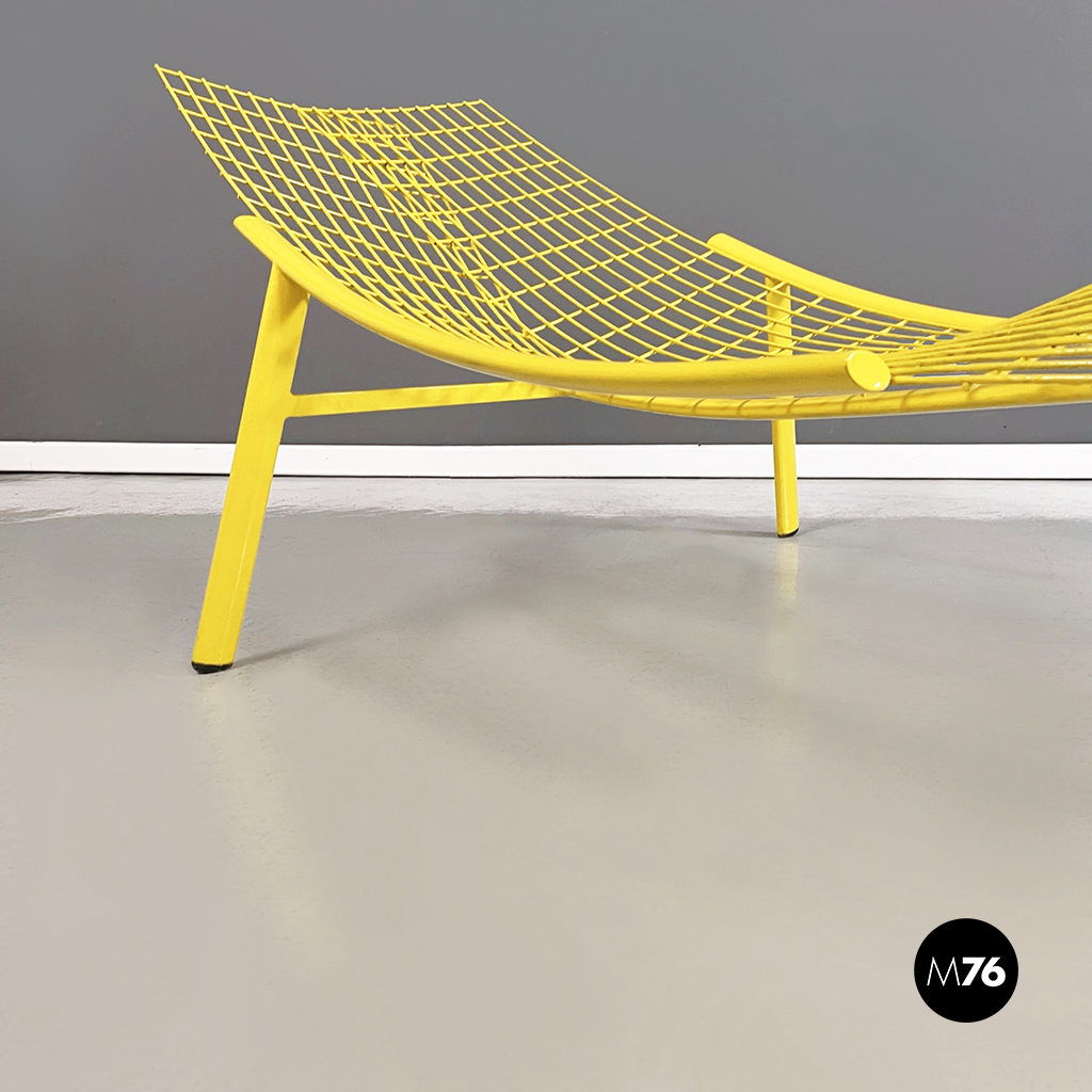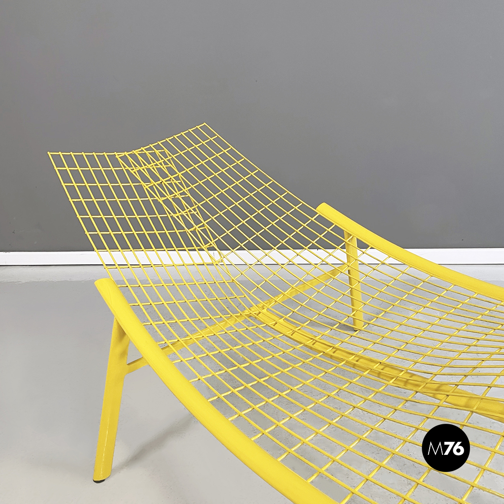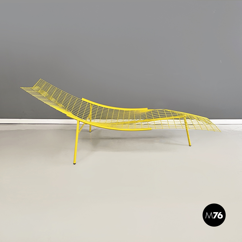 Sedia a sdraio o chaise longue modello Swing Rete interamente in metallo verniciato giallo. La struttura della seduta è in lamiera di metallo. Le tre zampe sono a sezione ovale in metallo. La chaise longue può essere sia per uso esterno come giardino o terrazzo sia per uso interno.