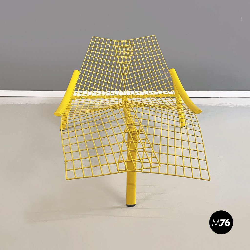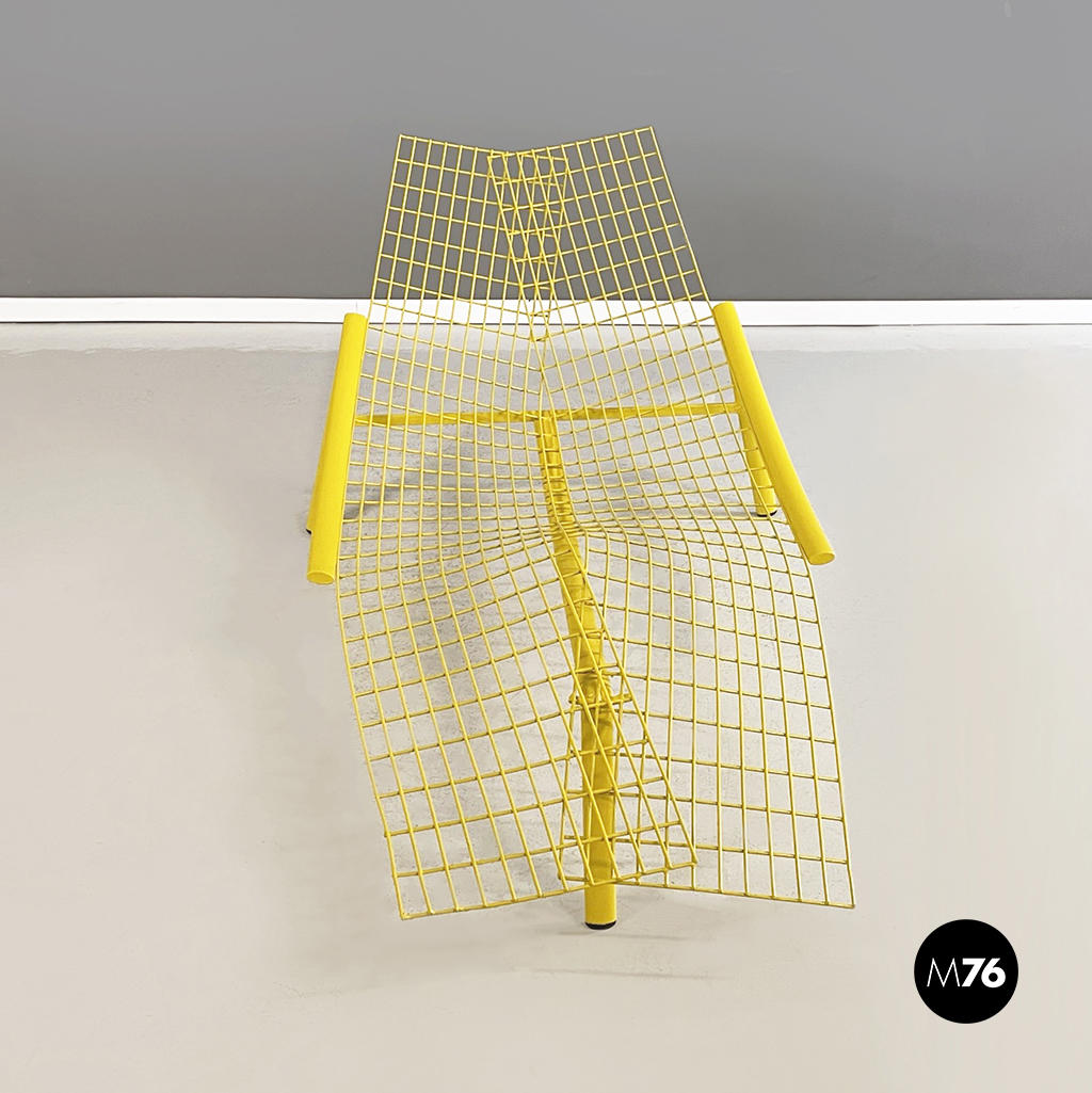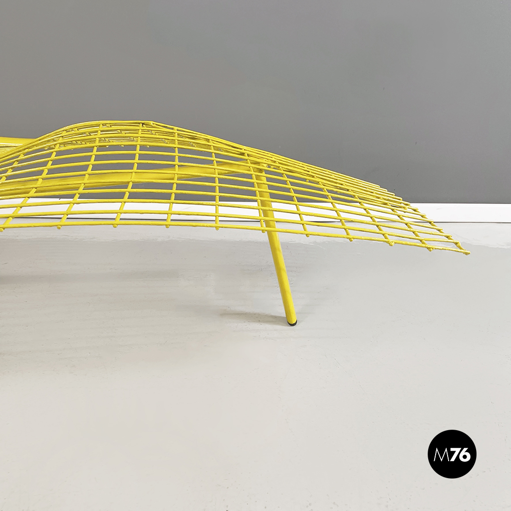 Sedia a sdraio o chaise longue modello Swing Rete interamente in metallo verniciato giallo. La struttura della seduta è in lamiera di metallo. Le tre zampe sono a sezione ovale in metallo. La chaise longue può essere sia per uso esterno come giardino o terrazzo sia per uso interno.