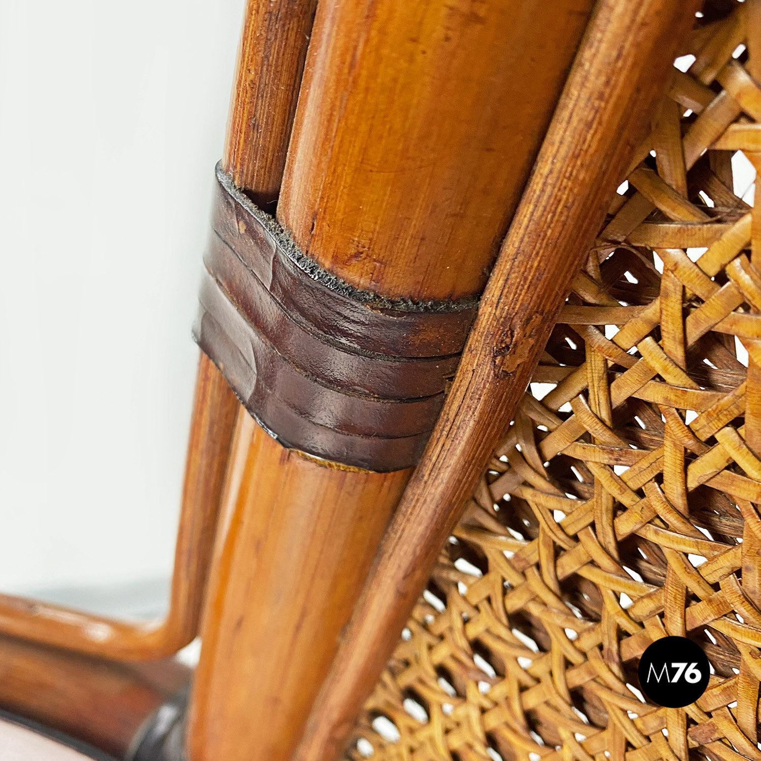 Sedia a pozzetto in paglia di Vienna, acciaio e legno, 1970 ca.