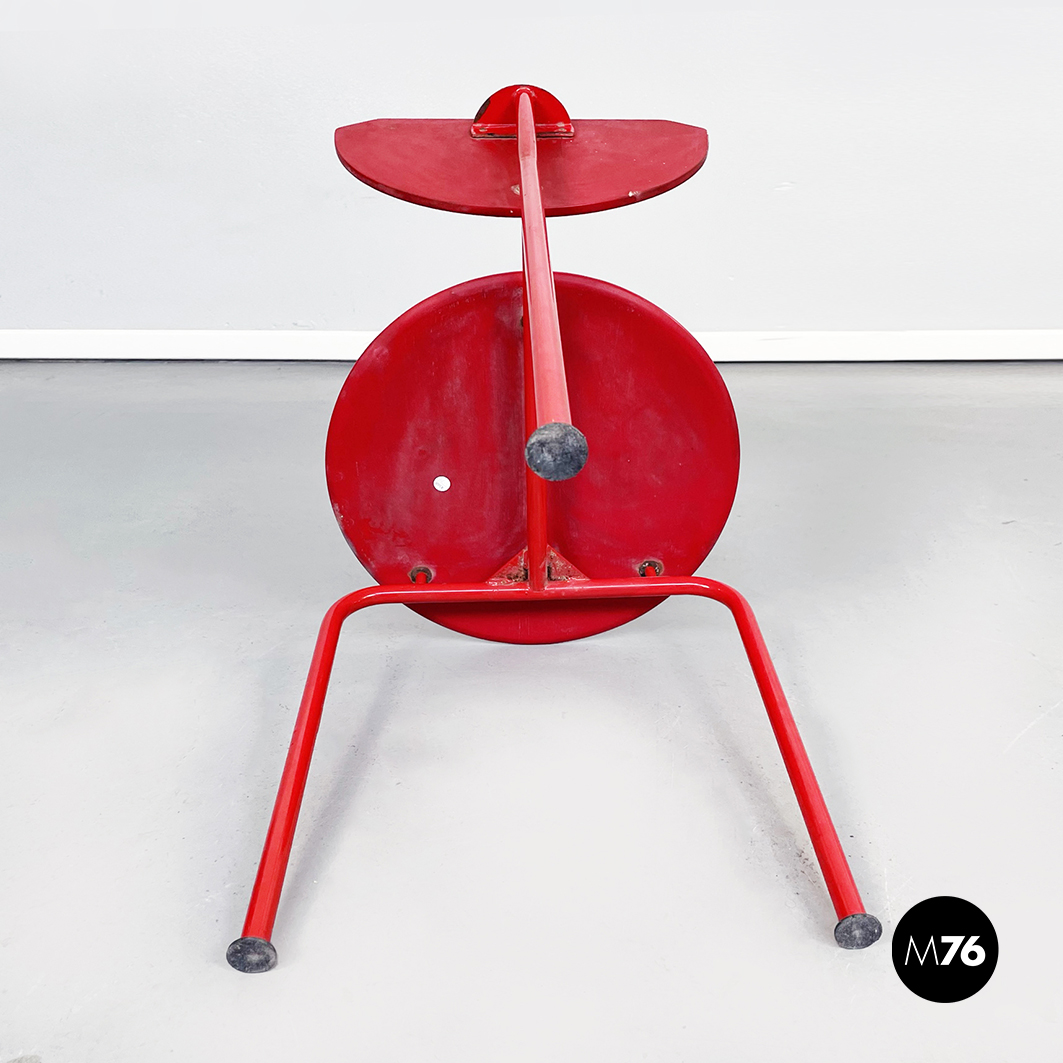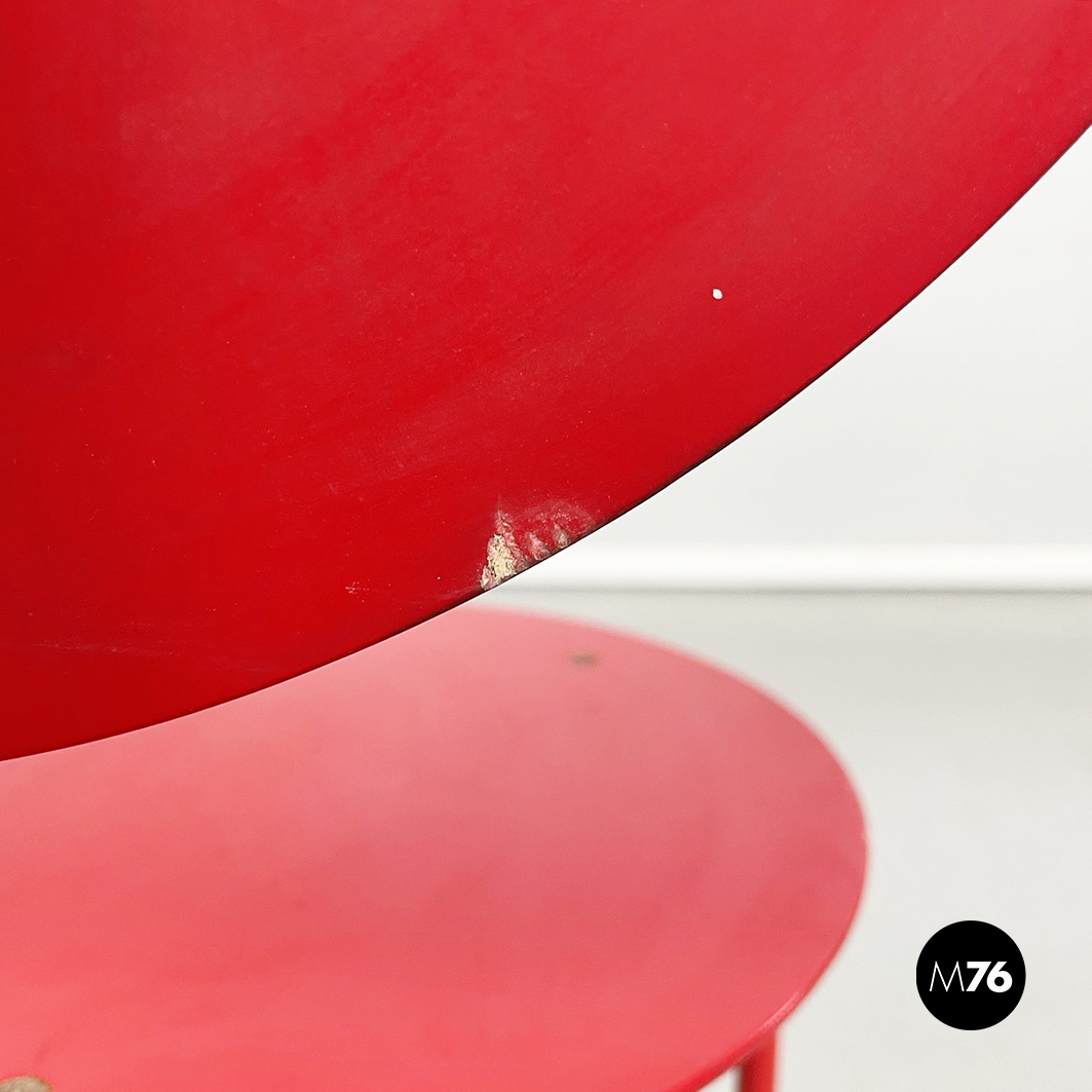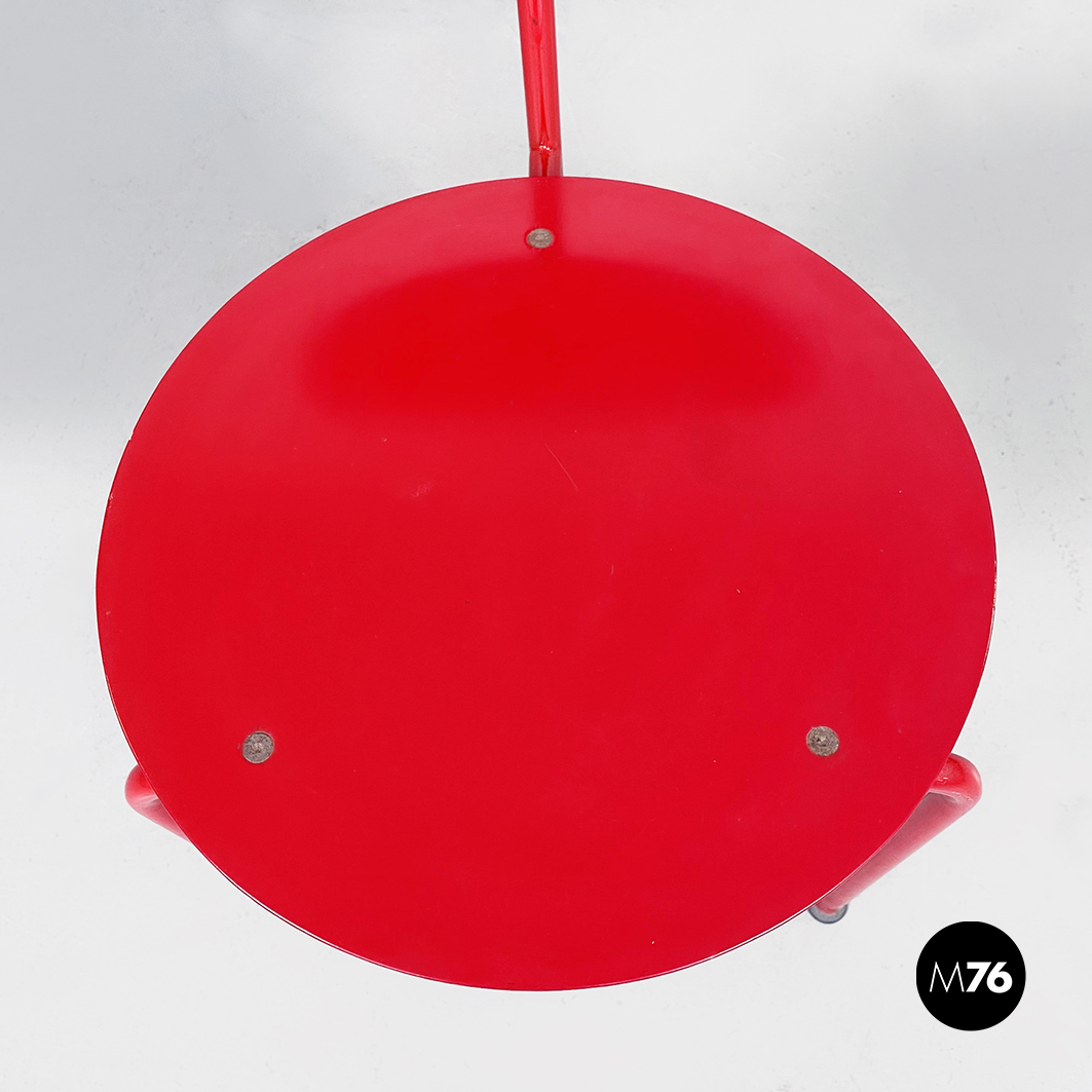 Sedia modello Alien con seduta tonda e schienale in MDF verniciato rosso. La struttura è in tondino di metallo verniciato rosso.