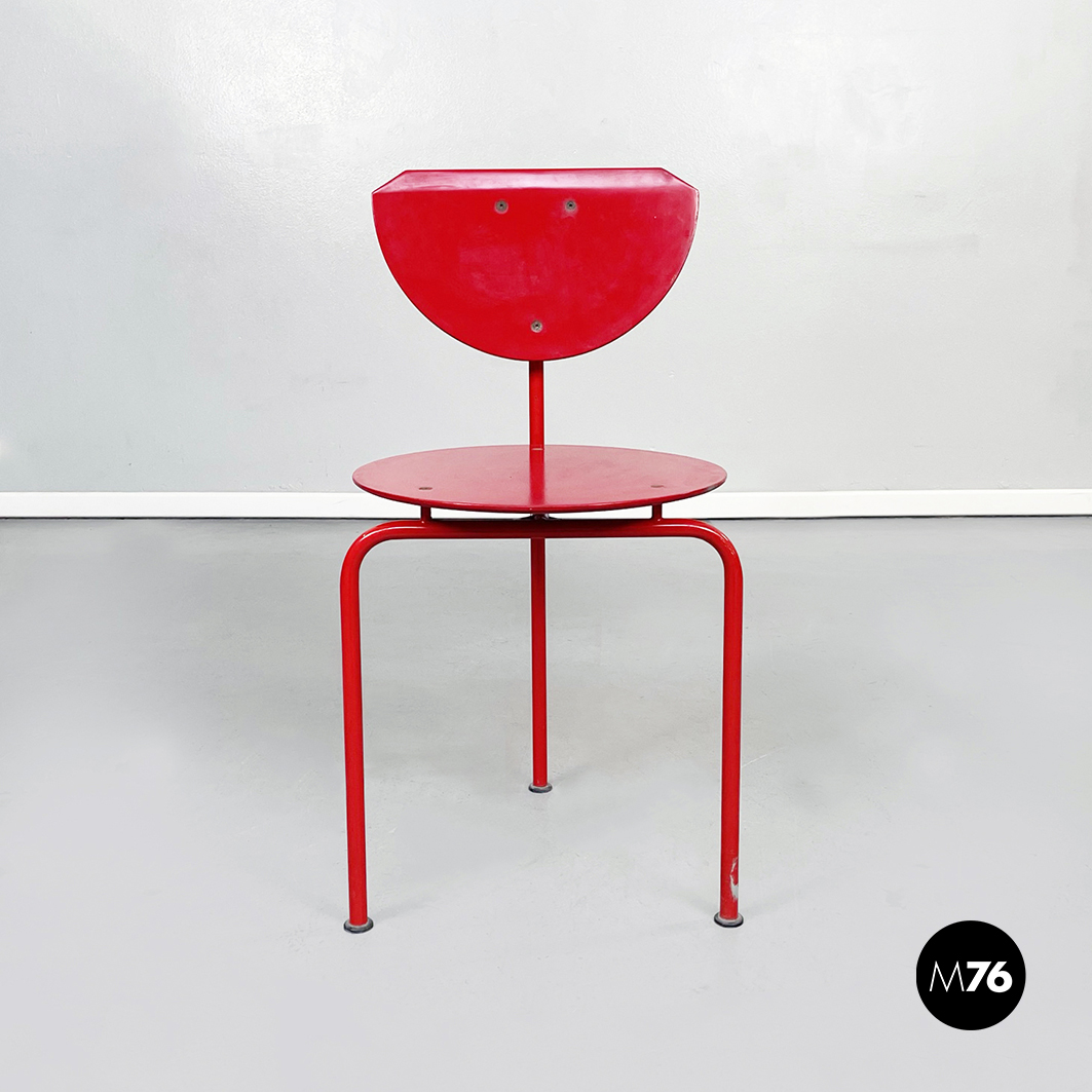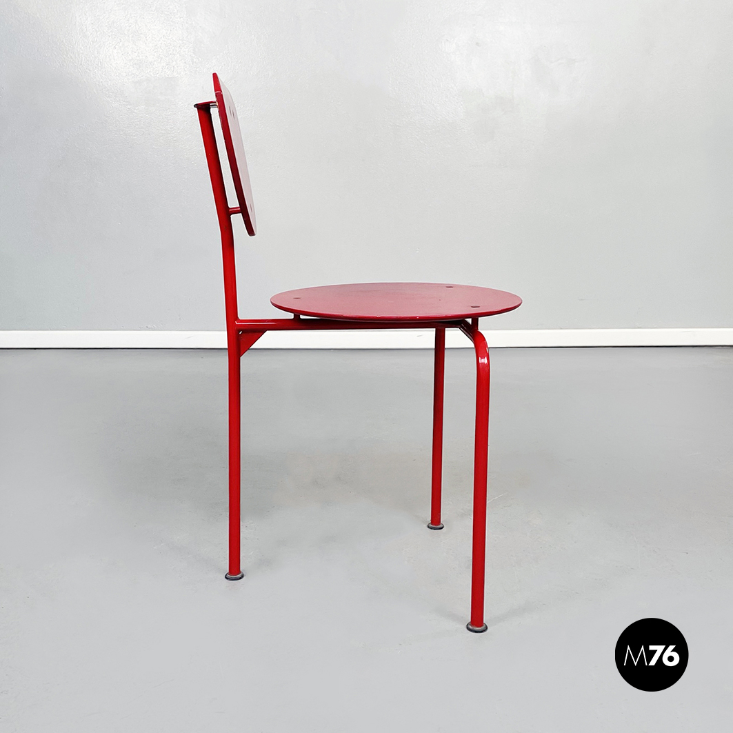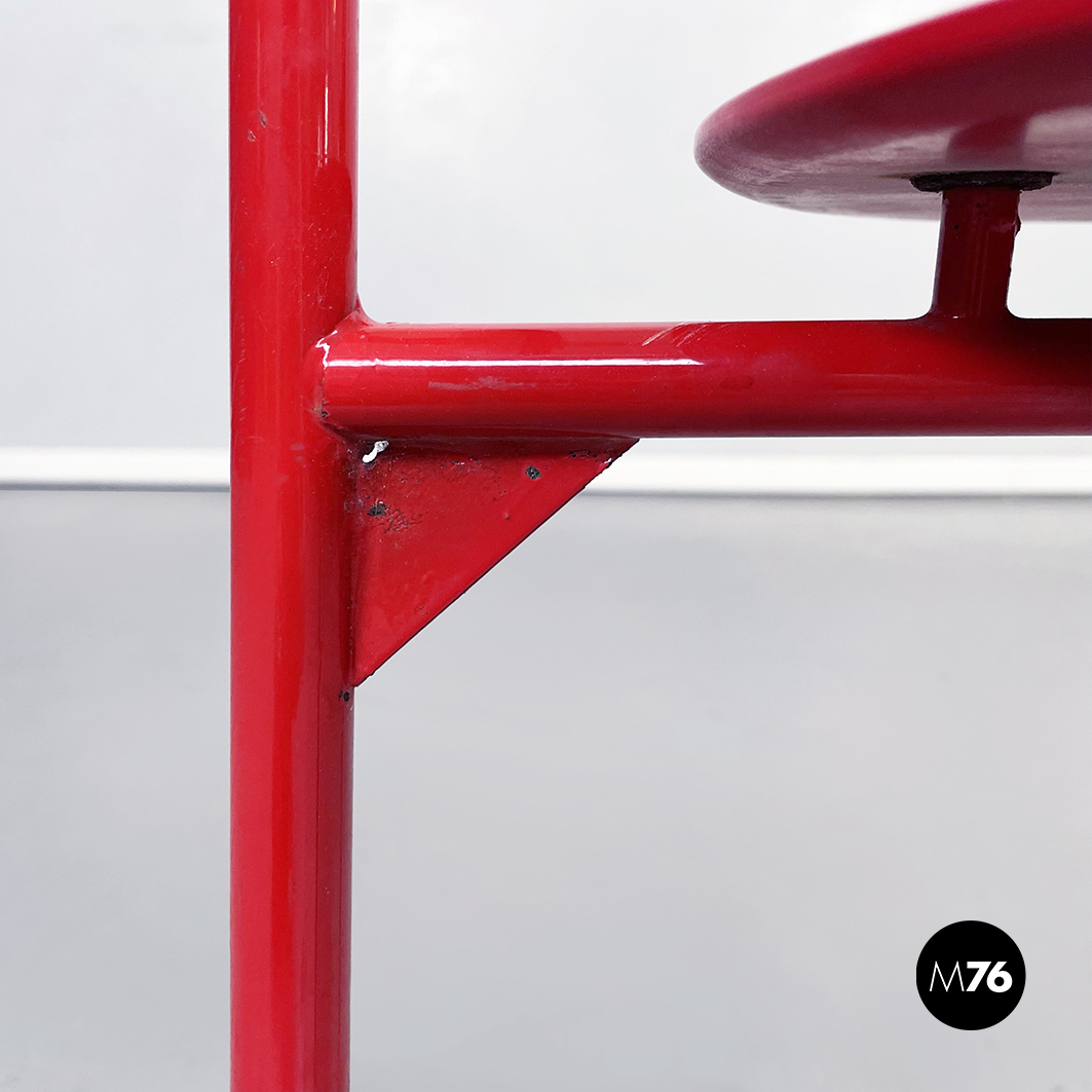 Sedia modello Alien con seduta tonda e schienale in MDF verniciato rosso. La struttura è in tondino di metallo verniciato rosso.