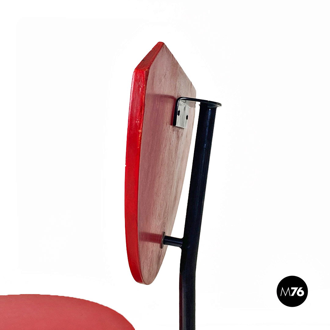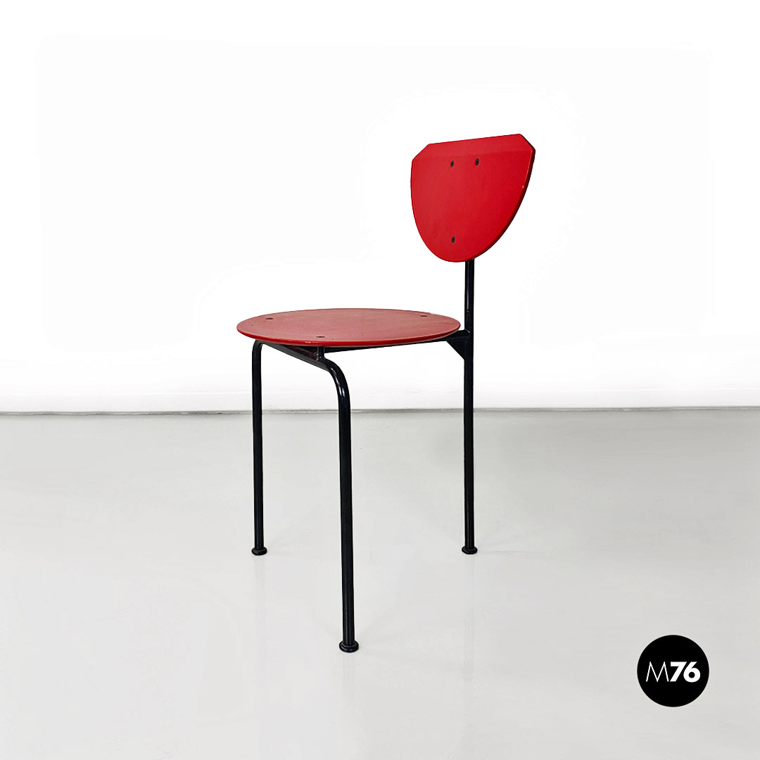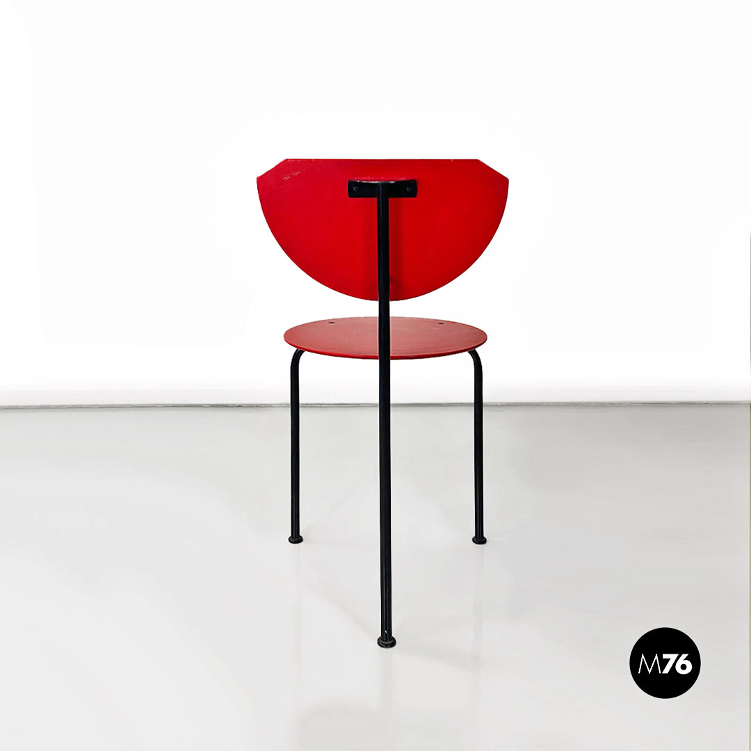 Sedia modello Alien con struttura in tondino di metallo nero e seduta e schienale in MDF color rosso.