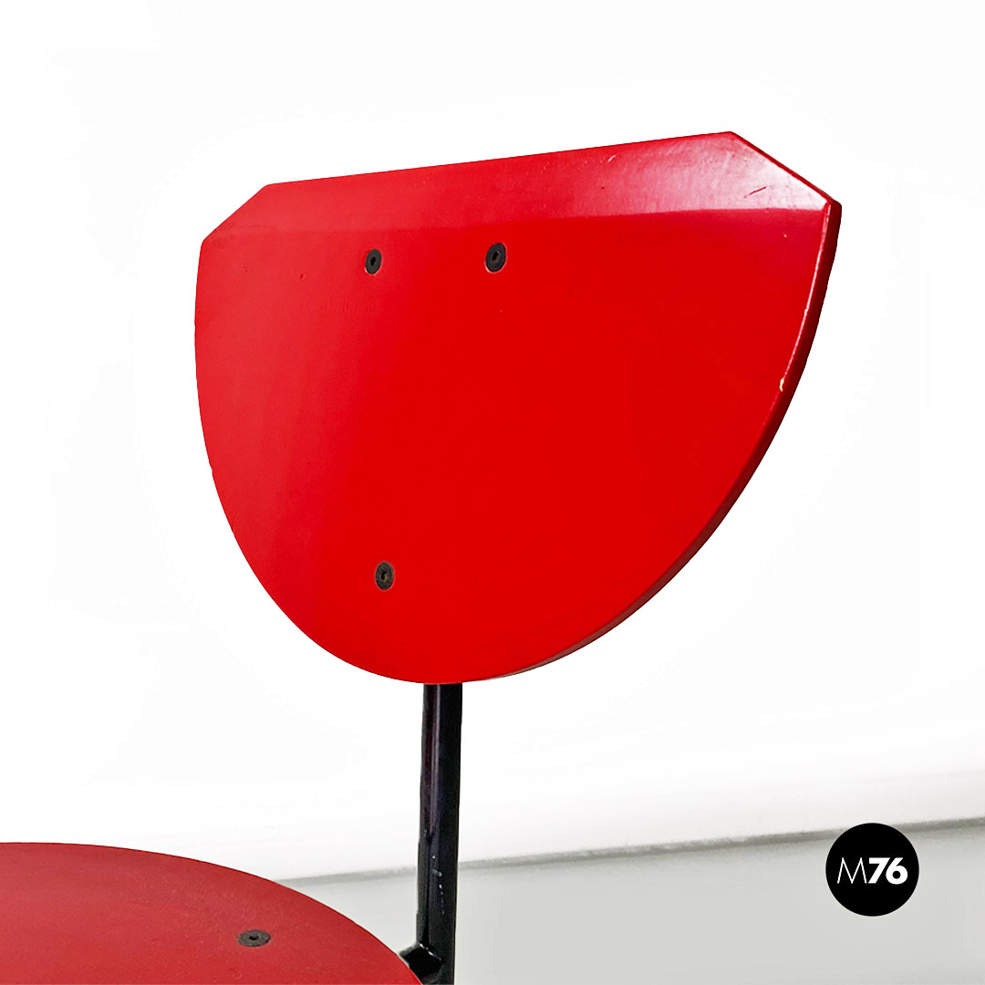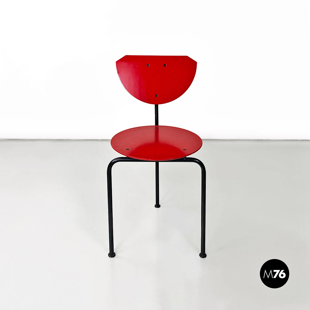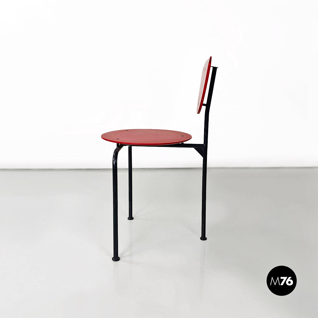 Sedia modello Alien con struttura in tondino di metallo nero e seduta e schienale in MDF color rosso.