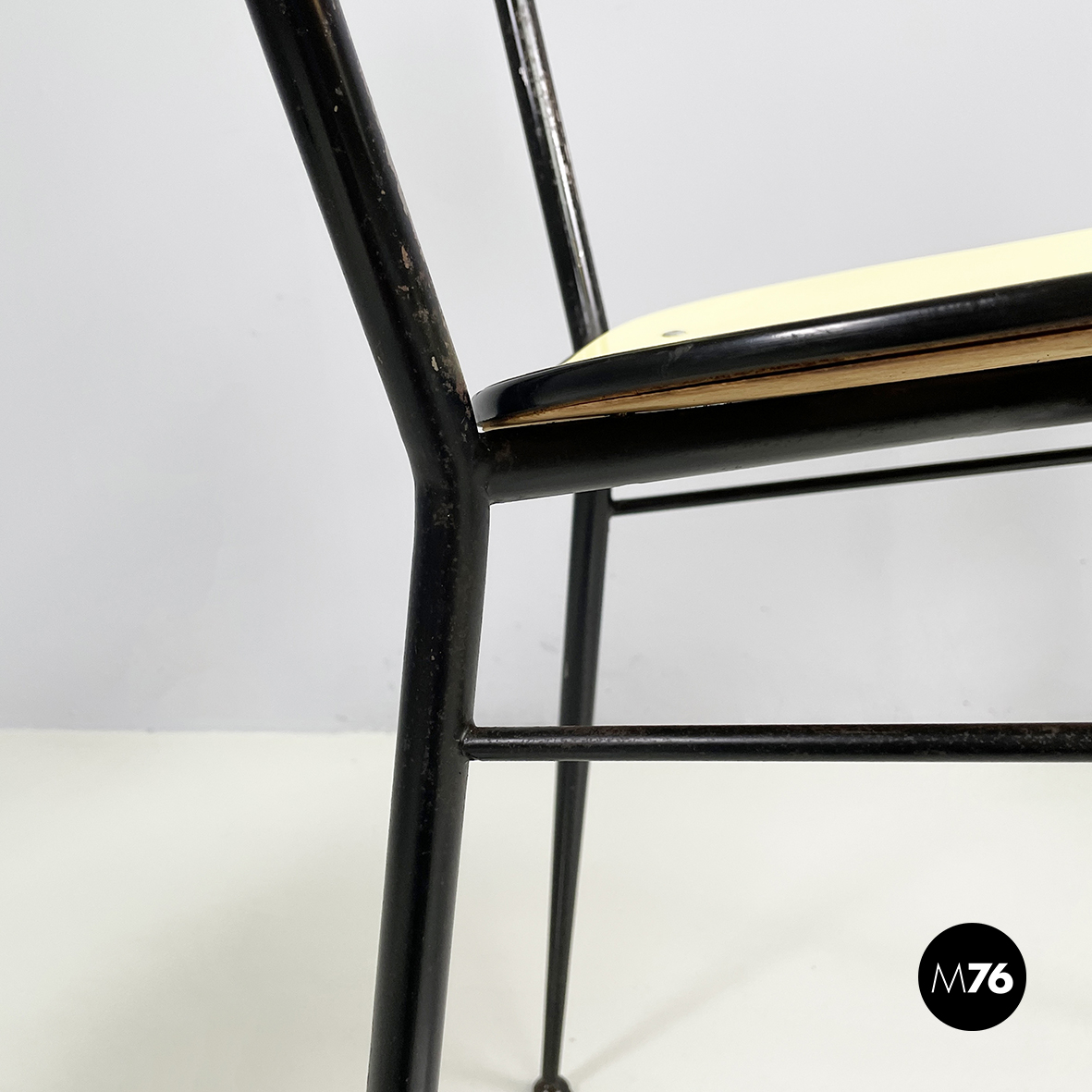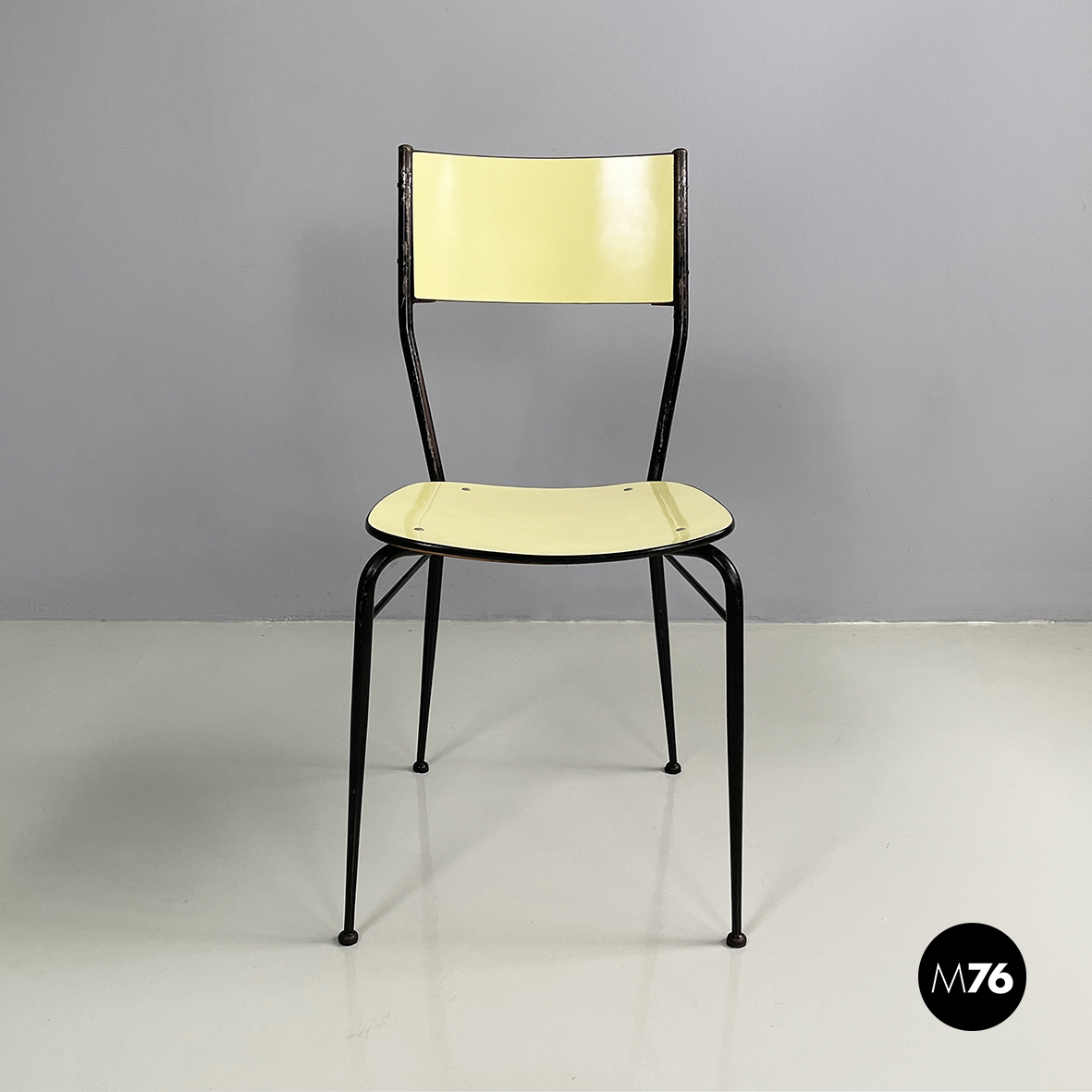 Sedia in laminato giallo e metallo nero, 1960 ca.