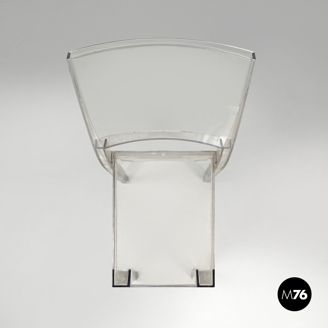 Sedia modello La Marie in plastica trasparente. La seduta e lo schienale sono rettangolari le quattro gambe sono a sezione quadrata.