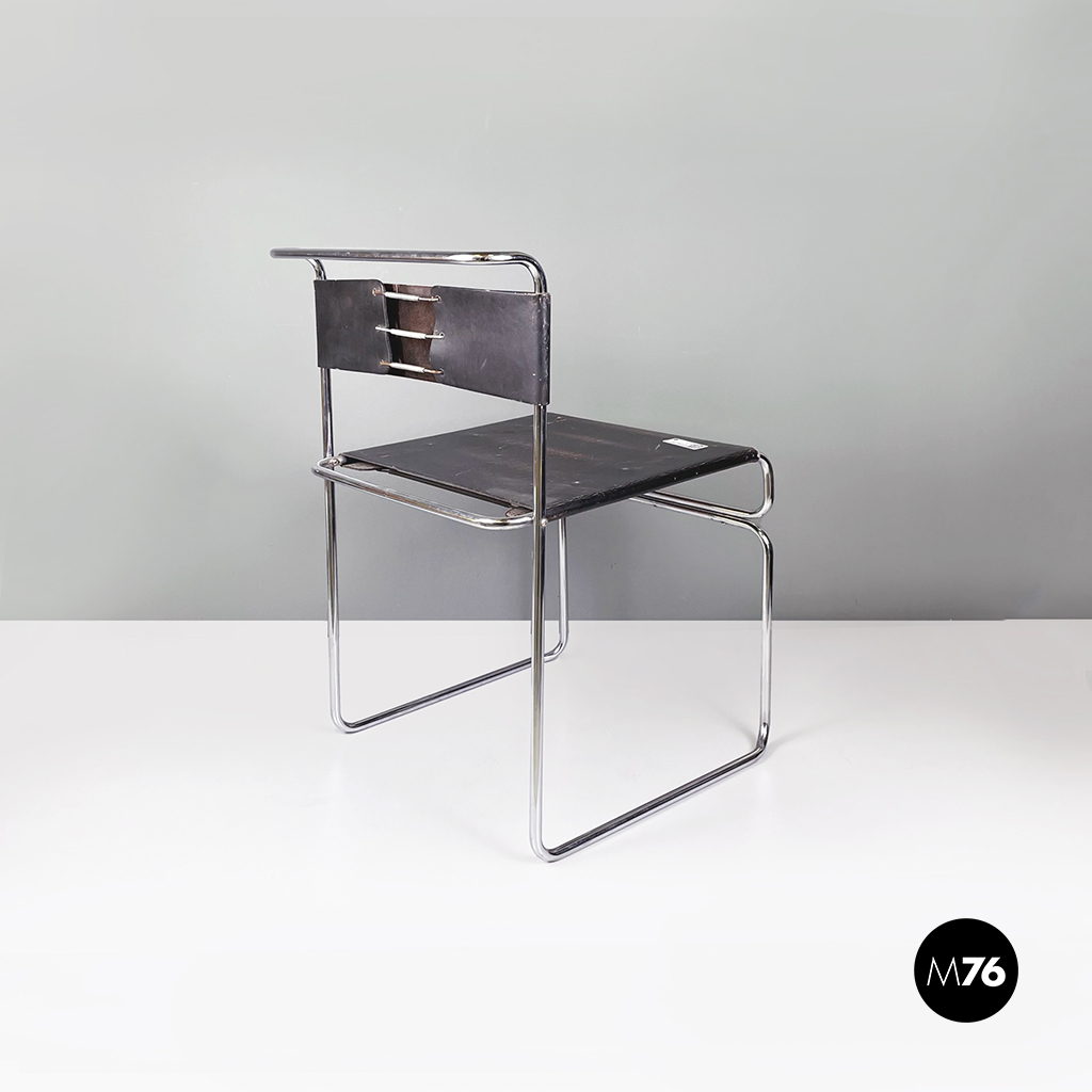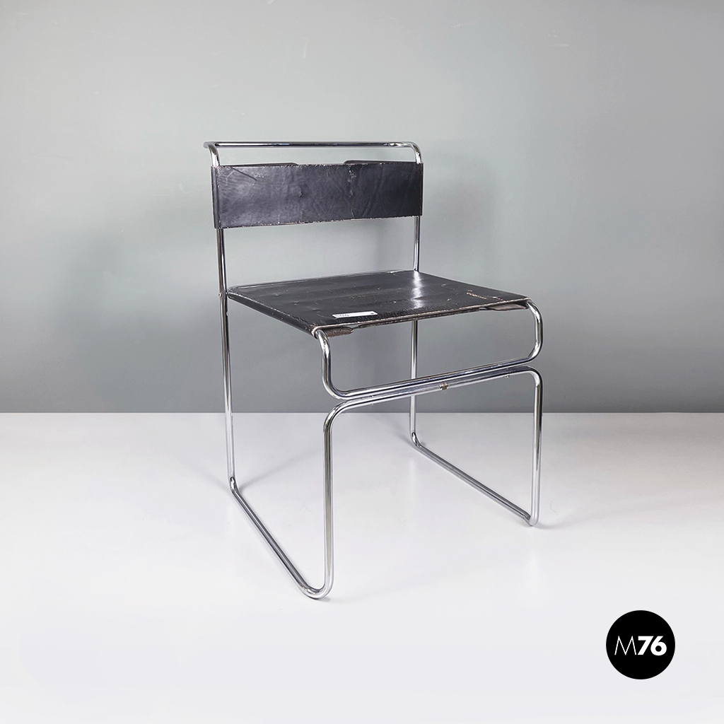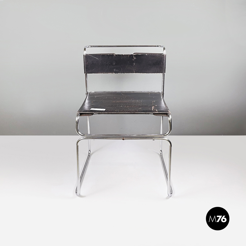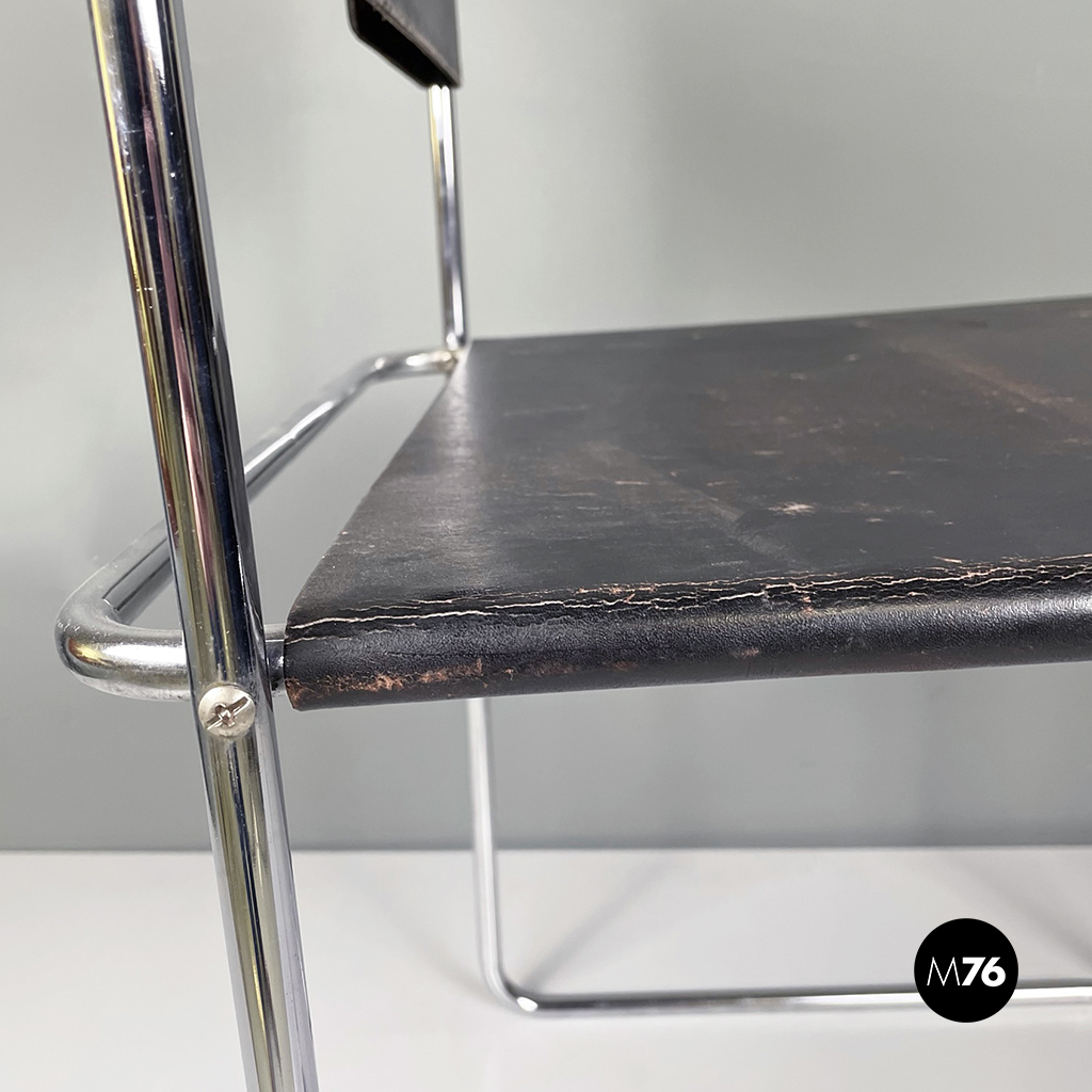 Sedia modello Libellula con struttura in acciaio cromato e seduta e schienale in pelle nera.