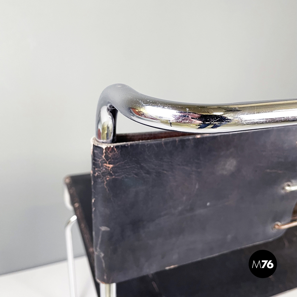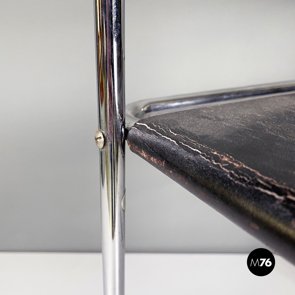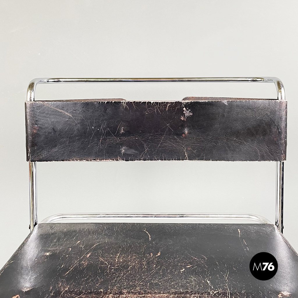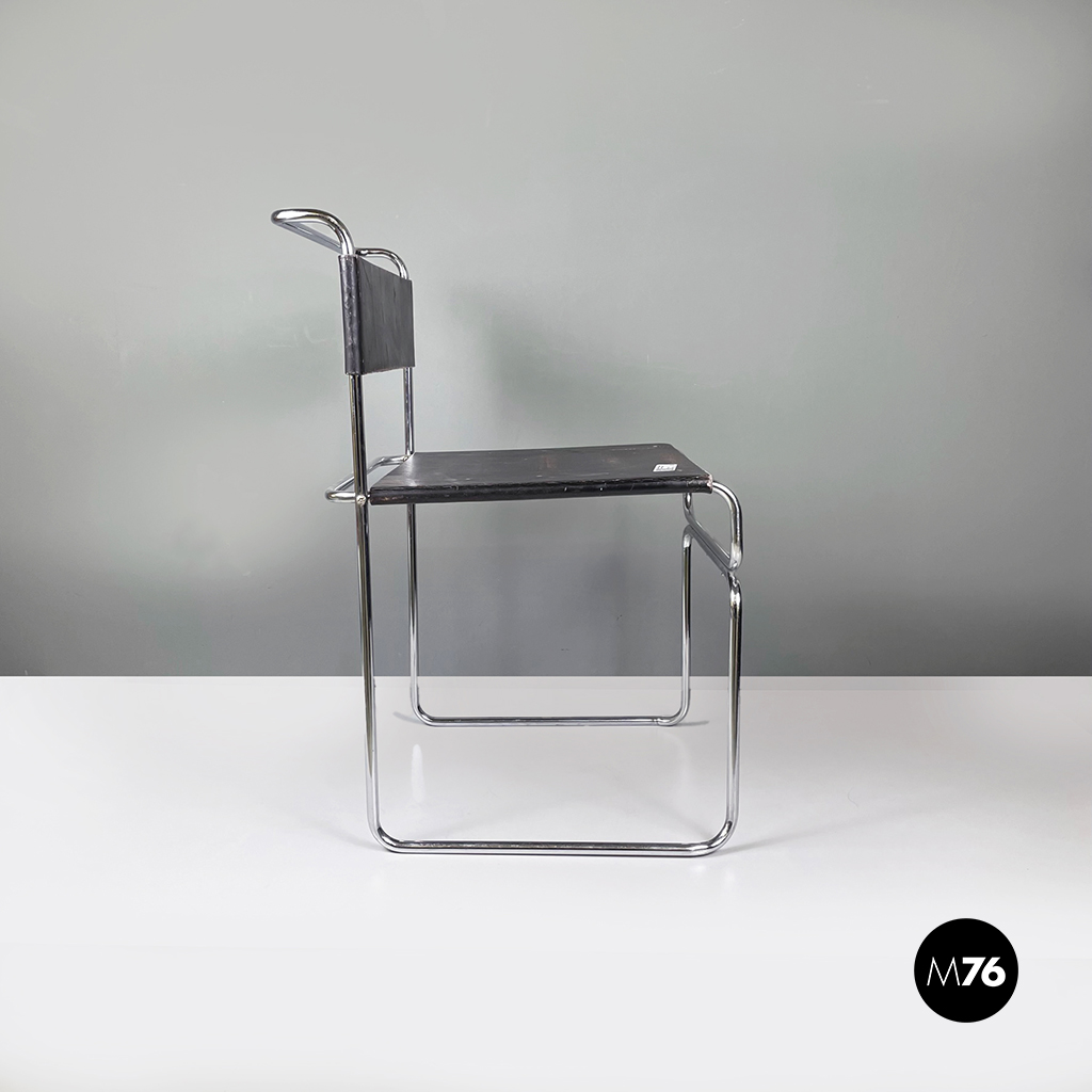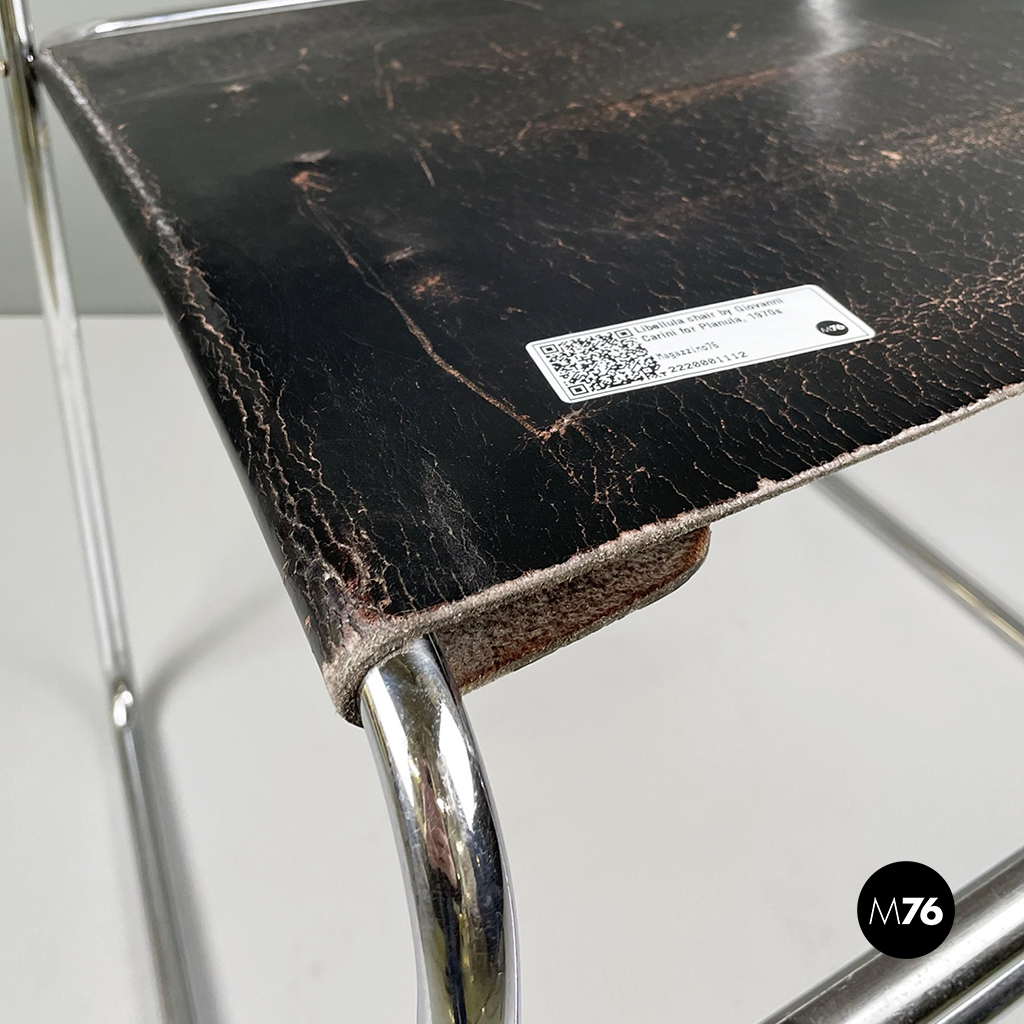 Sedia modello Libellula con struttura in acciaio cromato e seduta e schienale in pelle nera.