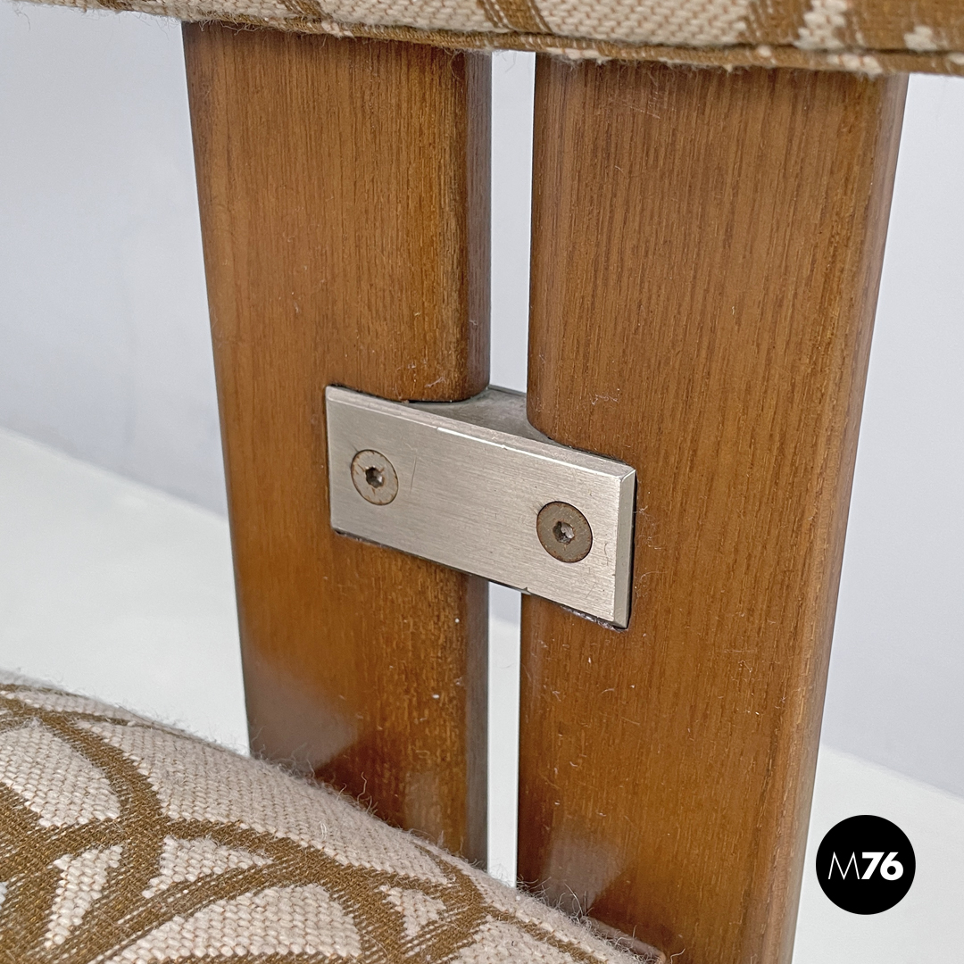 Buone condizioni con segni dell’uso e del tempo ossidazioni e piccoli segni di vernice bianca sul legno. Il tessuto della seduta presenta alcune macchie.