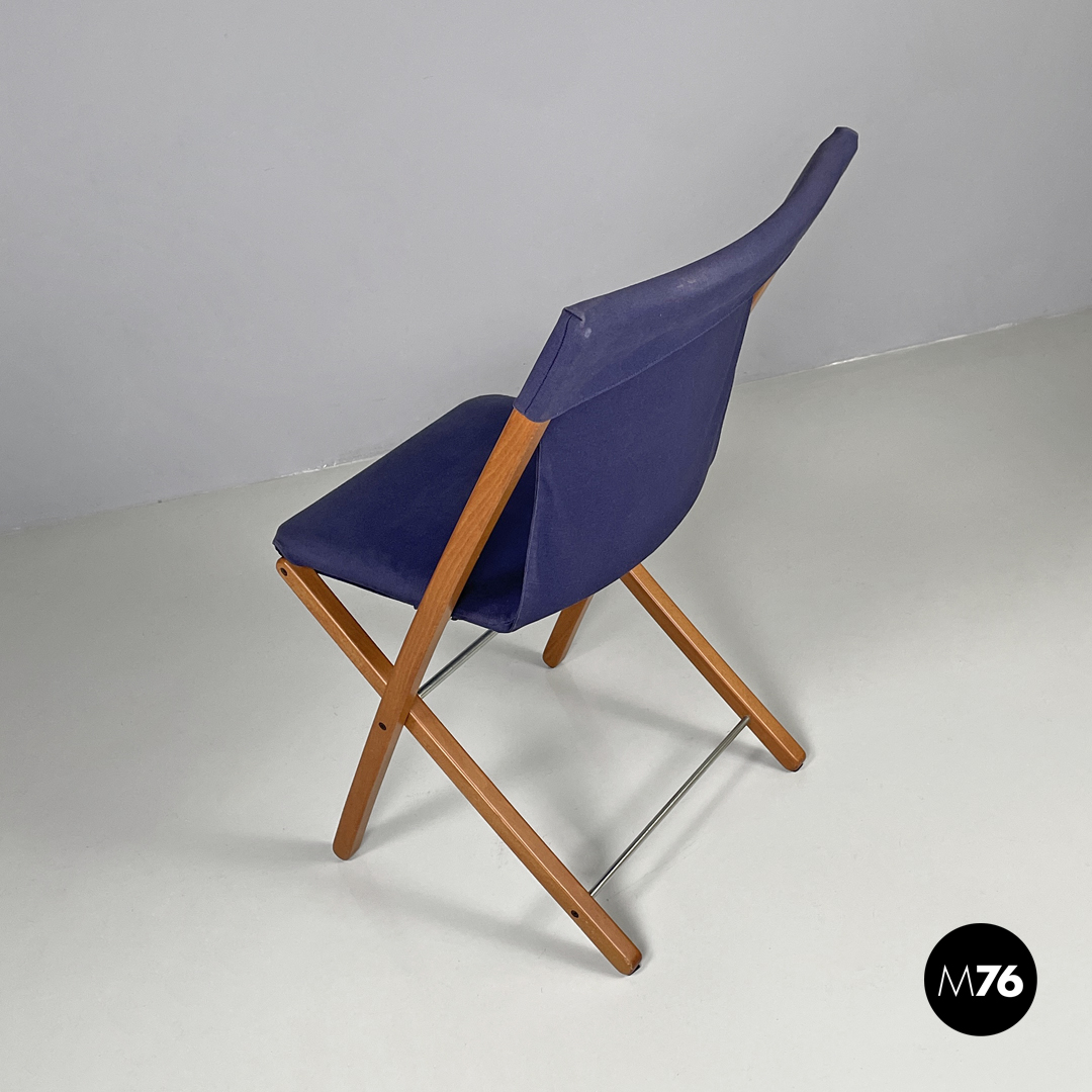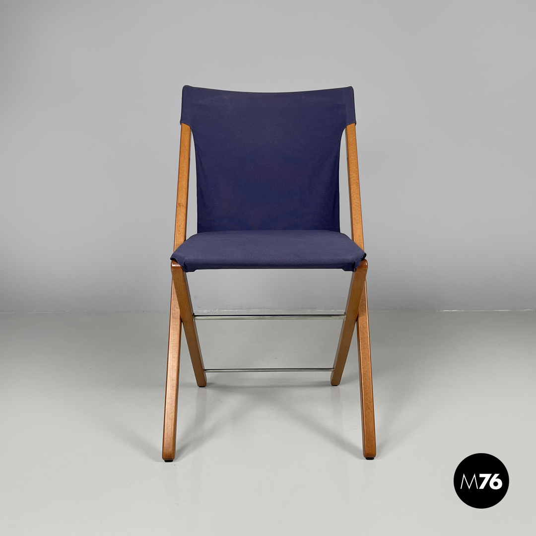 Sedia pieghevole in tessuto blu e legno, 1990 ca.
