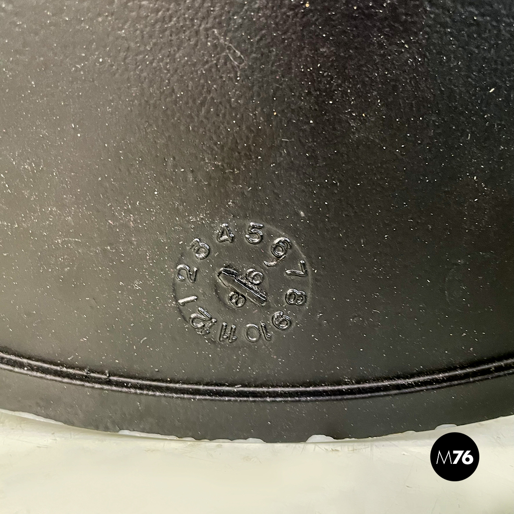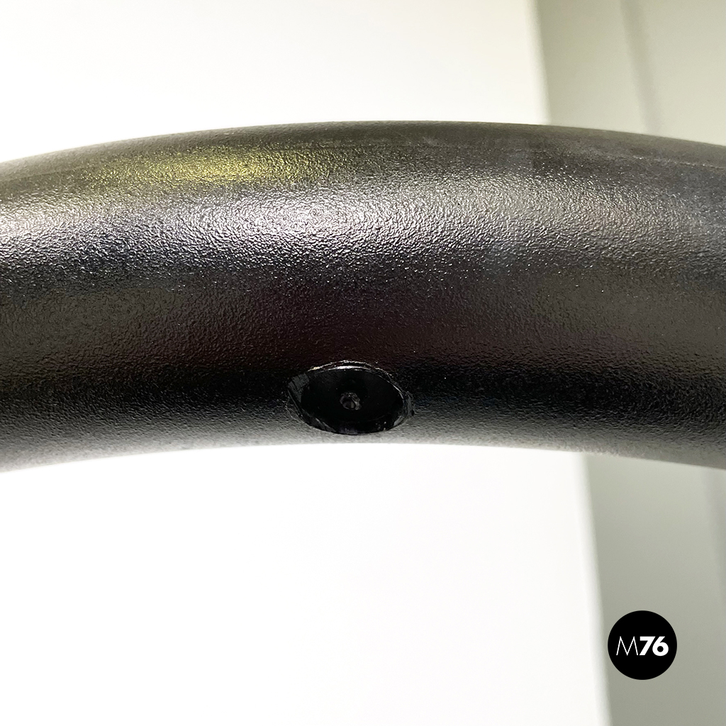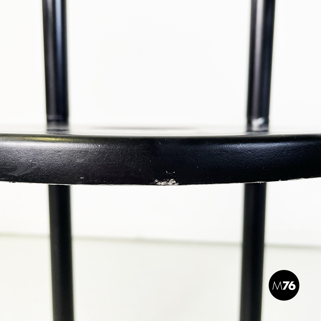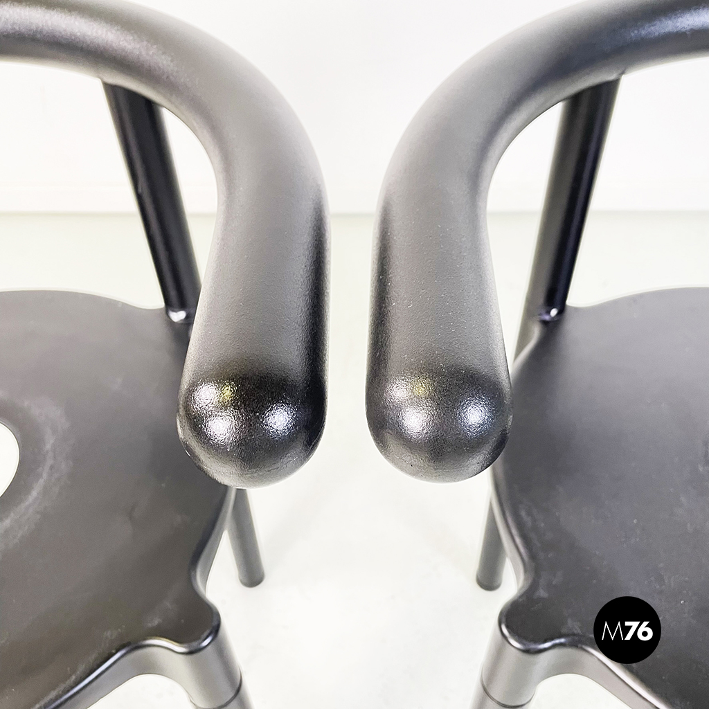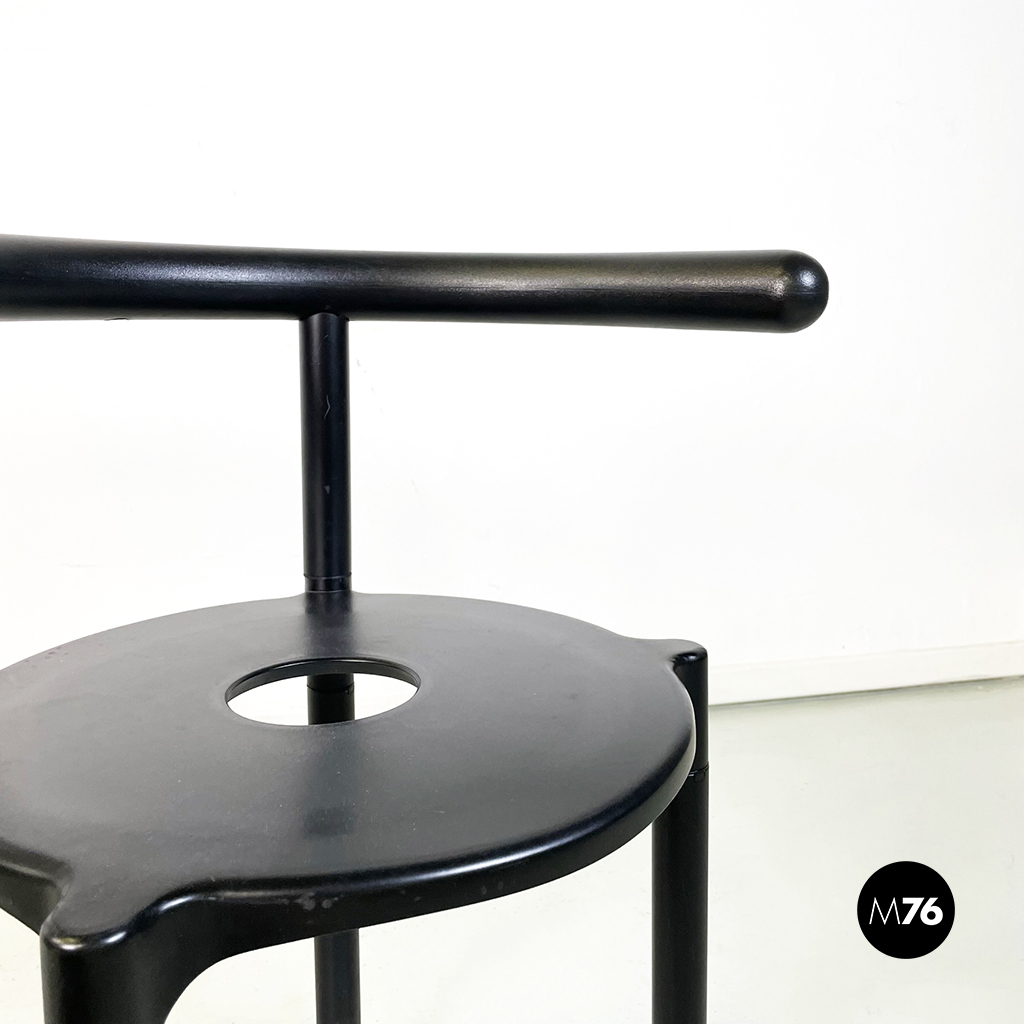 Coppia sedie modello 4855 con seduta tonda forata al centro in plastica e metallo nero. La struttura a forma di pozzetto presenta dei braccioli curvati a sezione tonda. I braccioli e lo schienale presentano una texture ruvida. Zampe a sezione tonda smontabili con piedini in gomma nera.