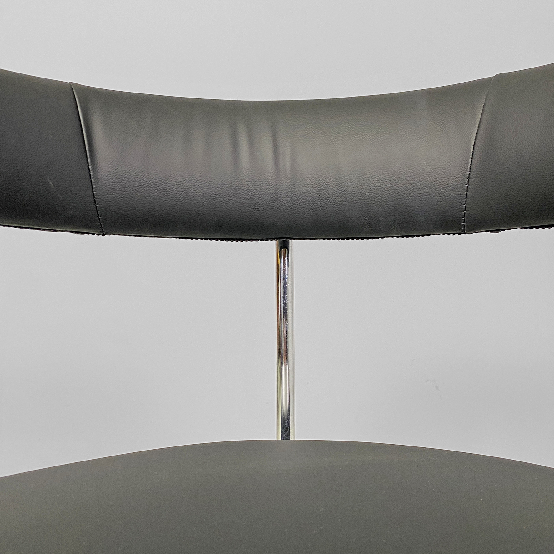 Sedie a pozzetto in acciaio e pelle nera, 1970 ca.