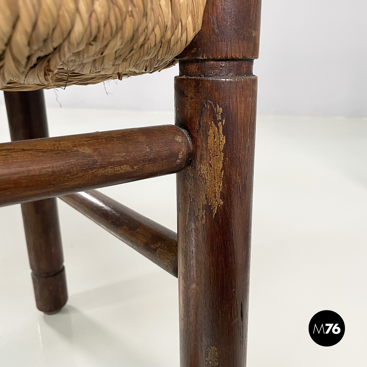 Sedie a pozzetto in legno e paglia, 1970 ca.