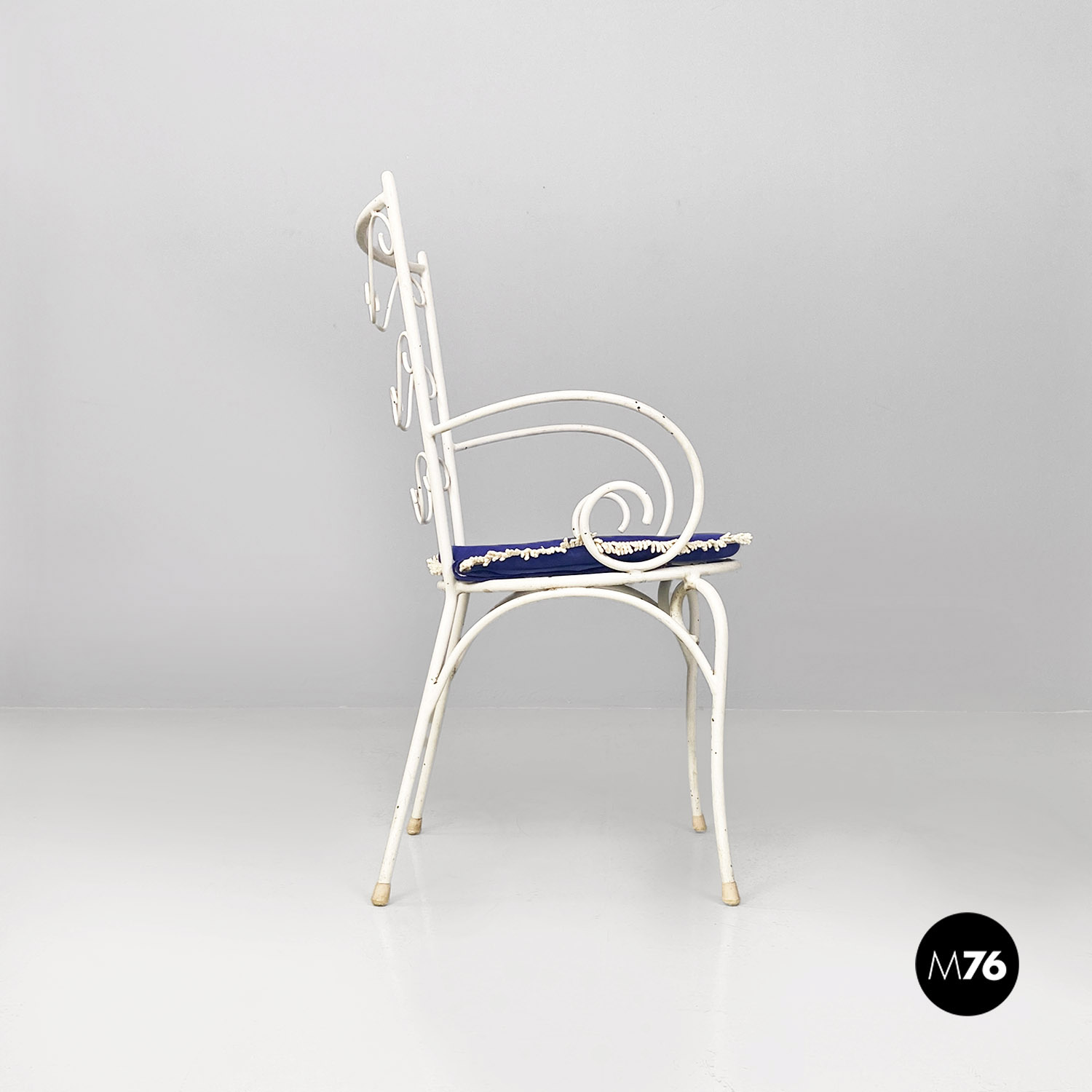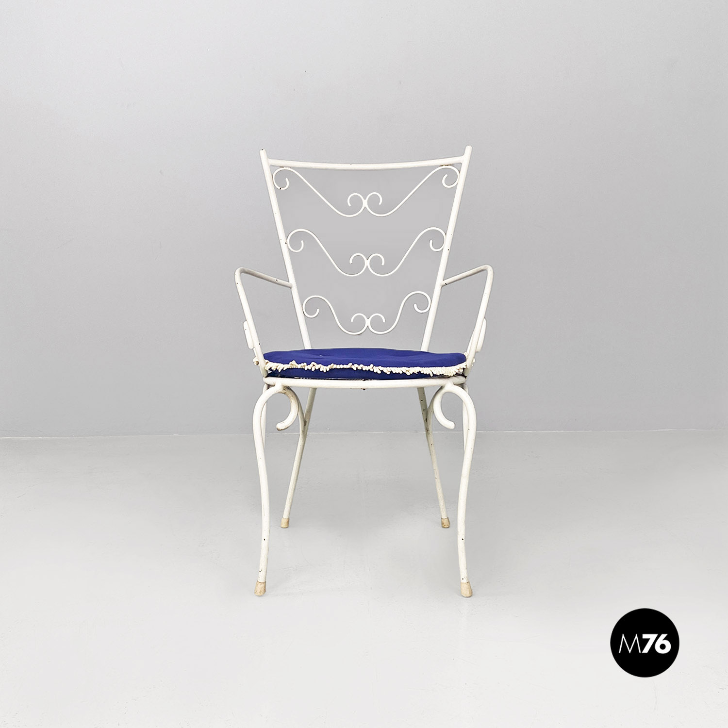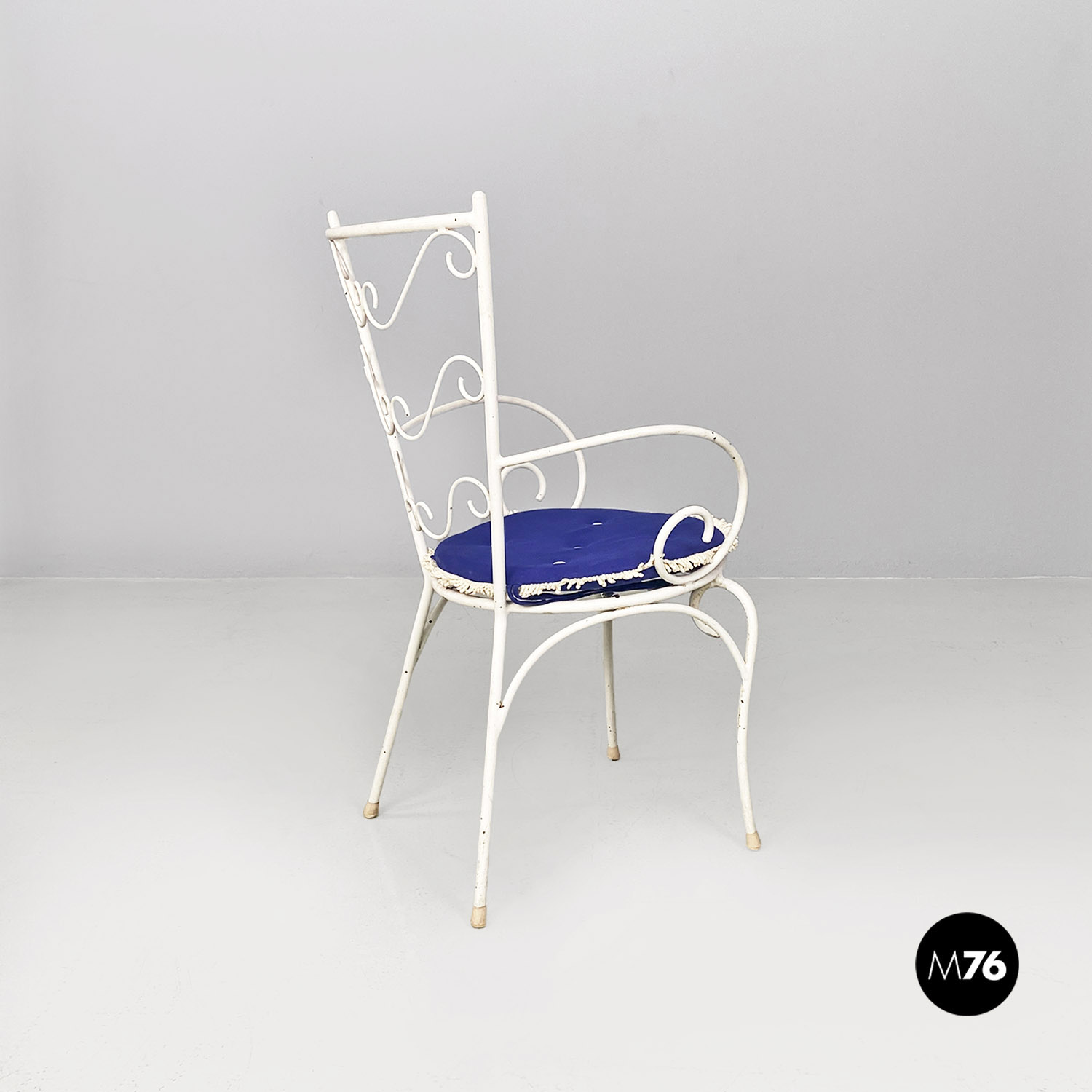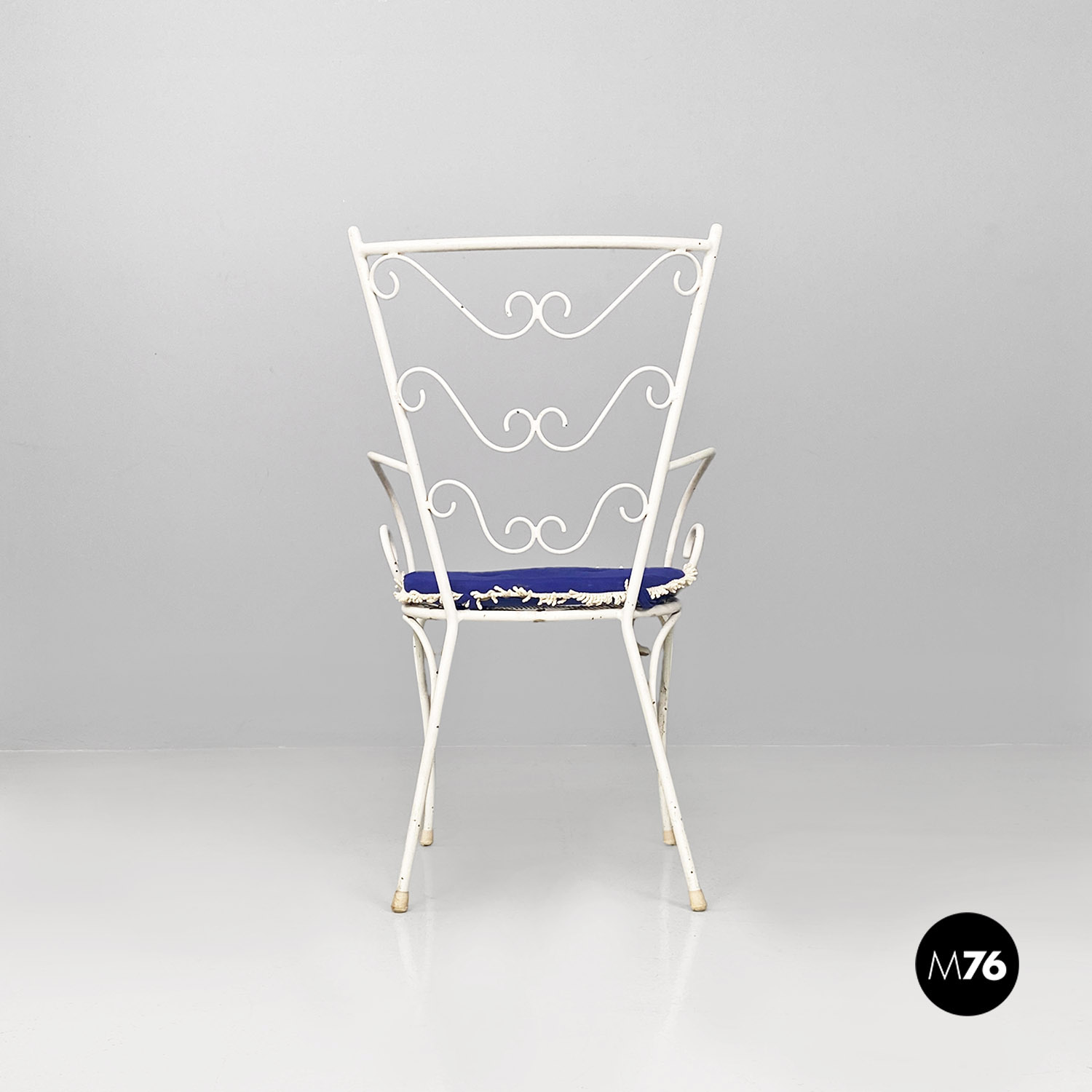 Sedie da giardino in ferro bianco e tessuto blu, 1960 ca.