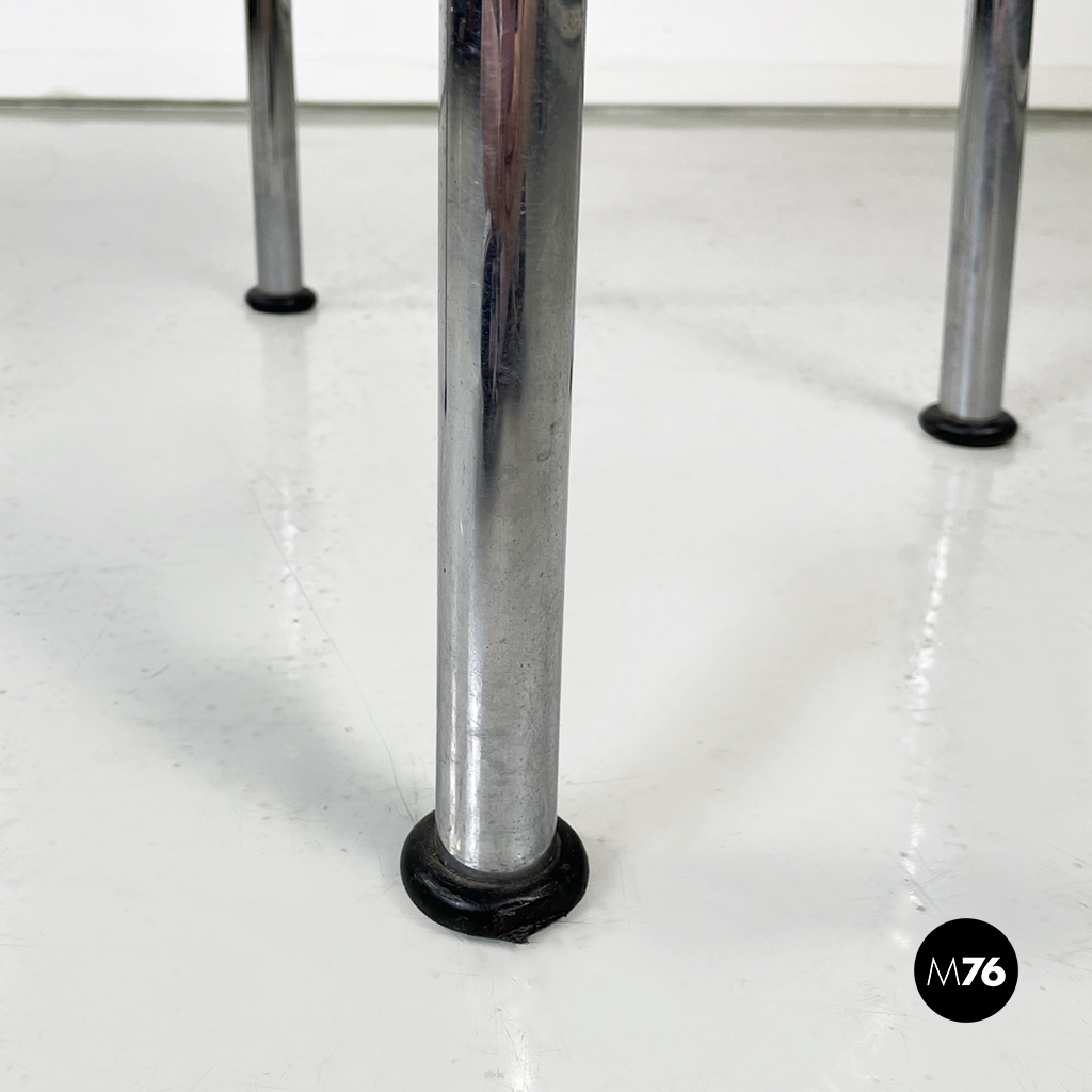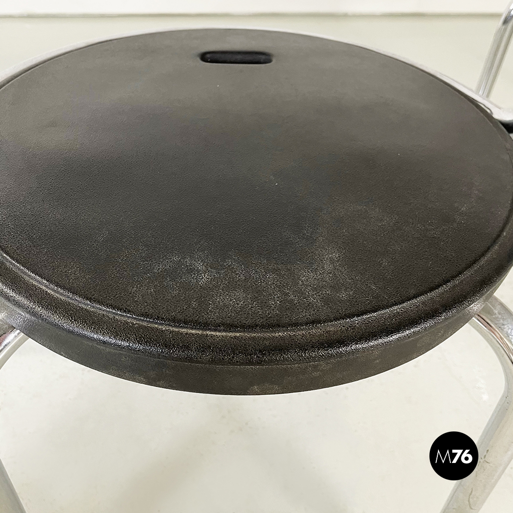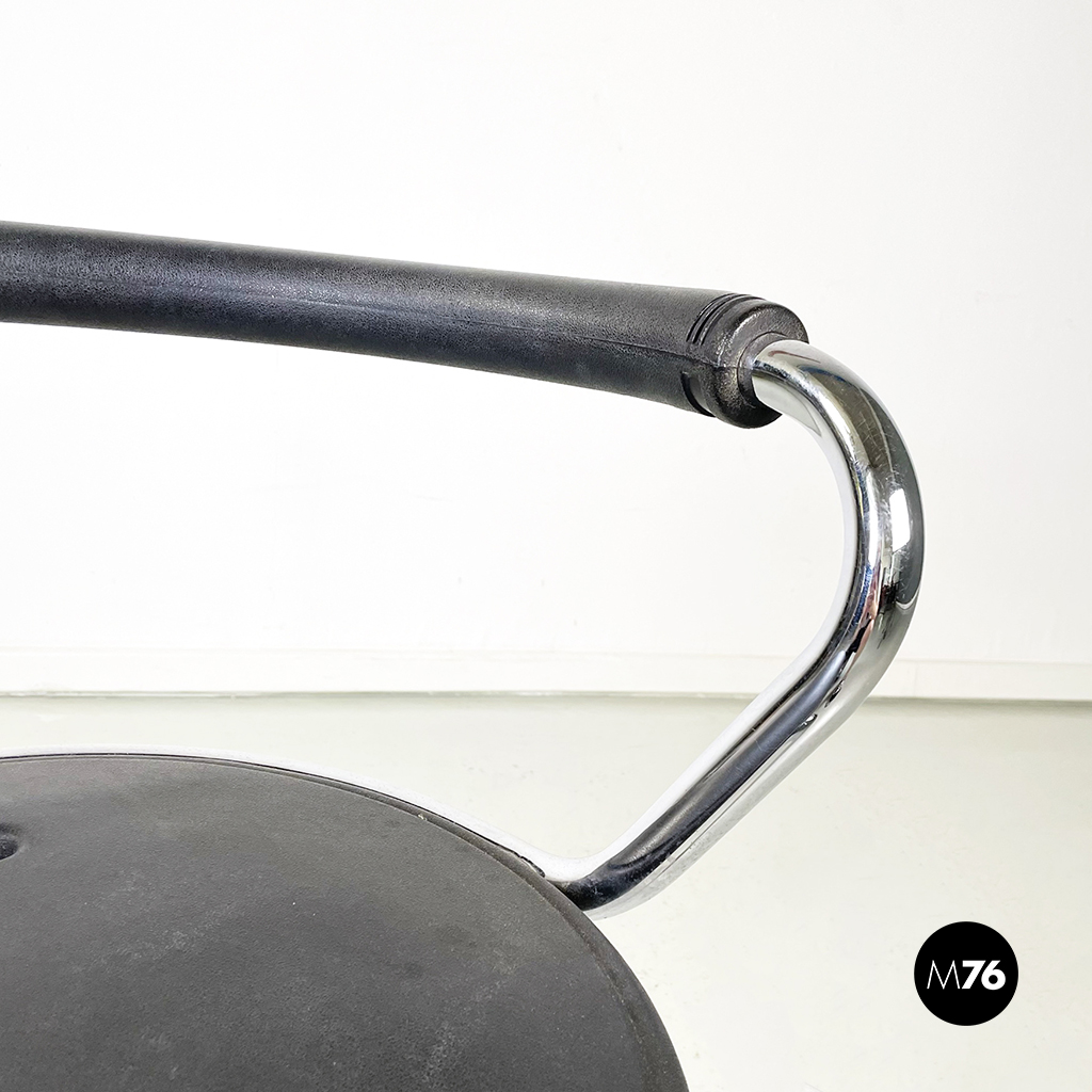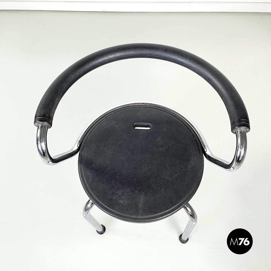 Set di quattro sedie con la seduta tonda in gomma nera. Lo schienale è in tubolare di metallo rivestito in gomma nera. Alla base della sedia presenta le zampe in tubolare di metallo con piedini tondi in gomma nera.