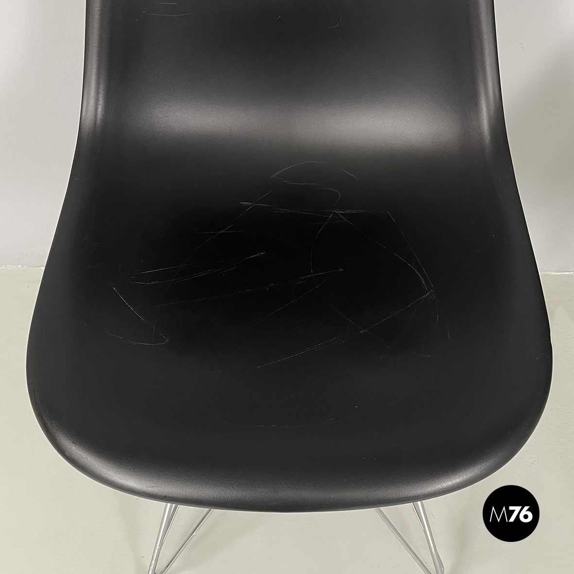 Buone condizioni. Le sedie presentano graffi sparsi sula plastica nera.