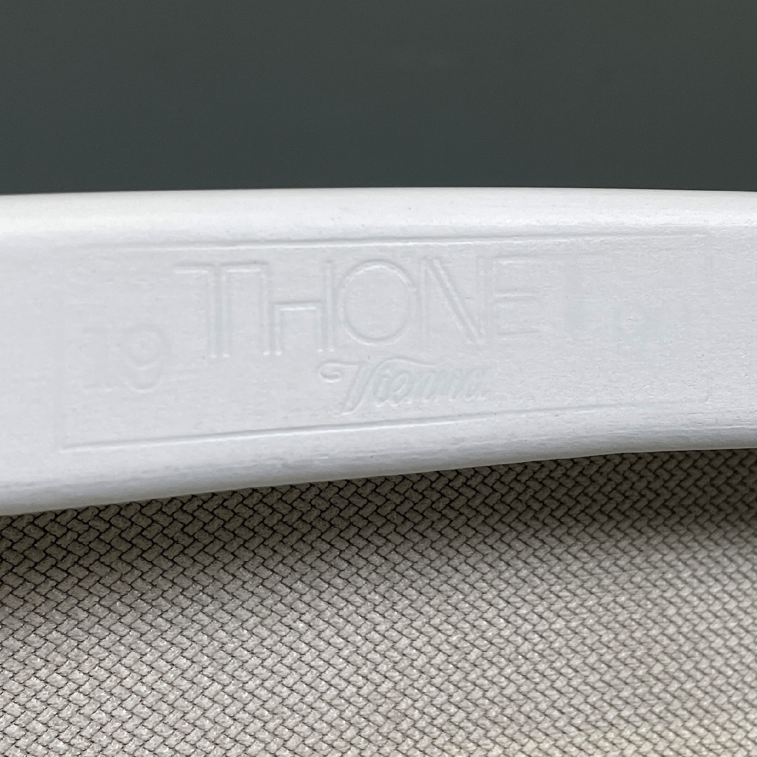Produced by Thonet in 1990s and designed by Josef Hoffmann in 1920s. Features logo plaque and branding.