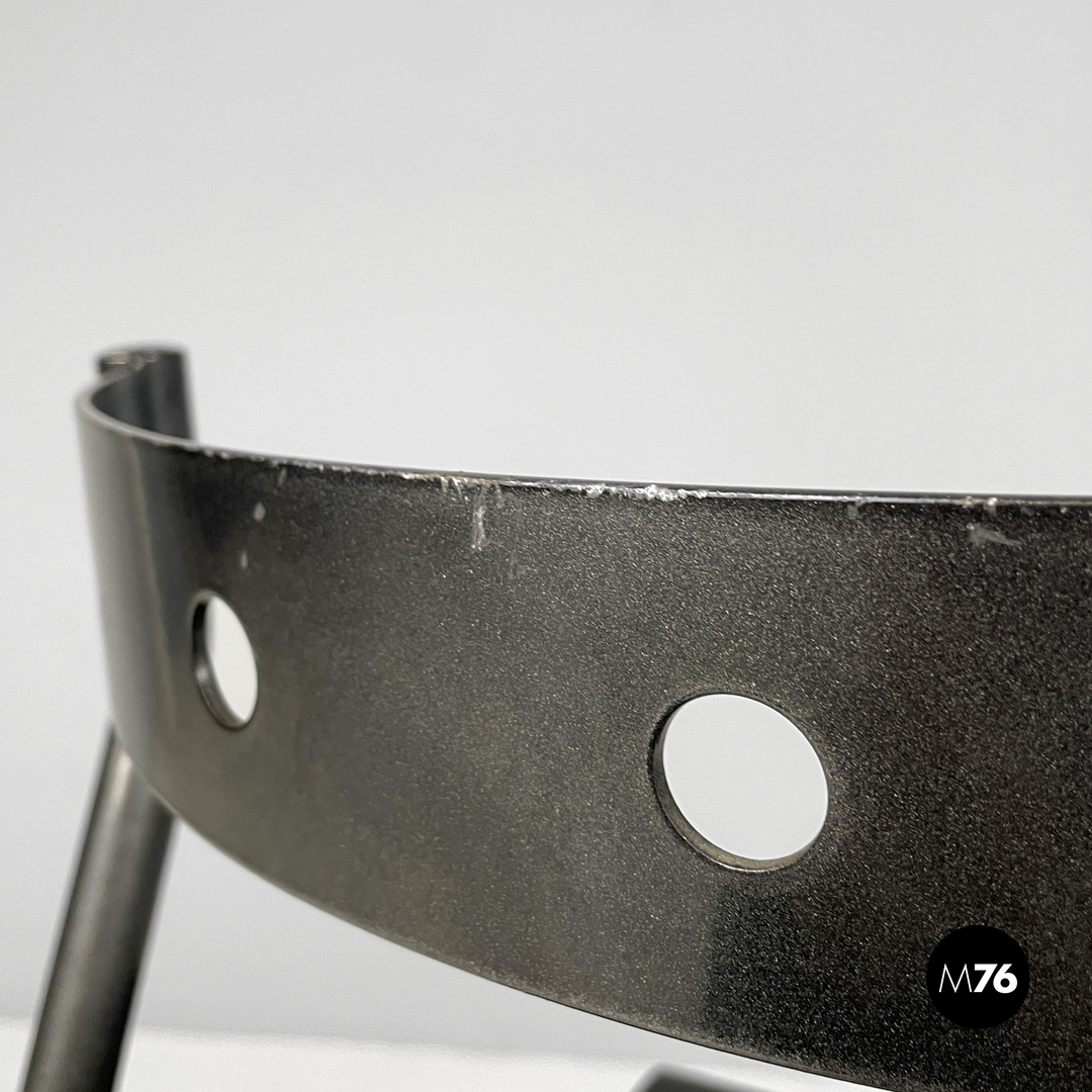 la struttura è in metallo verniciato nero con finitura lucida e glitterata con lo schienale tondo e avvolgente con cinque fori decorativi. Le gambe sono a sezione tonda e terminano con un piedino tondo in plastica nera.