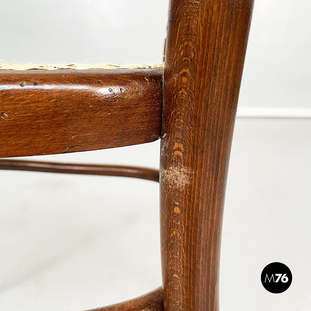 Buone condizioni. Il legno è in condizioni originali presenta piccoli segni sulle gambe e alcuni segni sul retro dello schienale. La paglia della seduta e dello schienale è stata rifatta a mano.