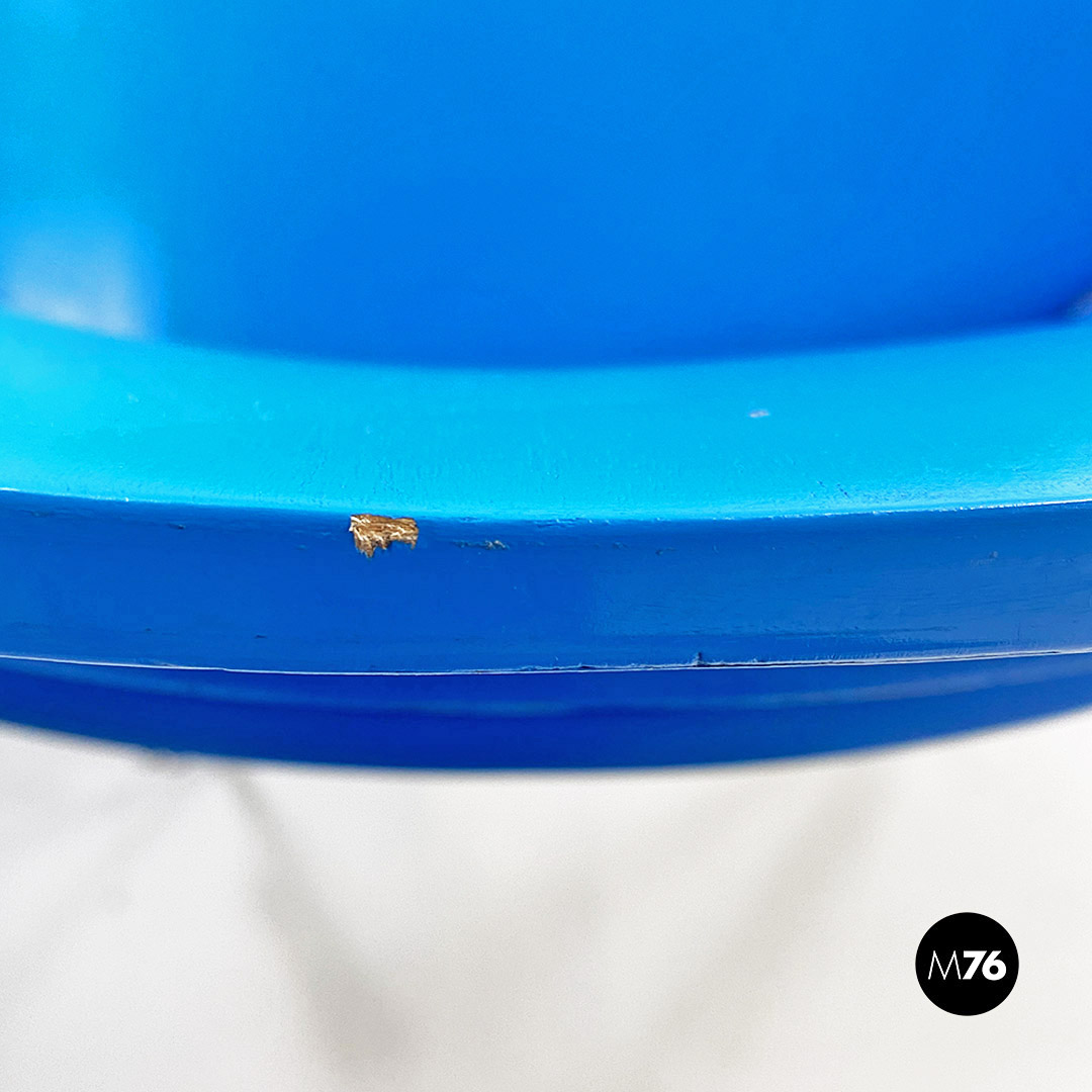 Set di quattro sedie impilabili modello DSC con seduta e schienale in legno massello di faggio verniciato in colore azzurro con zampe in alluminio a sezione tonda.