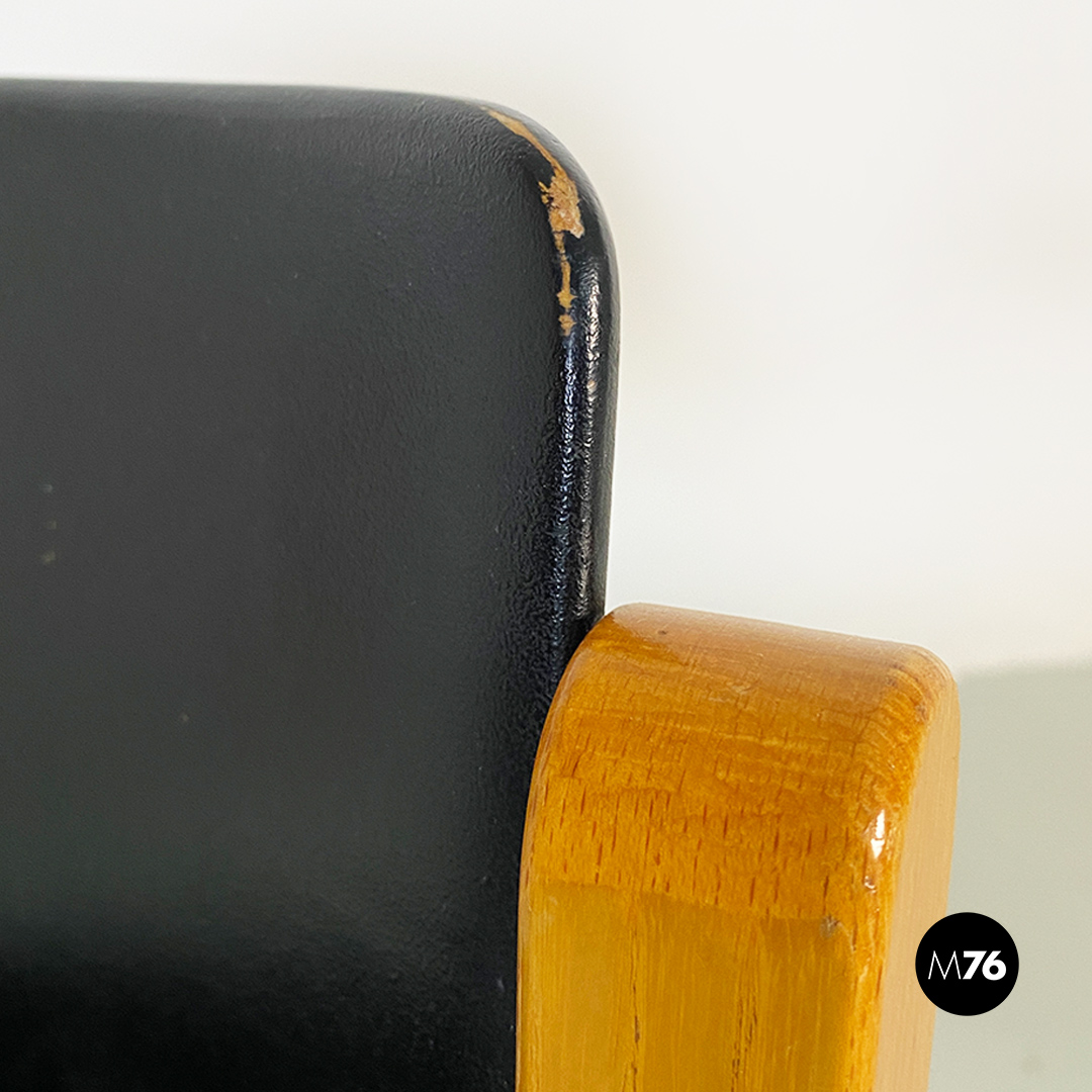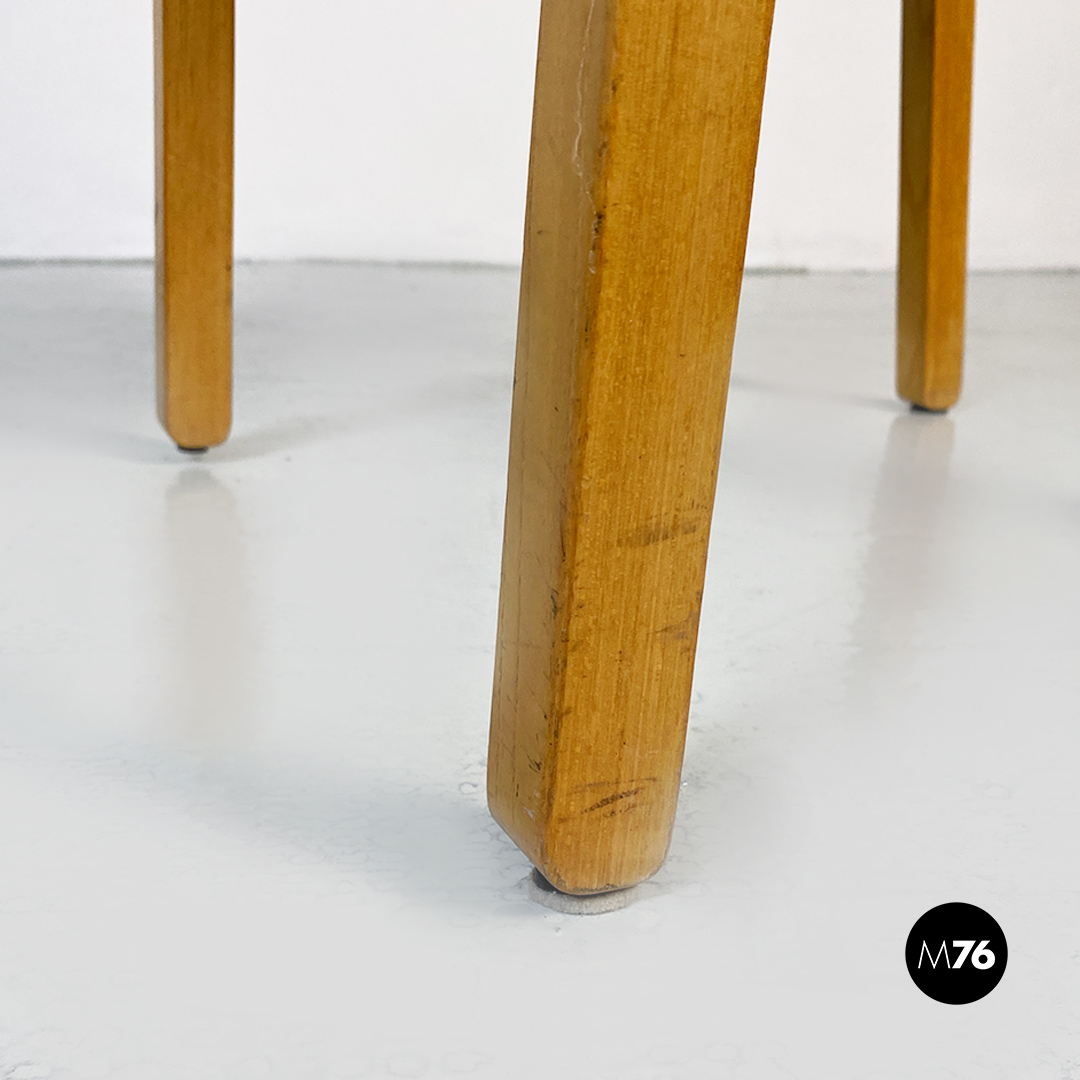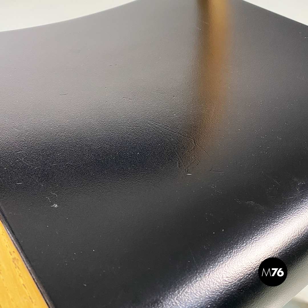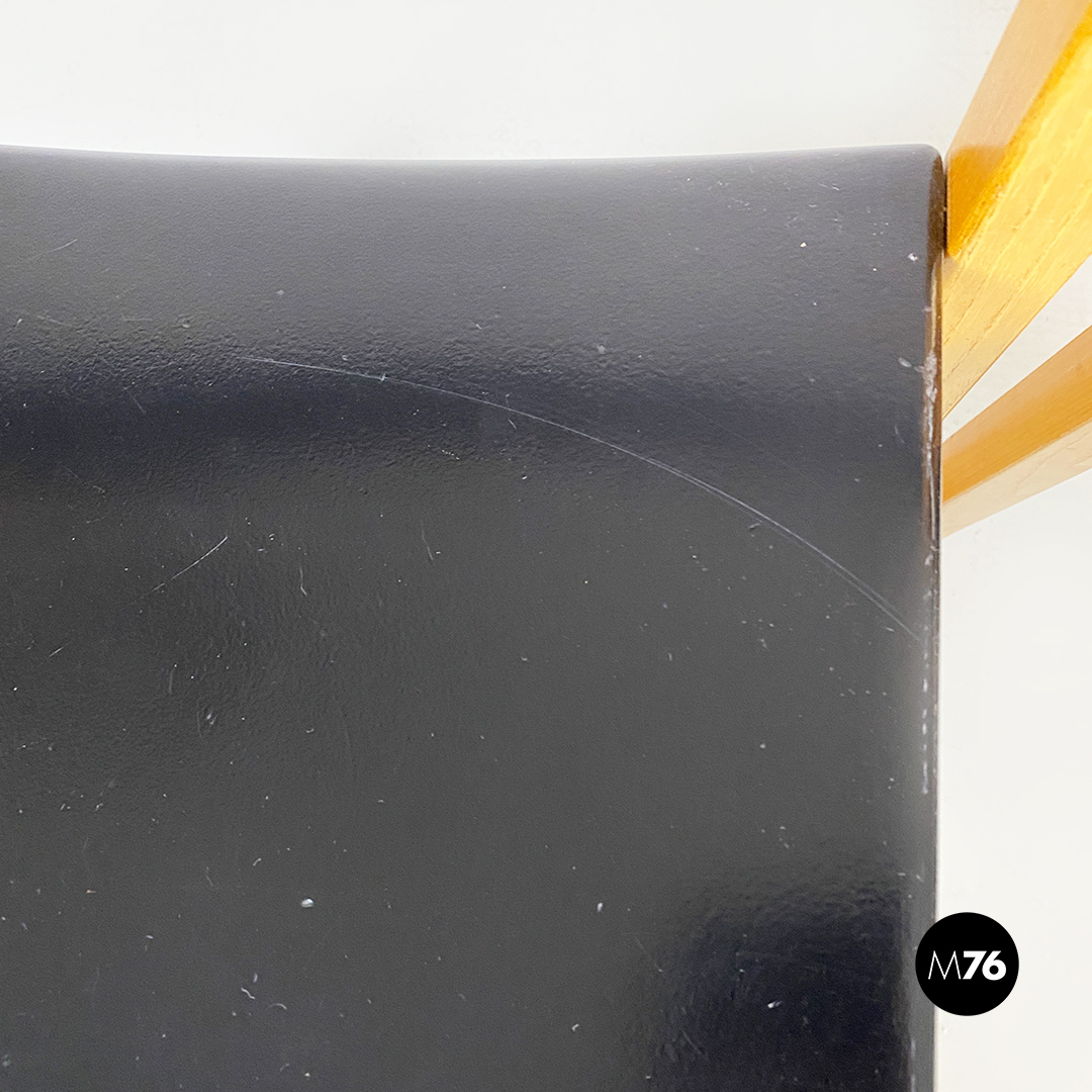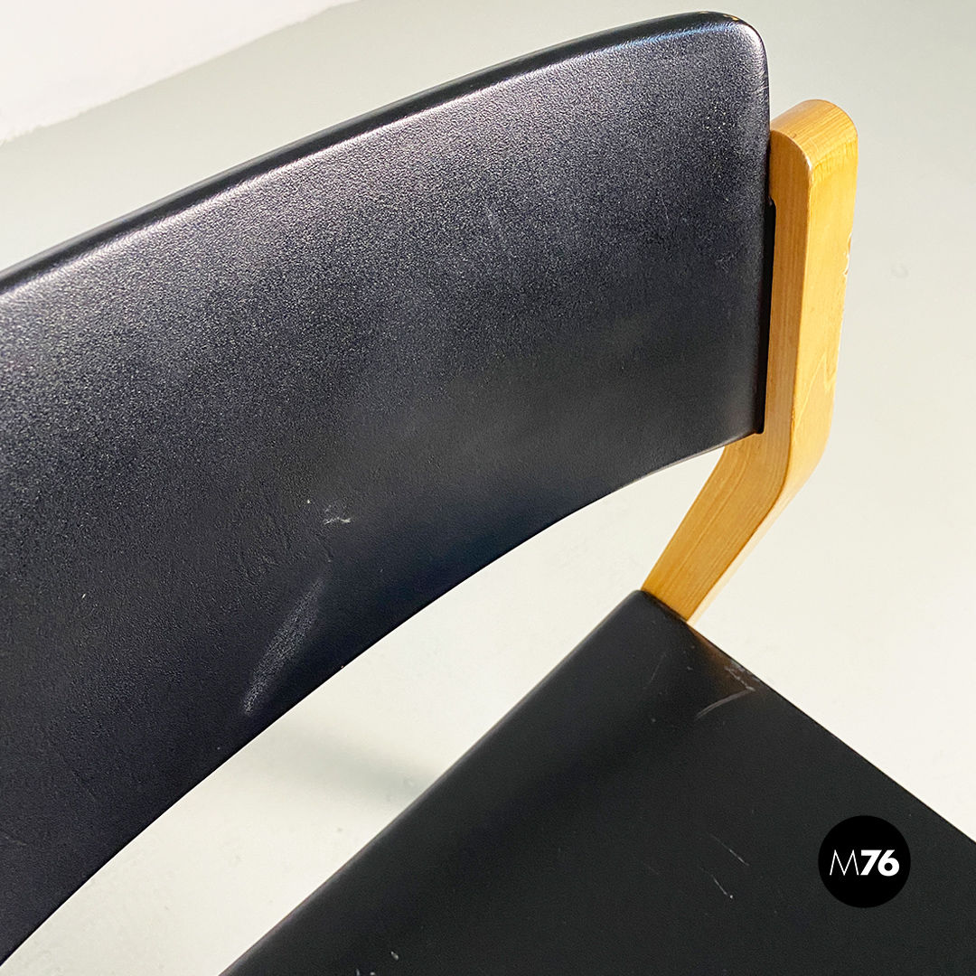 Sedie modello Gruppo con struttura in legno chiaro con zampe a sezione quadrata e seduta e schienale curvati in legno nero.