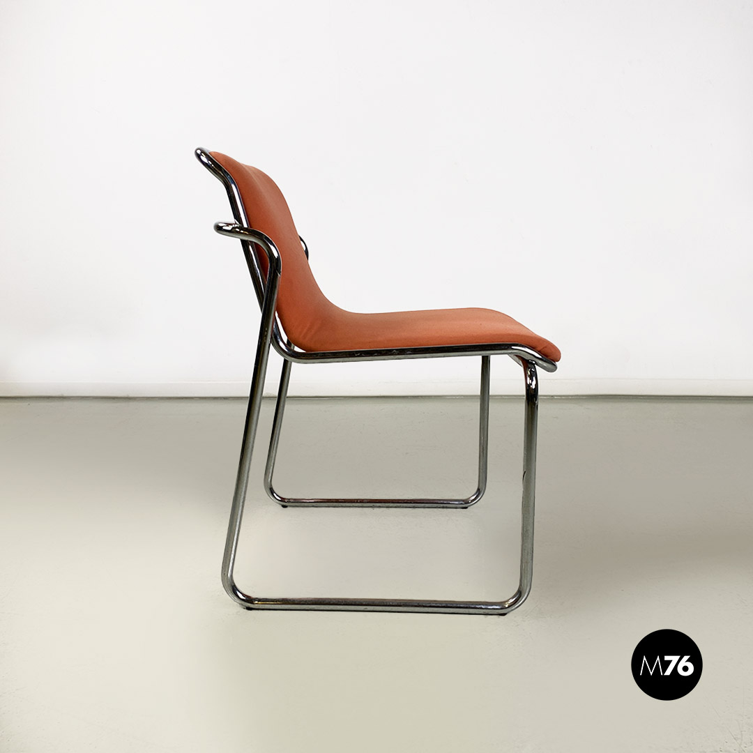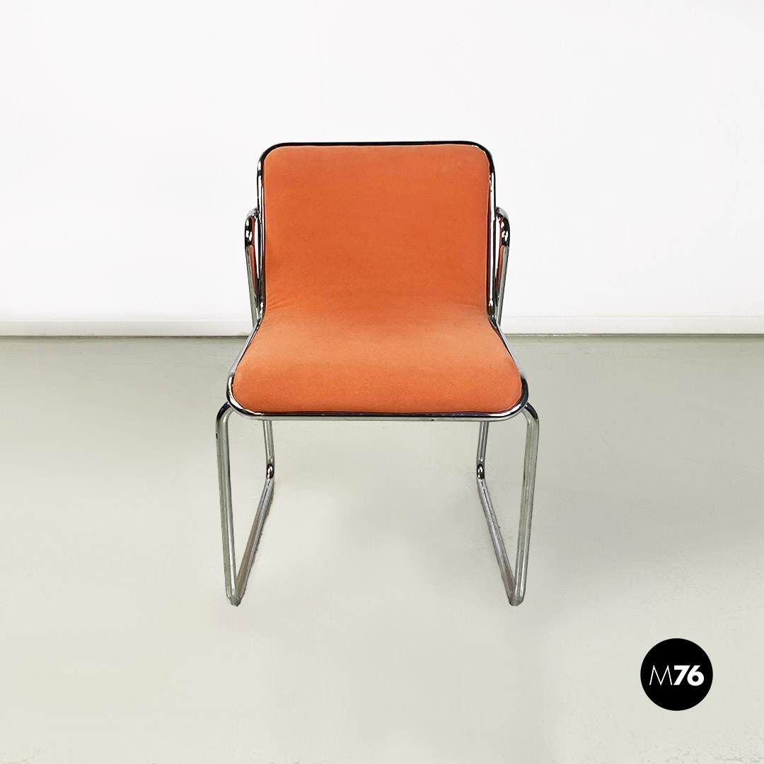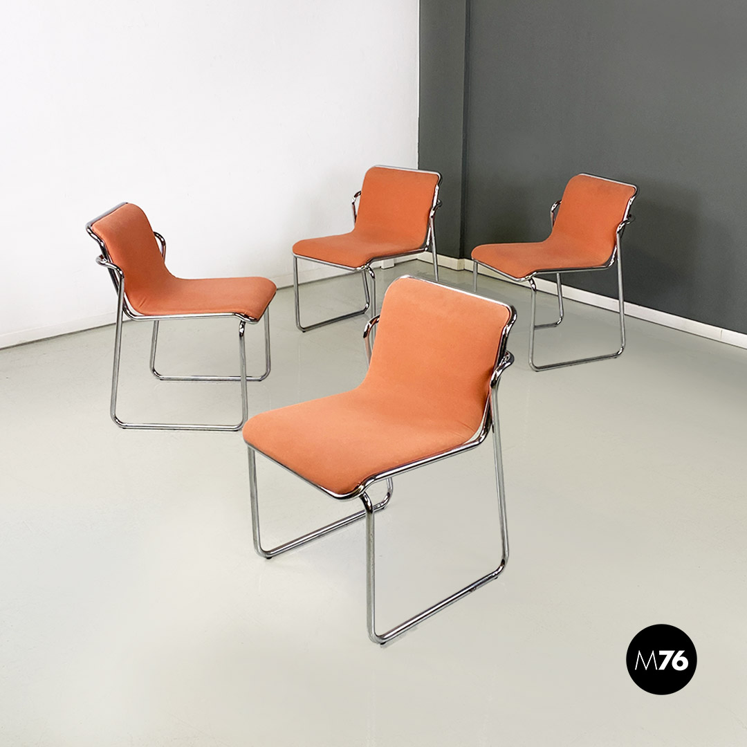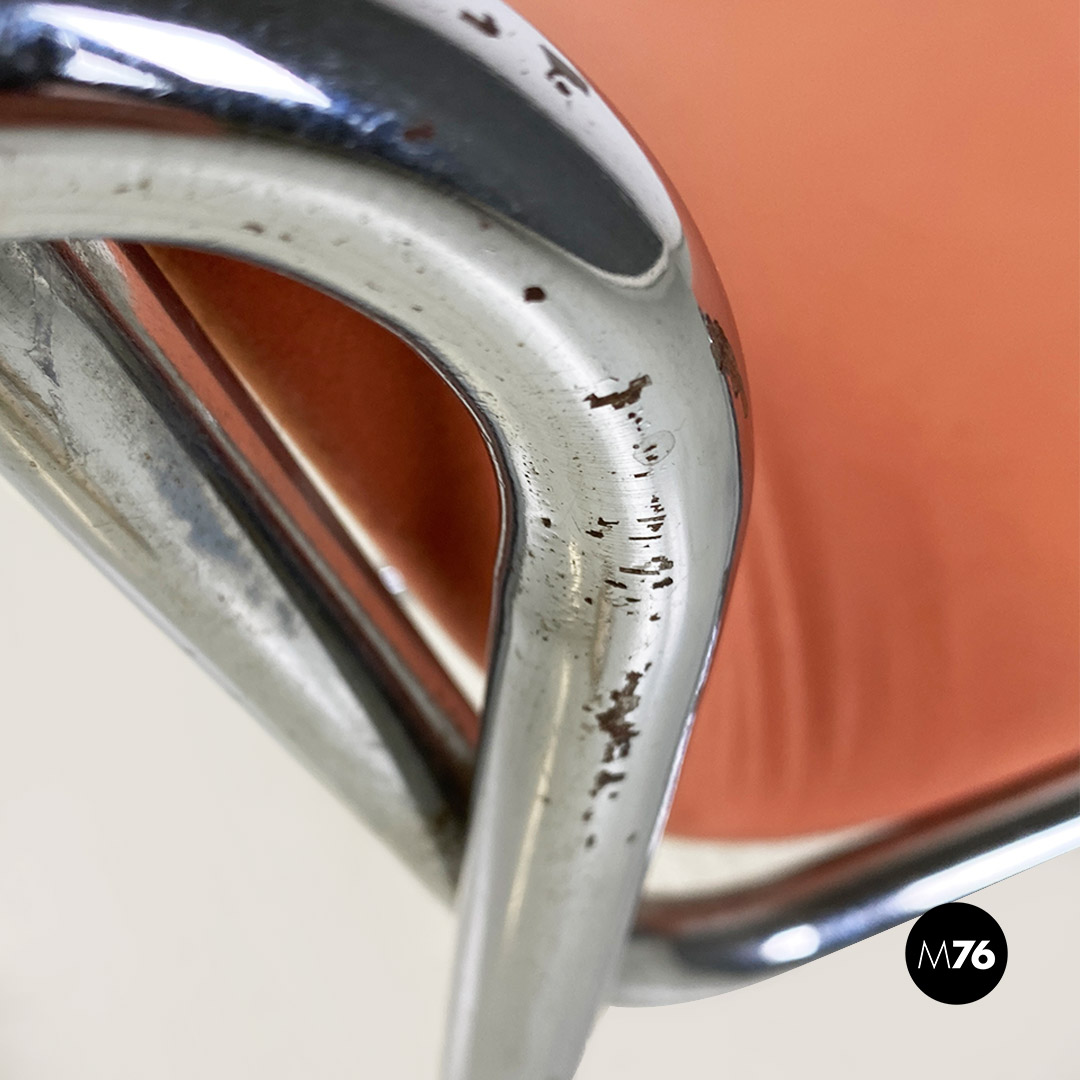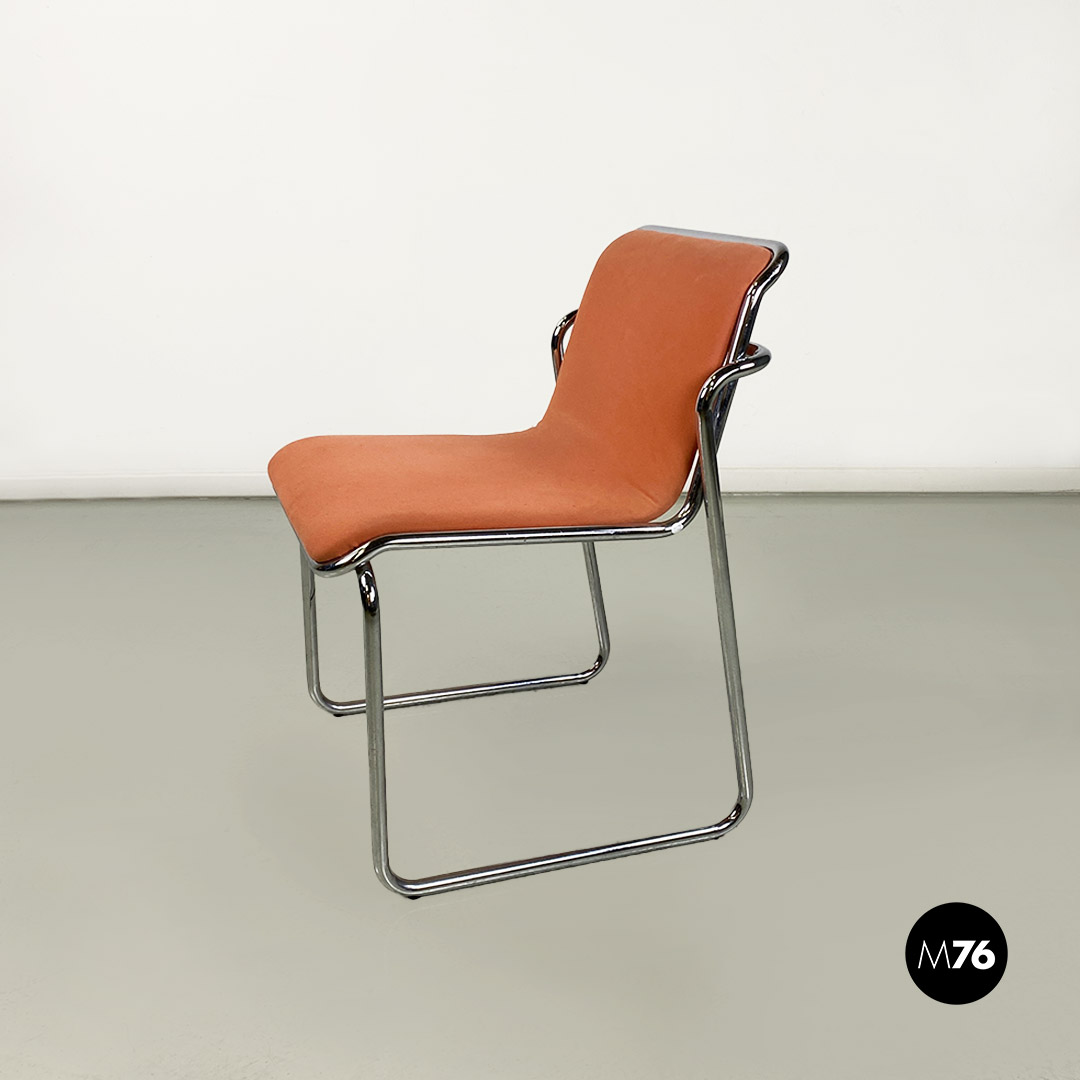 Sedie in acciaio cromato e tessuto rosa, 1970 ca.