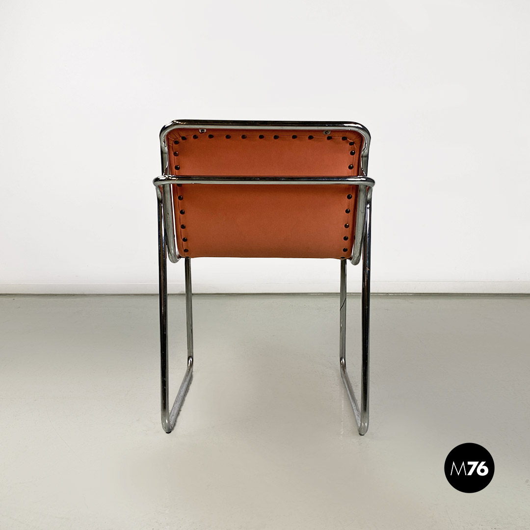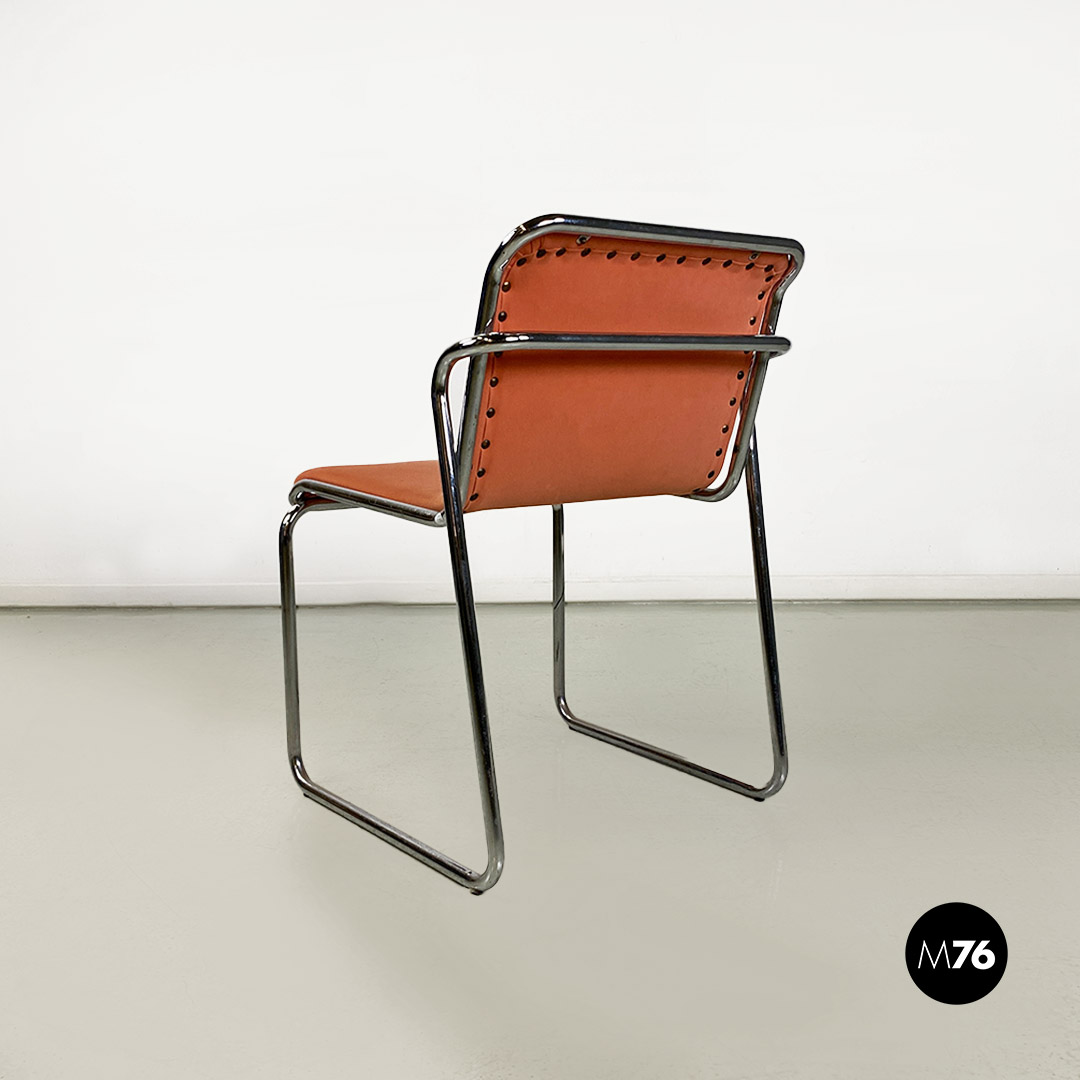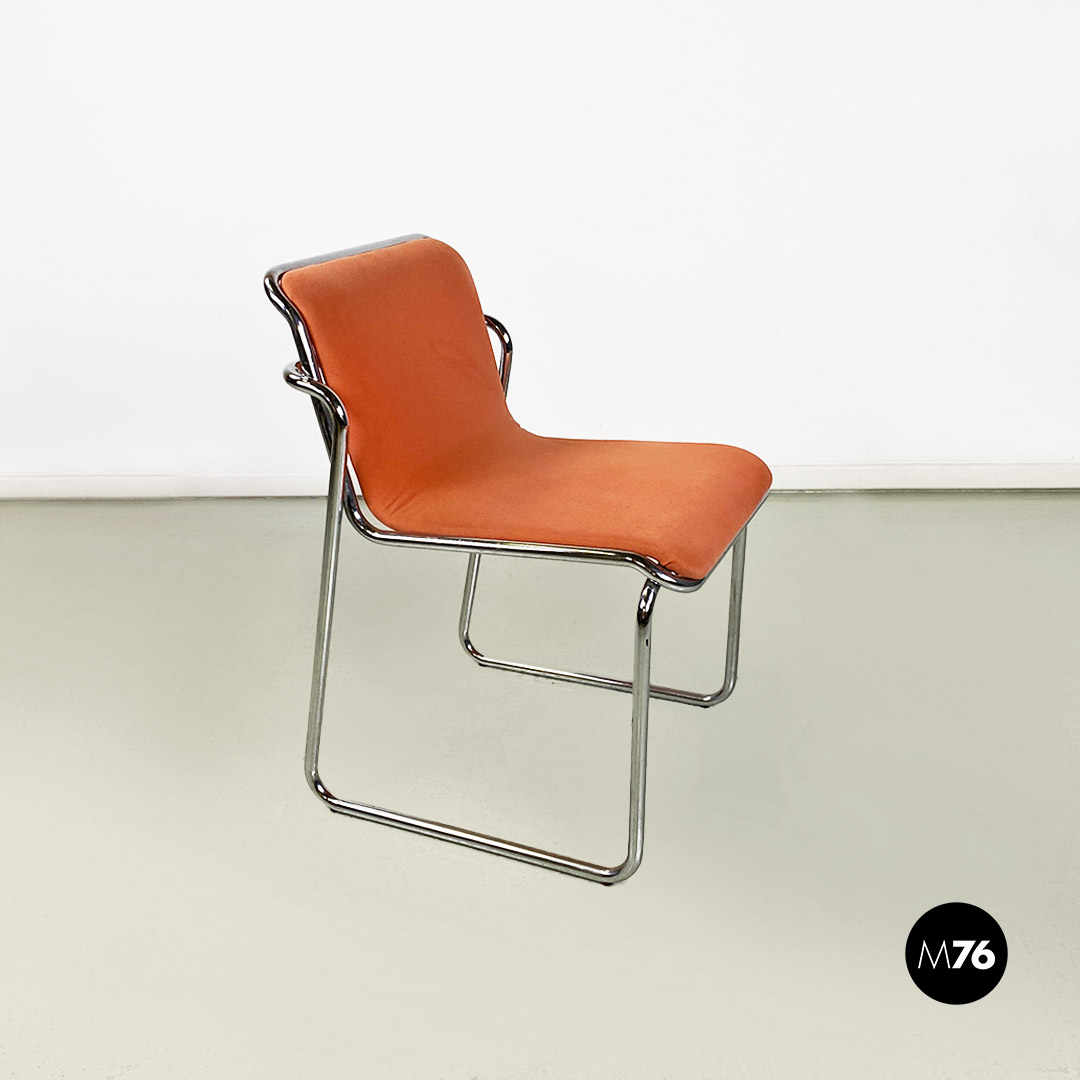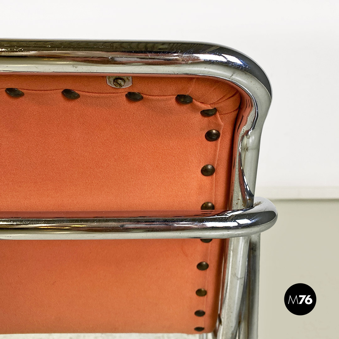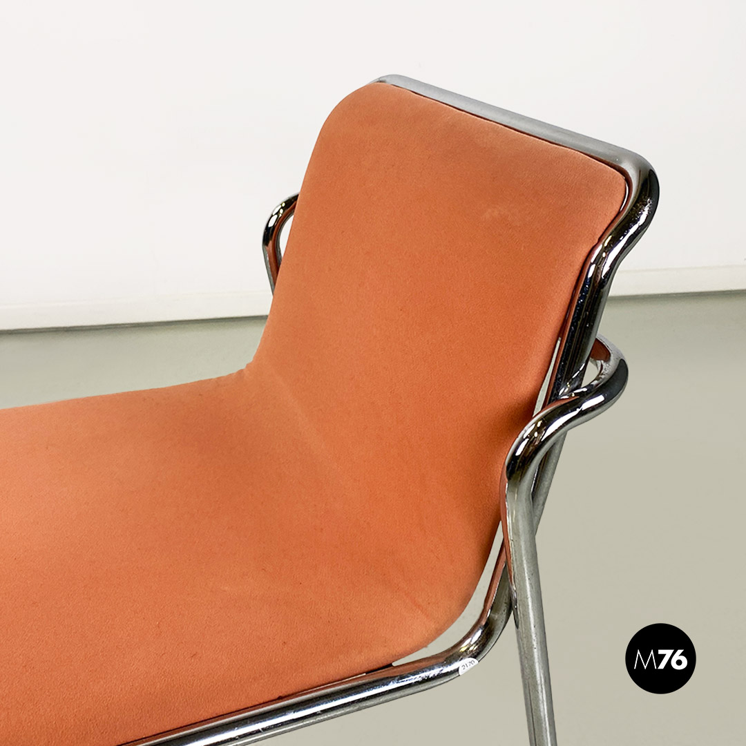 Sedie in acciaio cromato e tessuto rosa, 1970 ca.