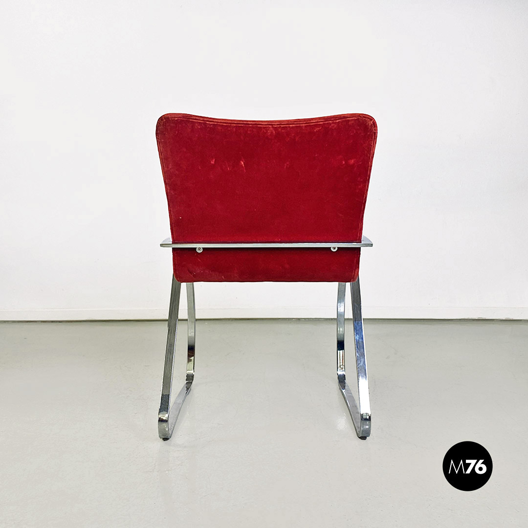 Sedie in acciaio cromato e velluto rosso, 1970 ca.