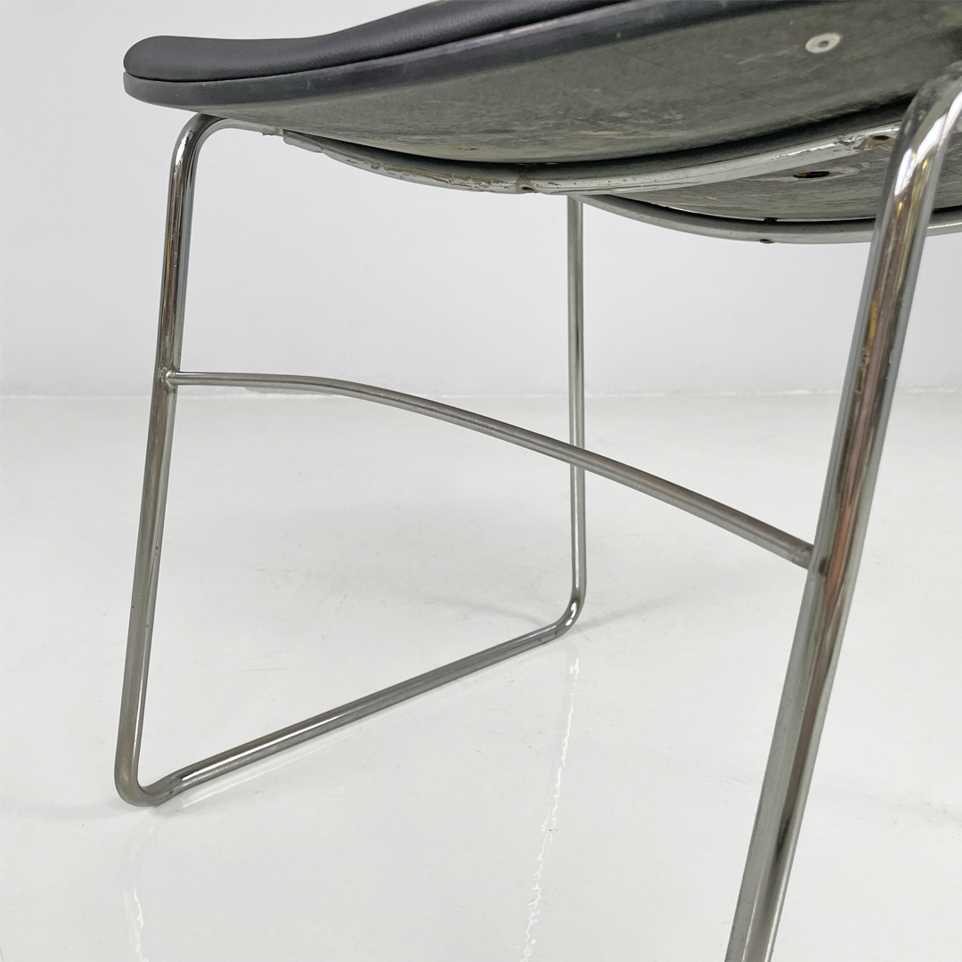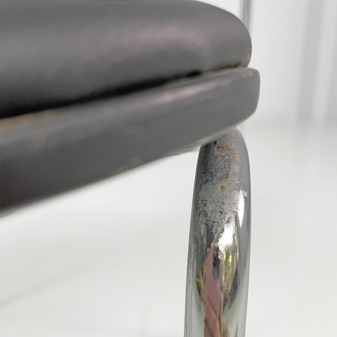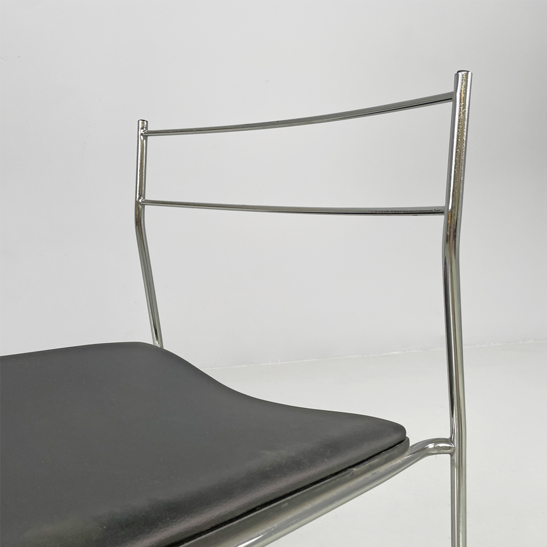 Sedie in acciaio e similpelle nera, 1970 ca.