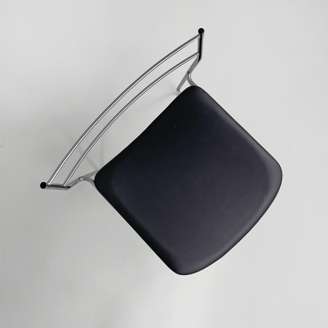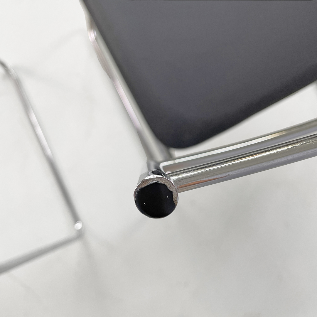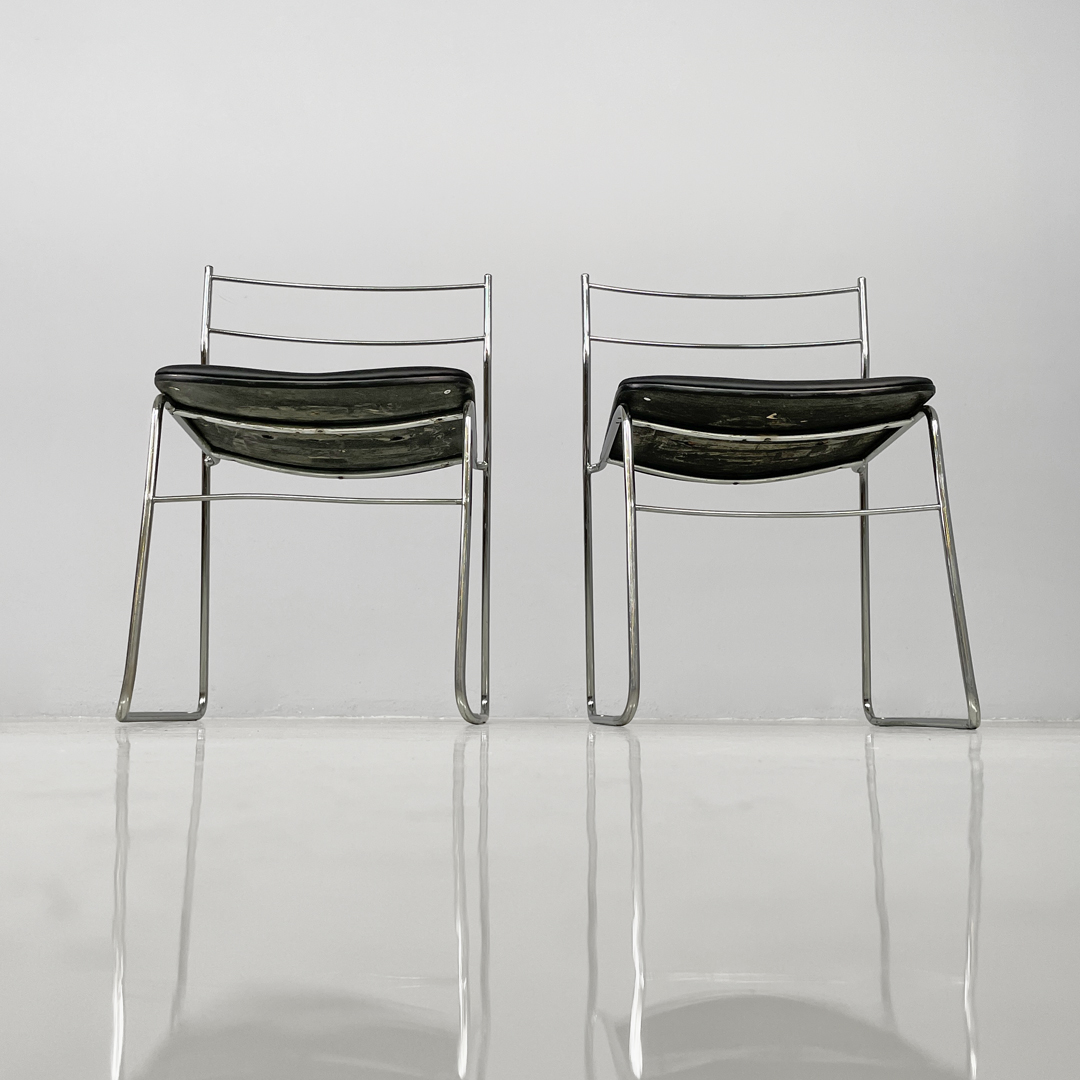 Sedie in acciaio e similpelle nera, 1970 ca.