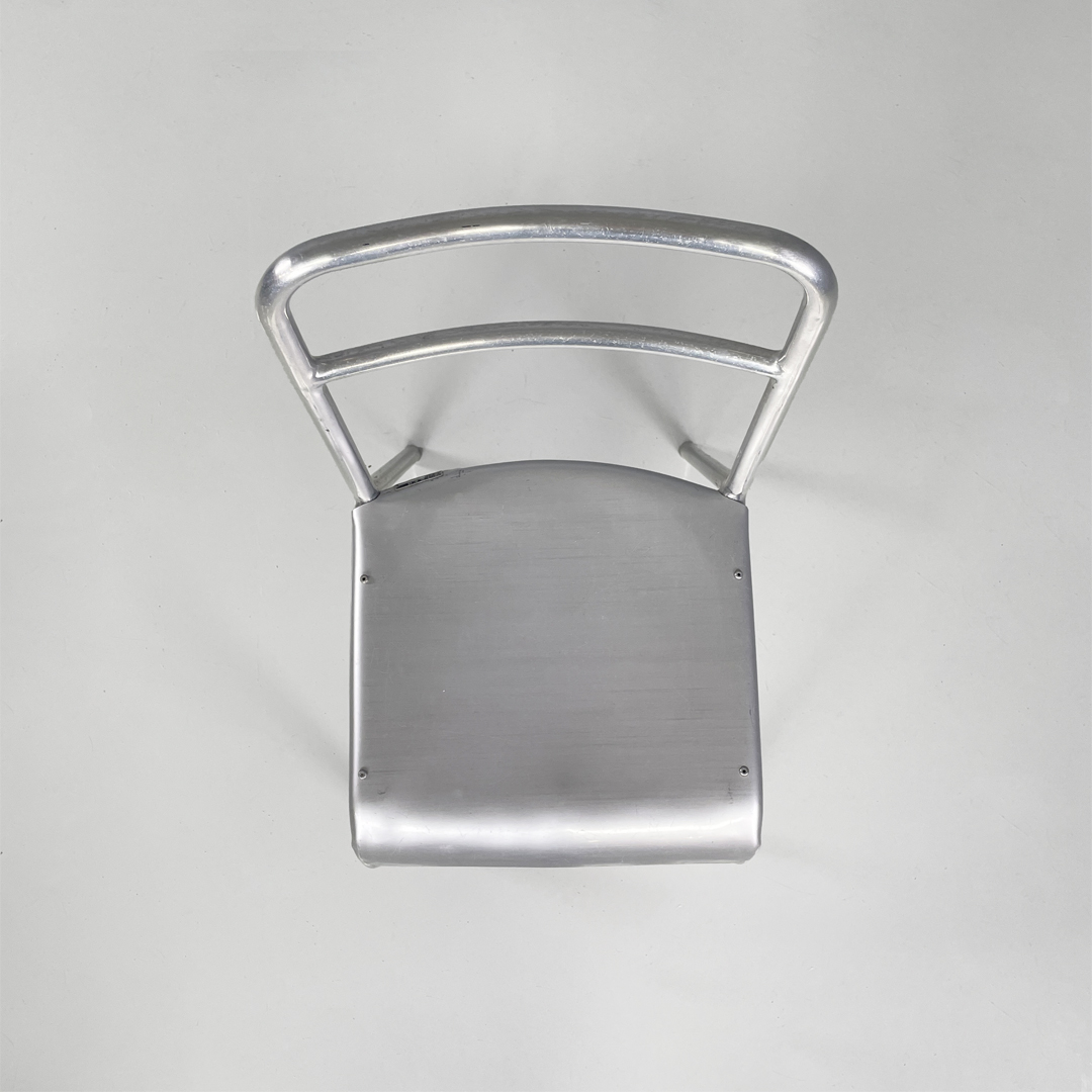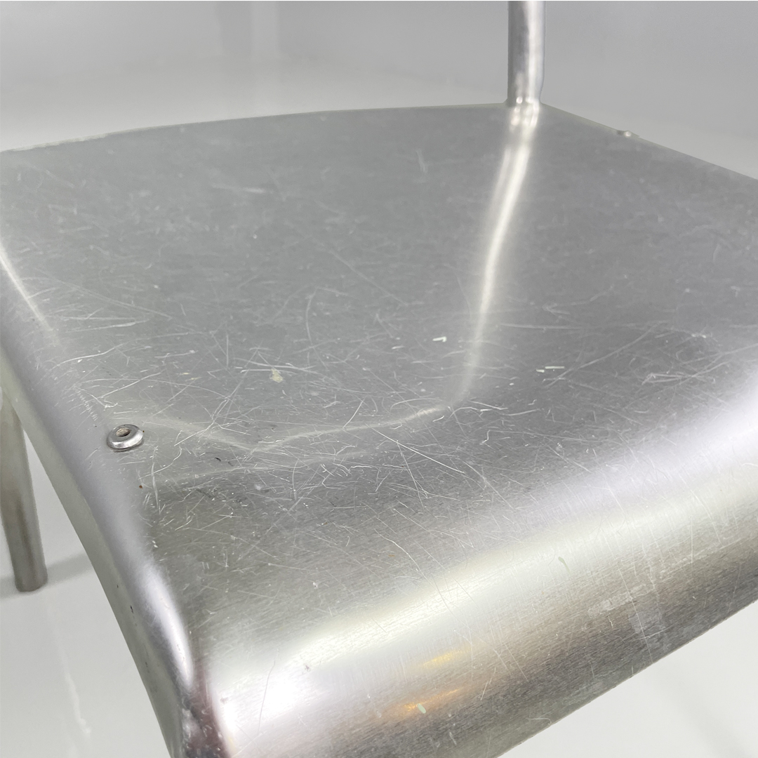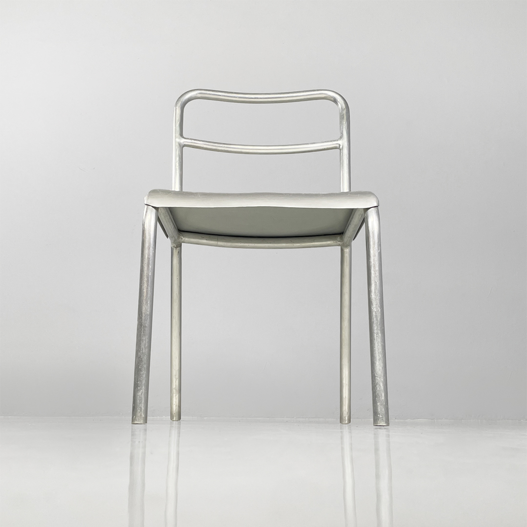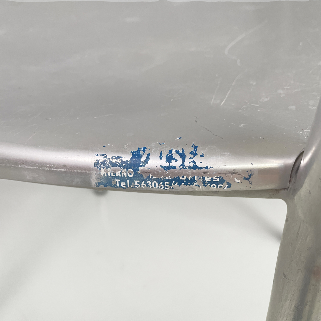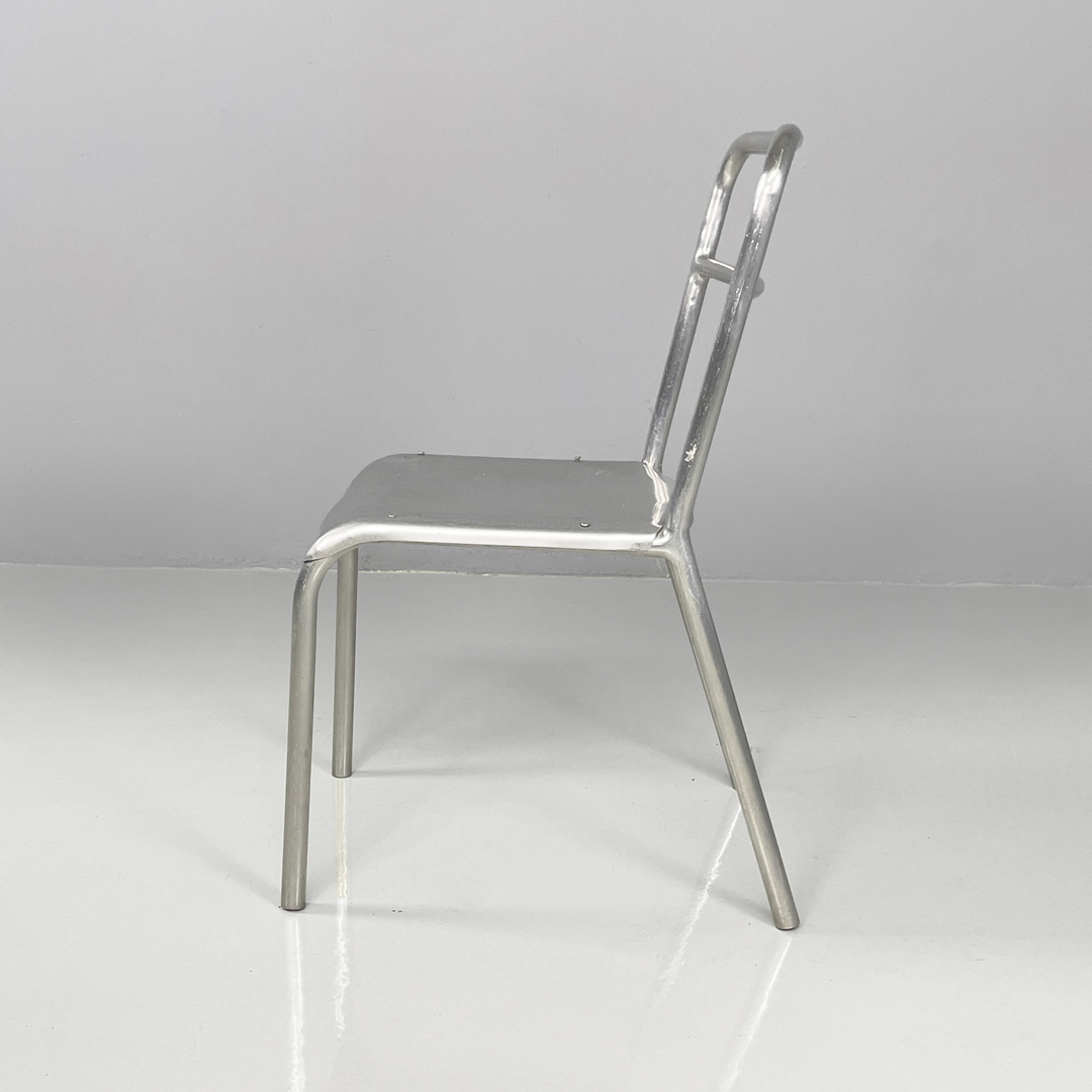 Set di 14 sedie in alluminio. Le zampe sono a sezione tonda con piedini neri in gomma.